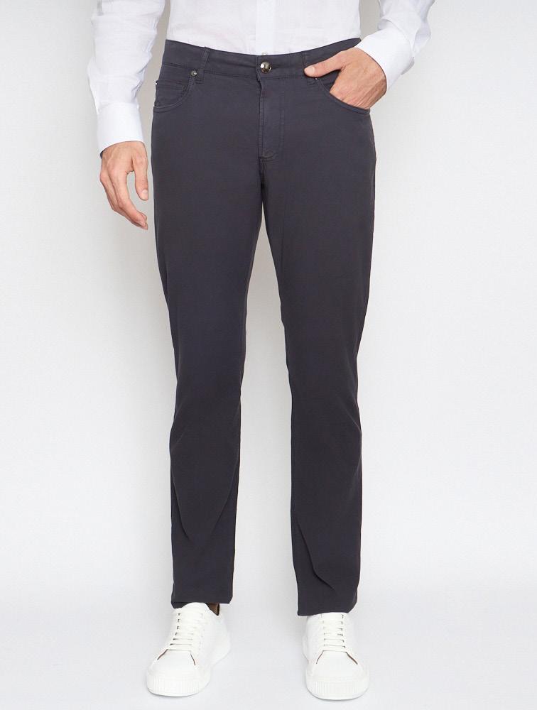 Un pantalón modelo five pockets, confeccionado en tejido de gabardina elástica de tacto muy suave.