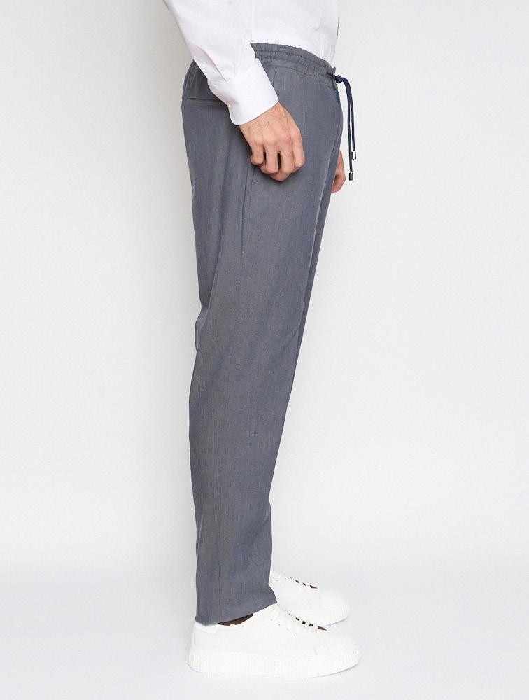 Pantalones de 5 bolsillos en lana elástica, adornado con etiqueta de cuero con logotipo de metal 3D.