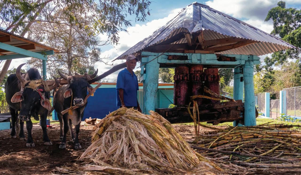 arengados los bueyes que se encargan de mover el trapiche “El Coco”, un ingenio artesanal que a los 132 años, 57 de ellos operando de manera ininterrumpida sigue sacando el jugo de caña para procesar el melao, que es utilizado como materia prima en la fabricación de dulce de naranja, masita, caramelo, jalao y otras exquisiteces.