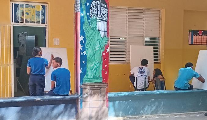 do, el logo oficial del año escolar, entre muchas otras obras de arte. “Otras áreas comprenden grandes dibujos de física, ciencias, la naturaleza, formación humana, Biología y química. Ahora mismo los estudiantes trabajan un espacio en el centro que tiene que ver la región de Latinoamérica.