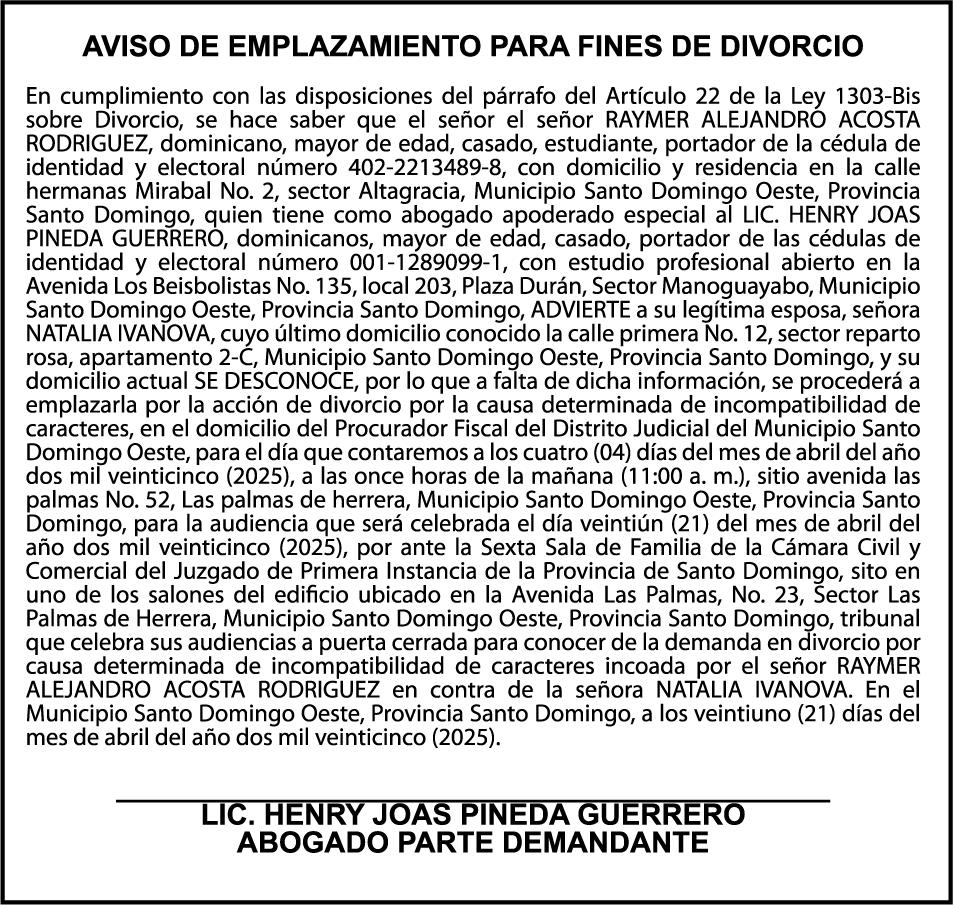 SE hace de público conocimiento la pérdida del Certificado Financiero número 846353274 emitido por Banco Popular Dominicano, S. A. Banco Múltiple, a nombre de WILLIAN MARTE, portador de la Cédula de Identidad y Electoral número 001-1123018-1, certificado número 846353274 expedido en fecha 7 de enero de 2025 por el monto de (RD$202,723.19) más intereses generados a la fecha.