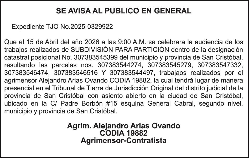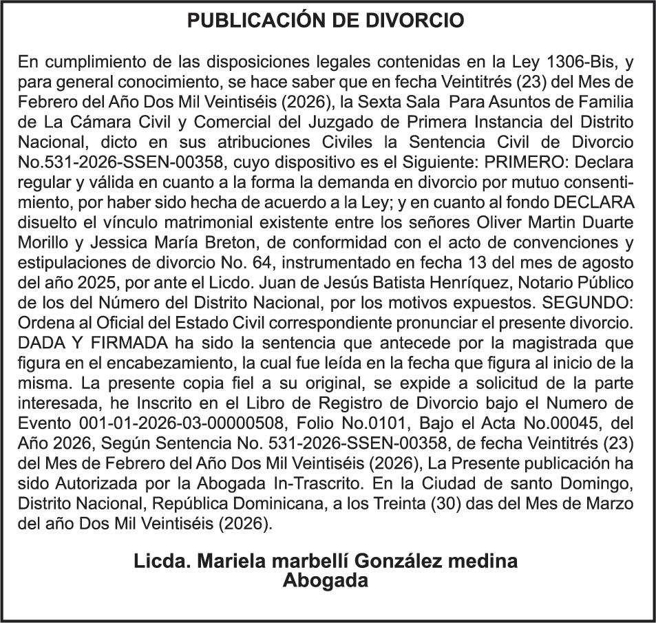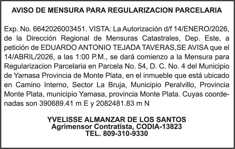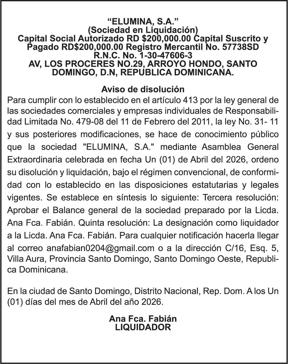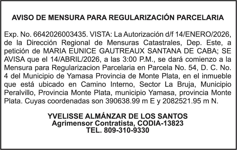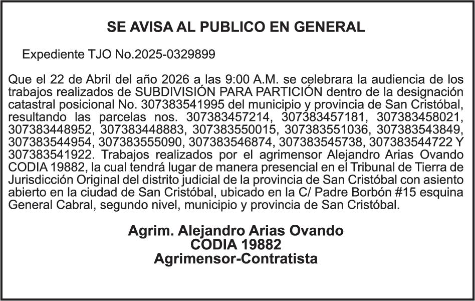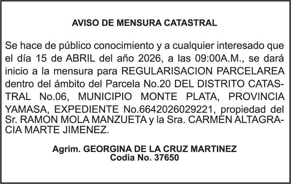 SE hace de público conocimiento la pérdida del Certificado Financiero número 786554030 emitido por Banco Popular Dominicano, S. A. Banco Múltiple, a nombre de MERCEDES FRANCISCA ARREDONDO DE LA ROSA, portadora de la Cédula de Identidad y Electoral número 023-0006831-5, certificad o número 786554030 expedido en fecha 26 de noviembre de 2025 por el monto de (RD$8,430.48) más intereses generados a la fecha.