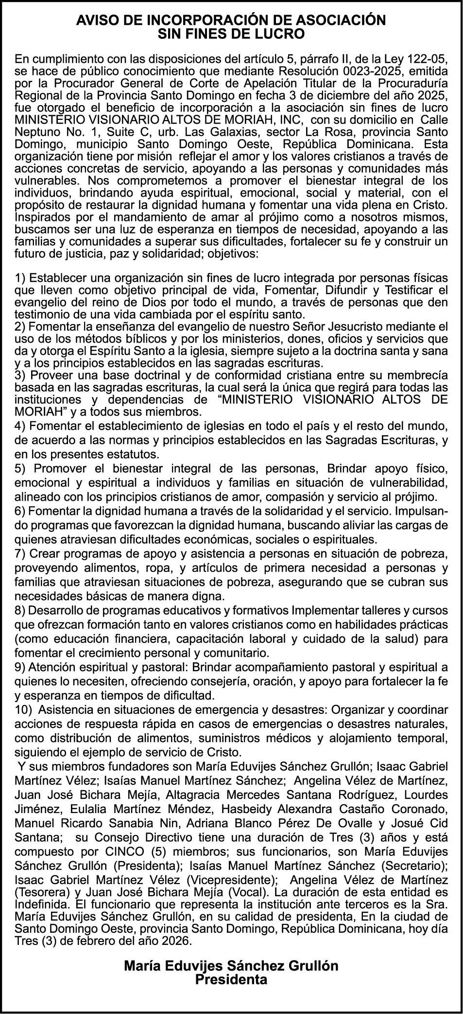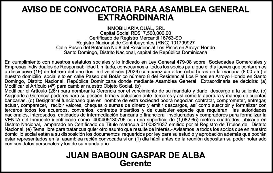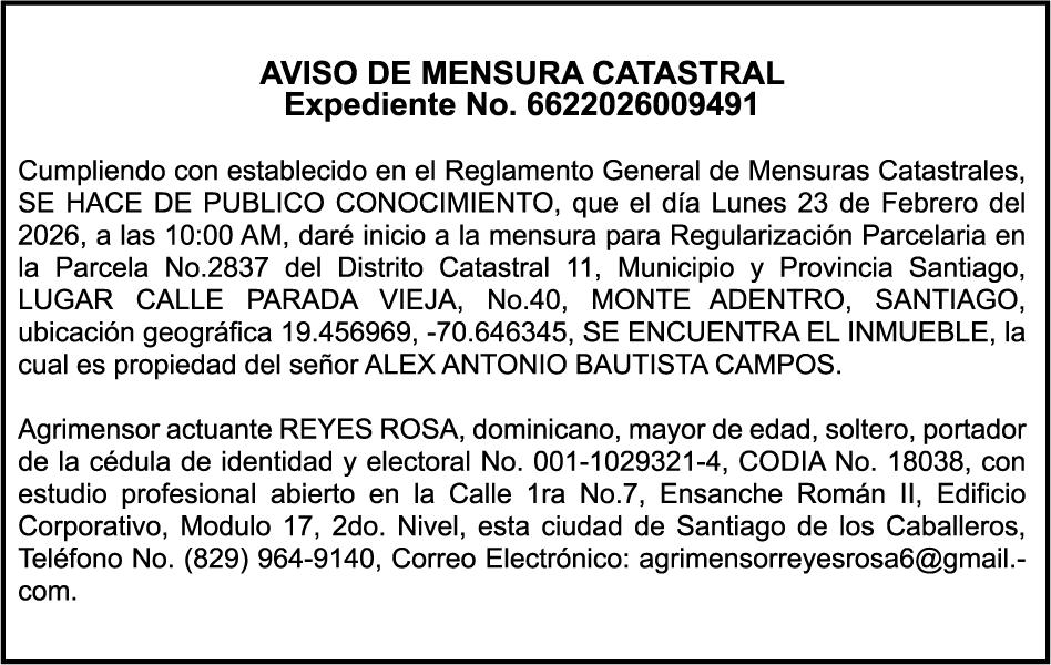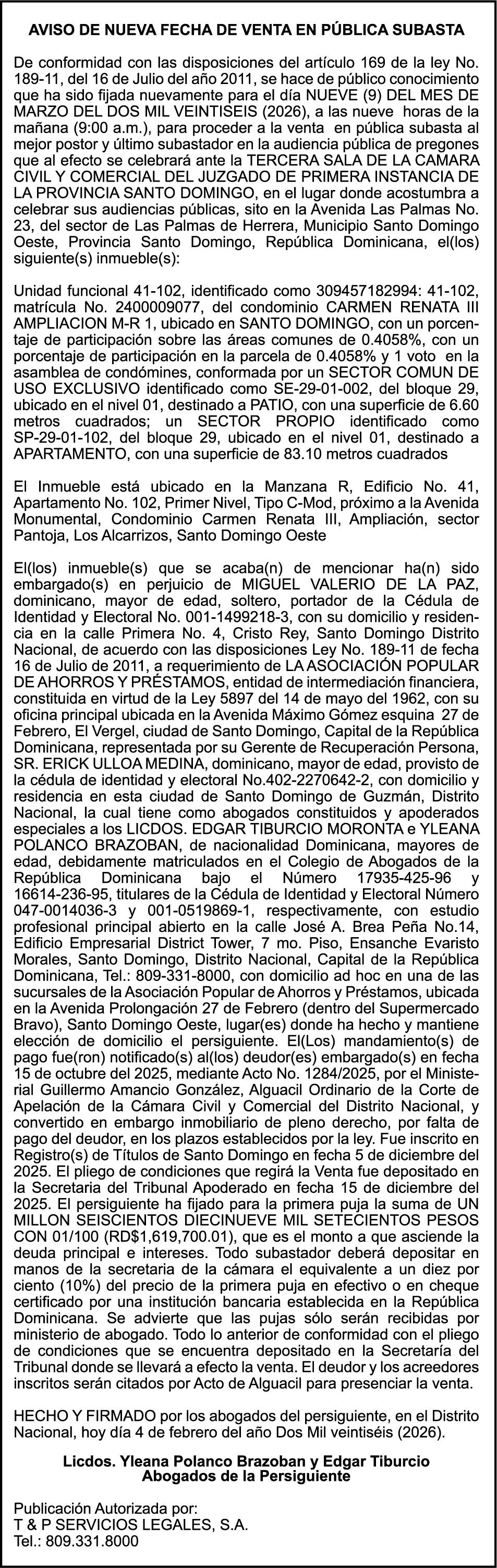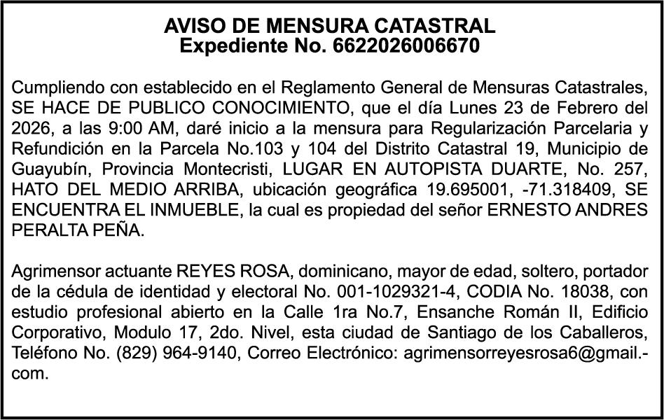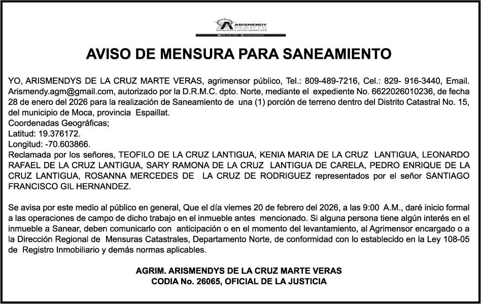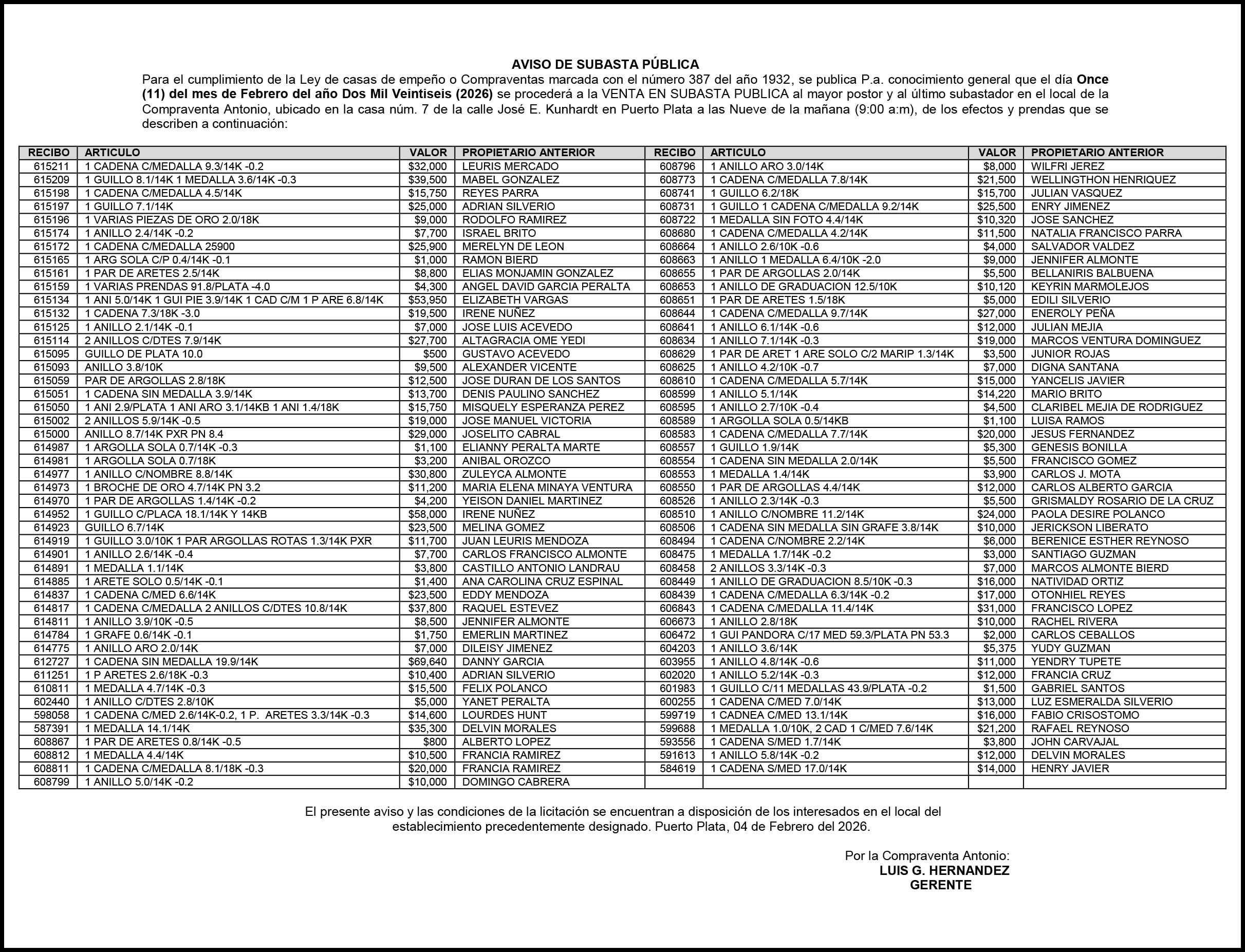 SE hace de público conocimiento la pérdida del Certificado Financiero número 847164191 emitido por Banco Popular Dominicano, S. A. Banco Múltiple, a nombre de CRISTIN YLIANA DE PAULA, portadora de la Cédula de Identidad y Electoral número 023-0169065-3, certificado número 847164191 expedido en fecha 11 de febrero de 2025 por el monto de (RD$125,803.99) más intereses generados a la fecha.