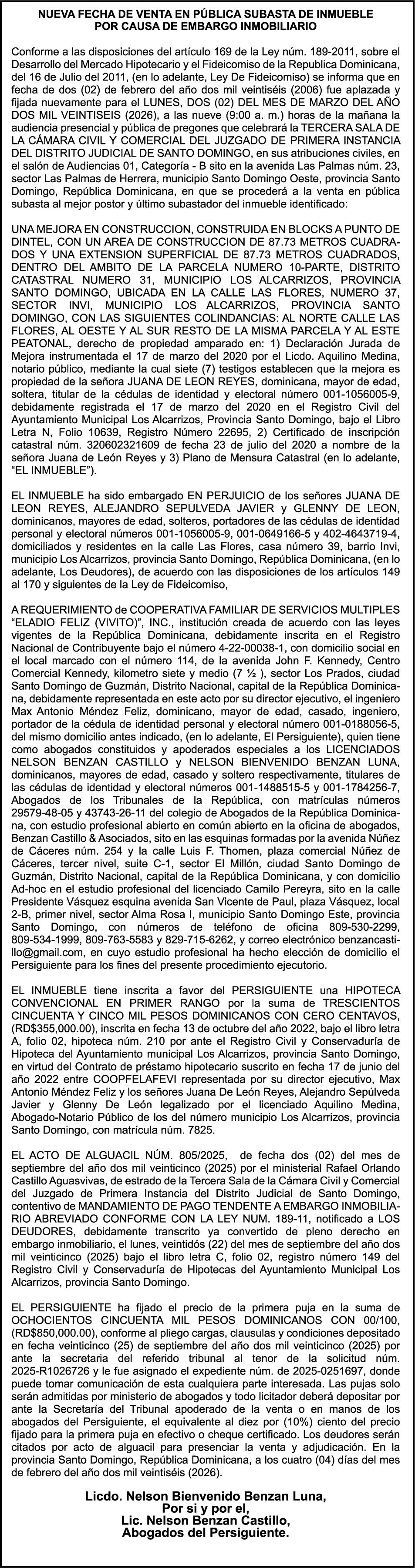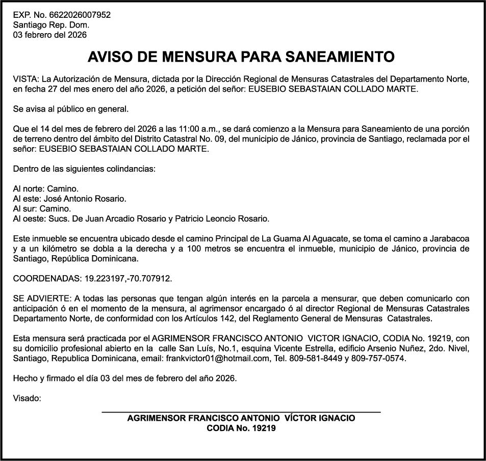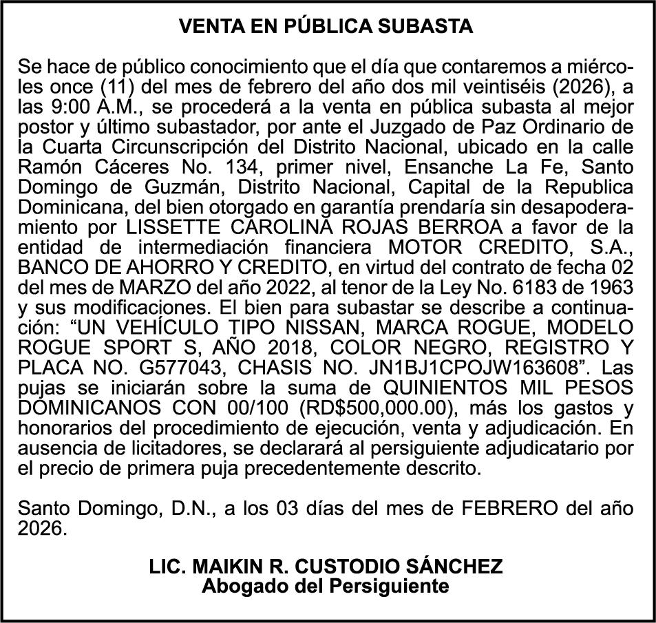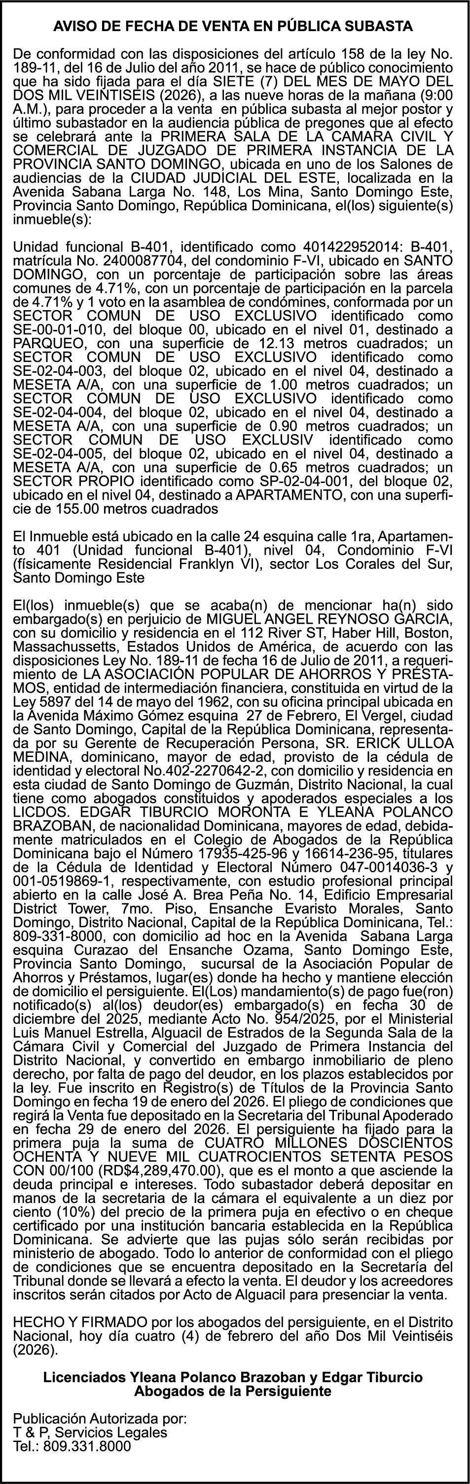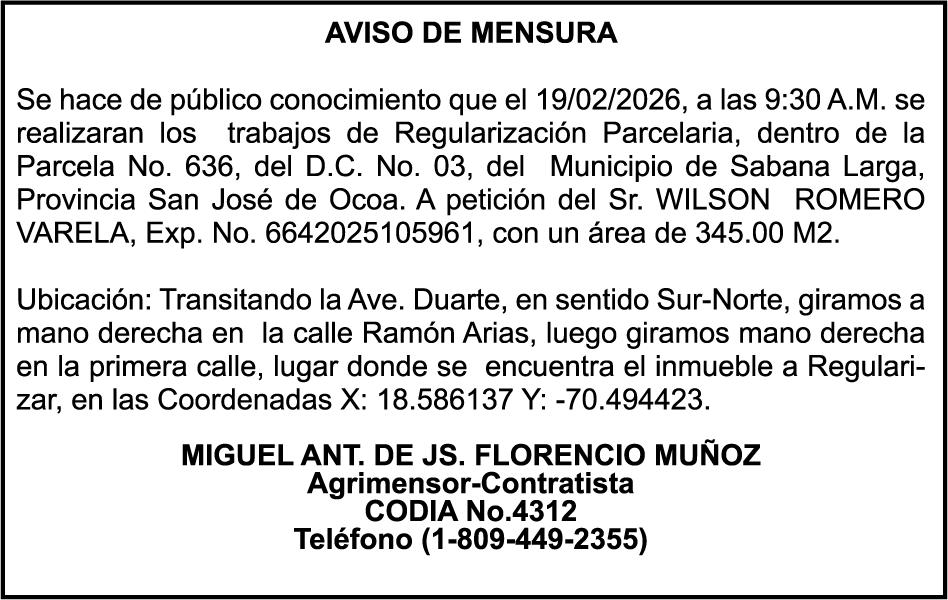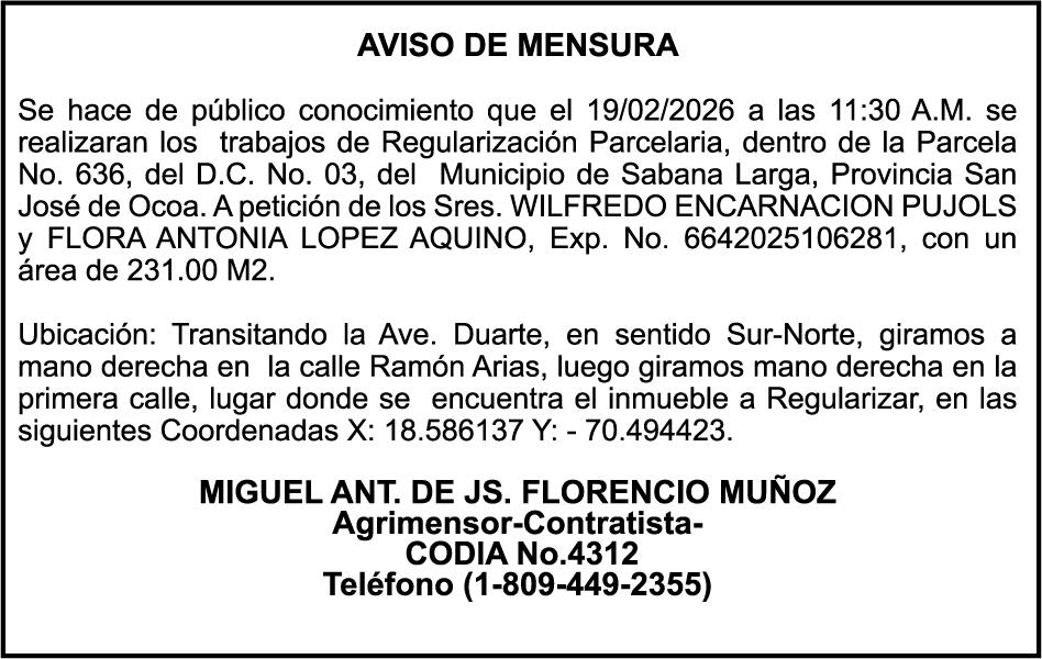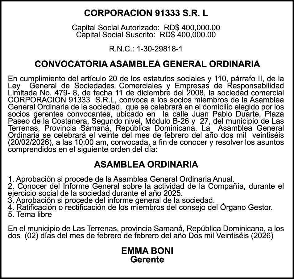 SE hace de público conocimiento la pérdida del Certificado Financiero número 847164191 emitido por Banco Popular Dominicano, S. A. Banco Múltiple, a nombre de CRISTIN YLIANA DE PAULA, portadora de la Cédula de Identidad y Electoral número 023-0169065-3, certificado número 847164191 expedido en fecha 11 de febrero de 2025 por el monto de (RD$125,803.99) más intereses generados a la fecha.
