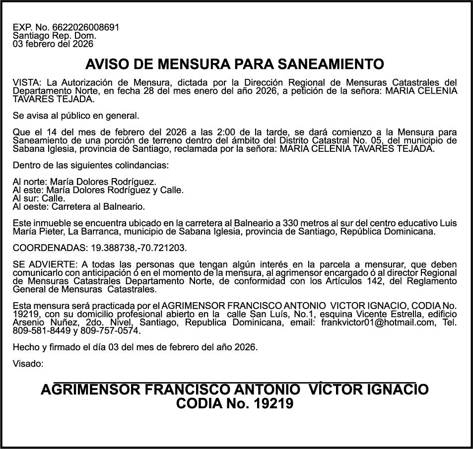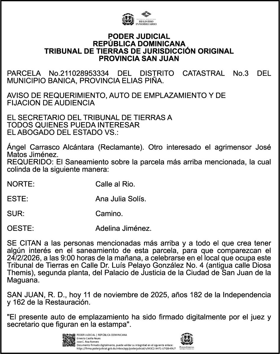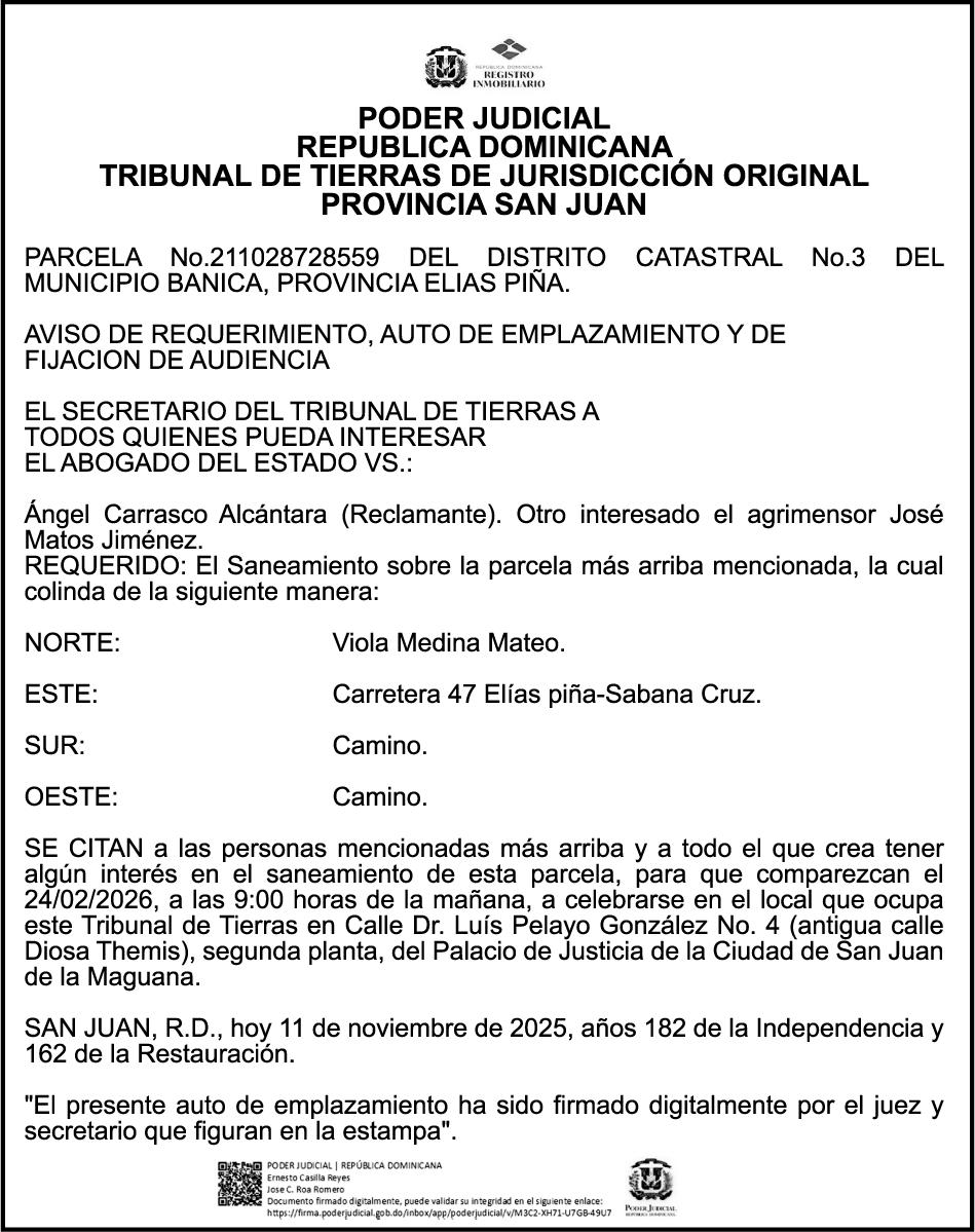 9:00 A.M. Presentación del portal web “Ojo Ciudadano”, Salón Pedro Miguel Caratini, sede de la Cámara de Cuentas de la República Dominicana.