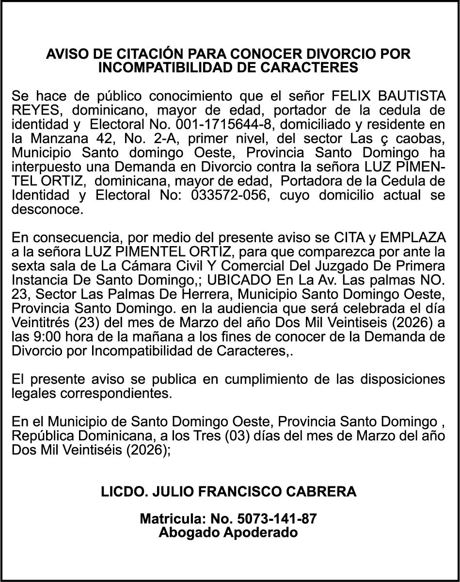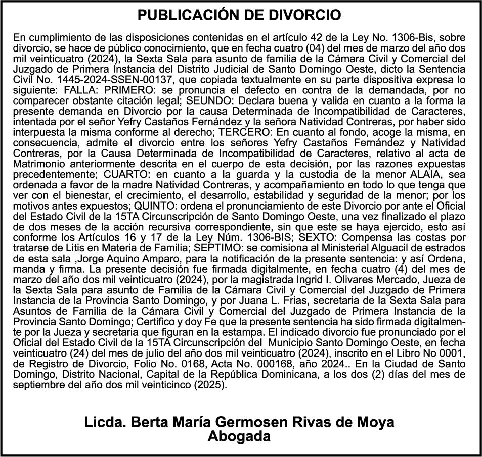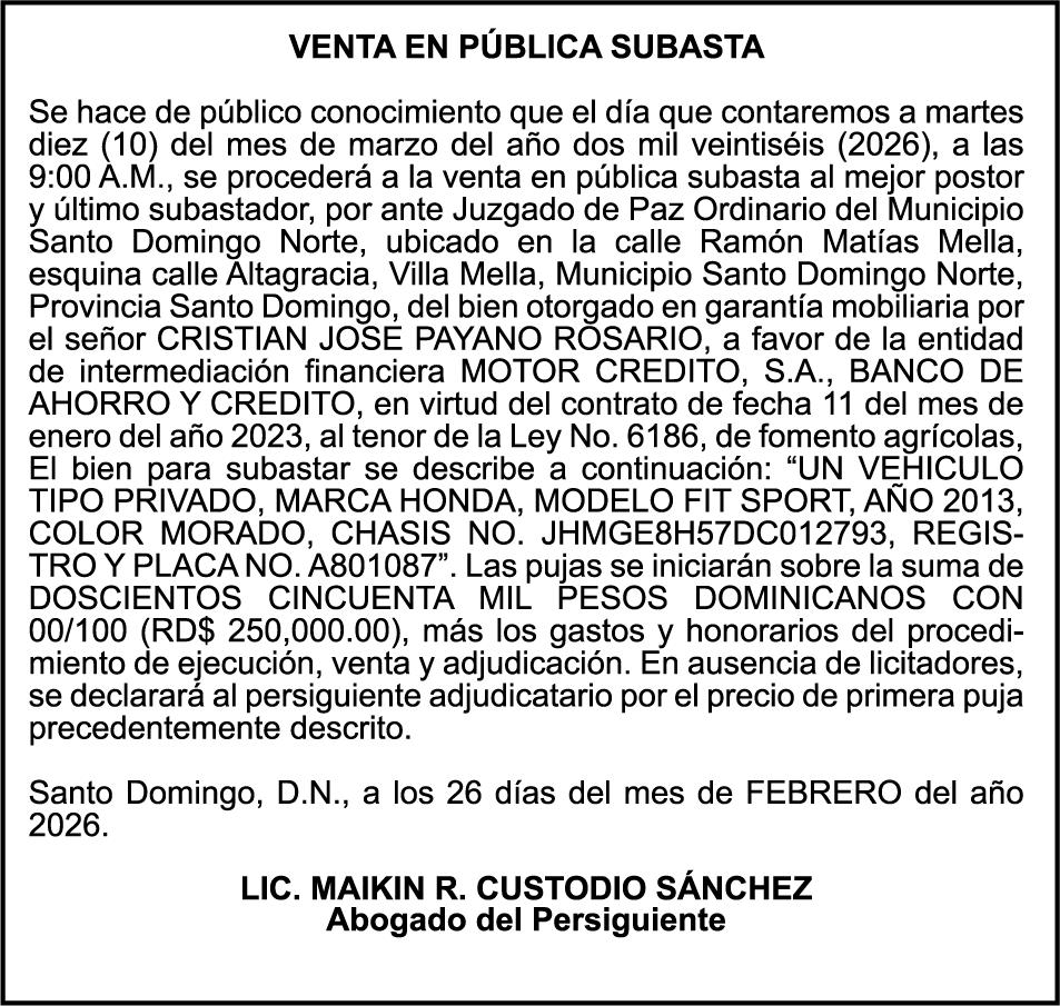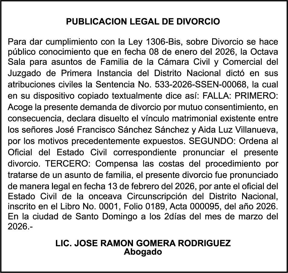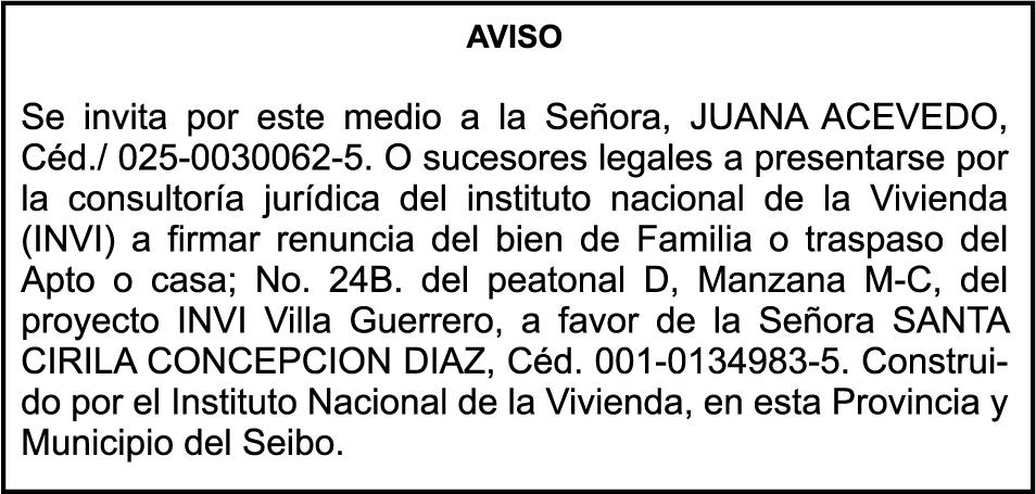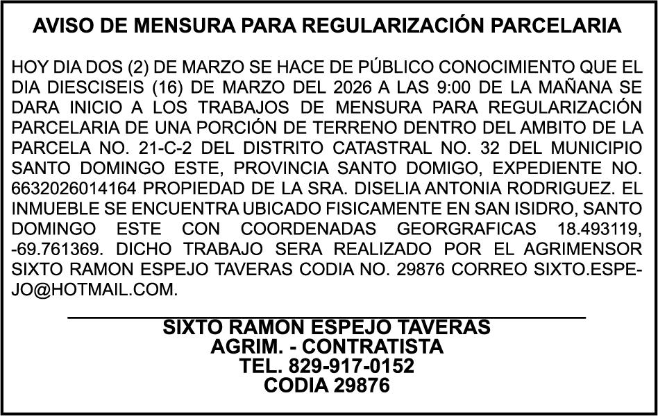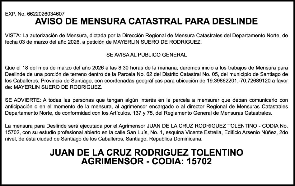 SE hace de público conocimiento la pérdida del Certificado Financiero número 847846078 emitido por Banco Popular Dominicano, S. A. Banco Múltiple, a nombre de APOLINAR RINCON FELIZ, portador de la Cédula de Identidad y Electoral número 001-1318691-0 certificado número 847846078 expedido el 13 de marzo de 2025 por el monto de (USD$15,144.23) más intereses generados a la fecha.