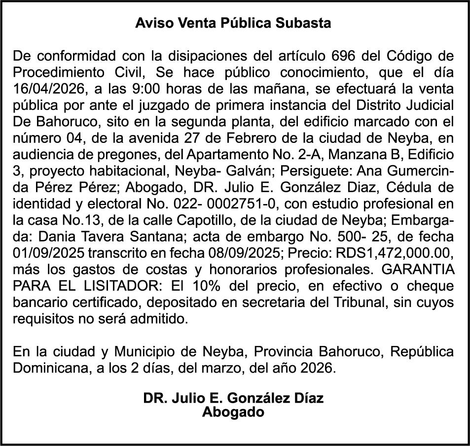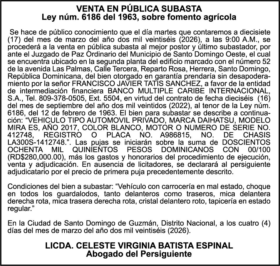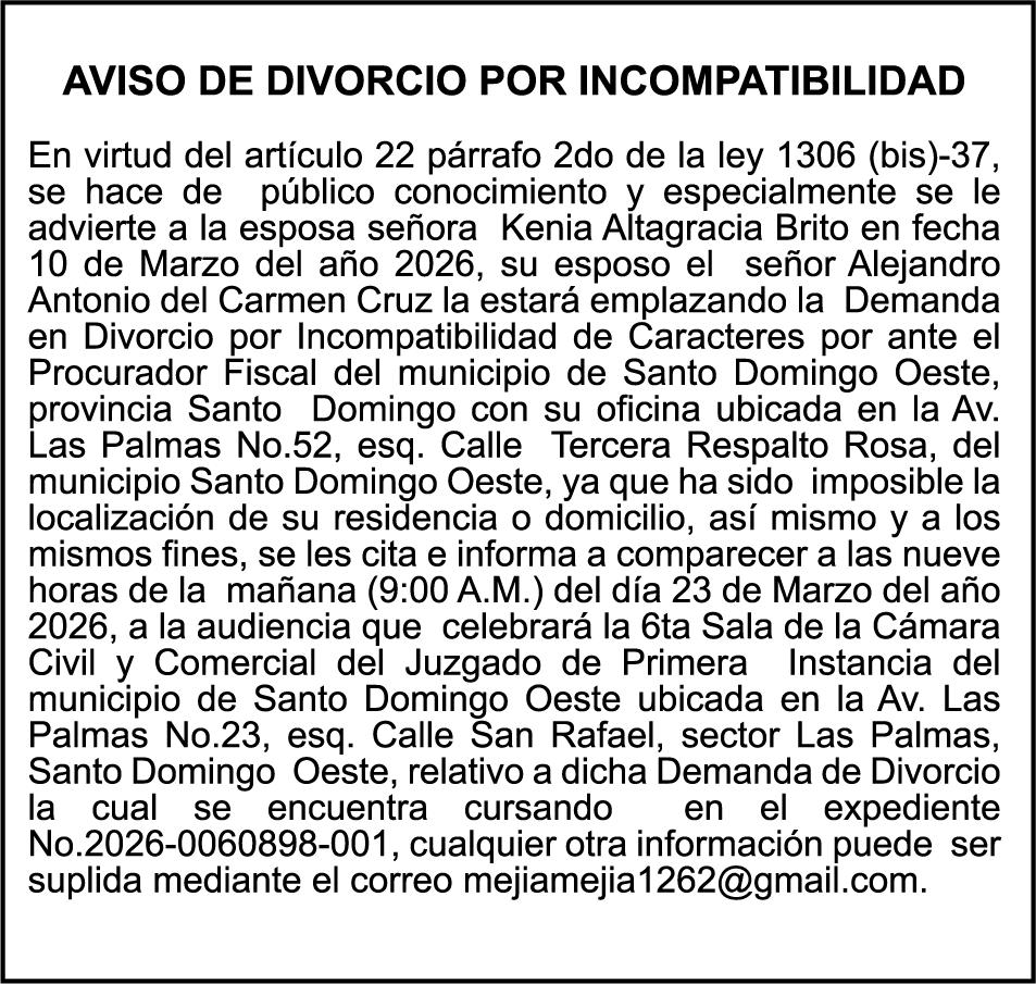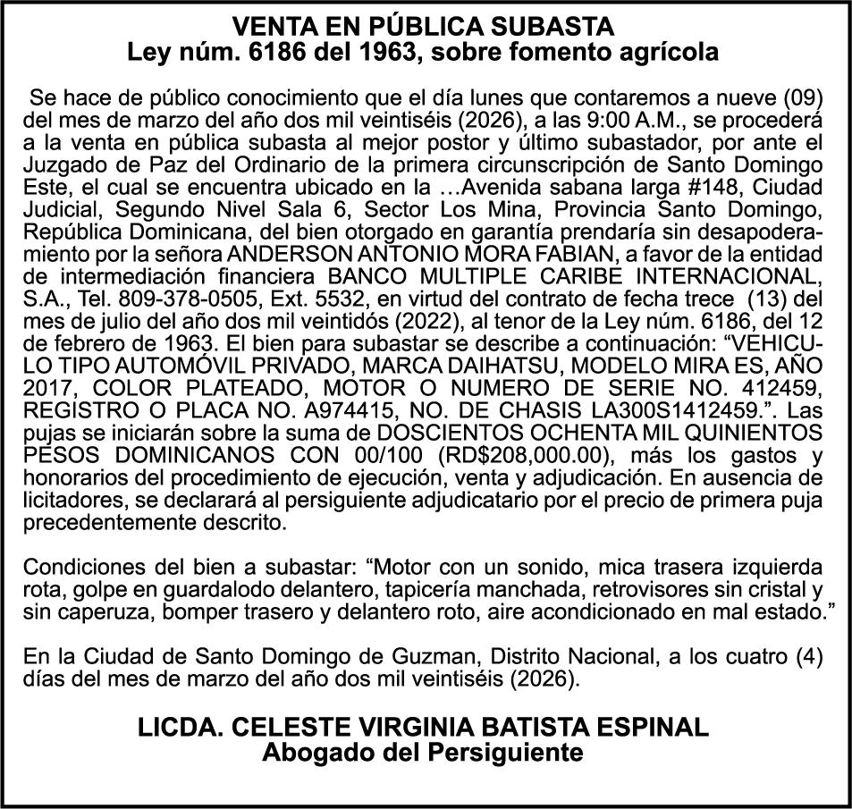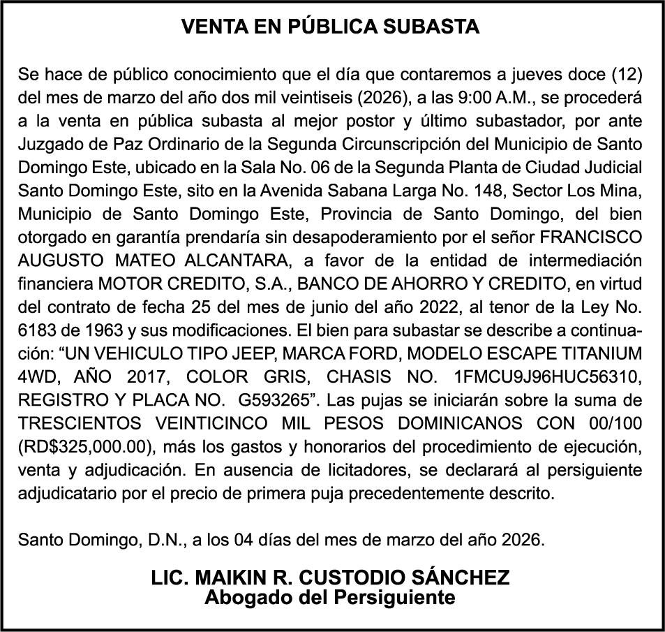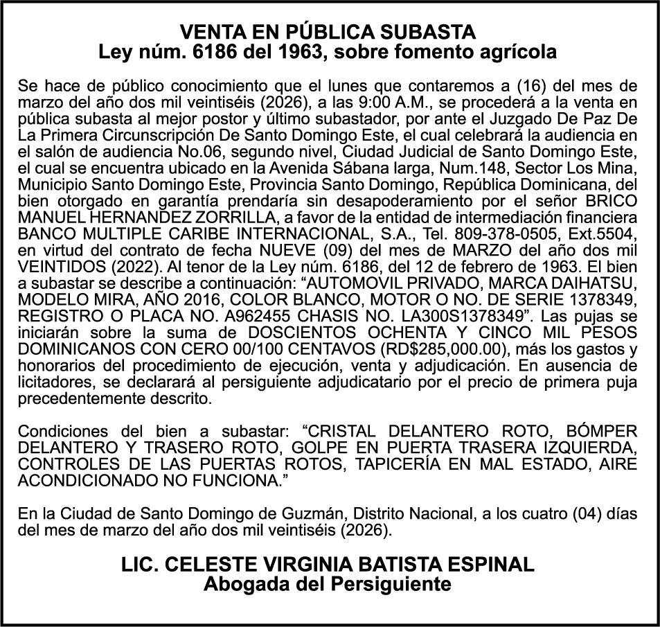SE hace de público conocimiento la pérdida del Certificado Financiero número 847846078 emitido por Banco Popular Dominicano, S. A. Banco Múltiple, a nombre de APOLINAR RINCON FELIZ, portador de la Cédula de Identidad y Electoral número 001-1318691-0 certificado número 847846078 expedido el 13 de marzo de 2025 por el monto de (USD$15,144.23) más intereses generados a la fecha.