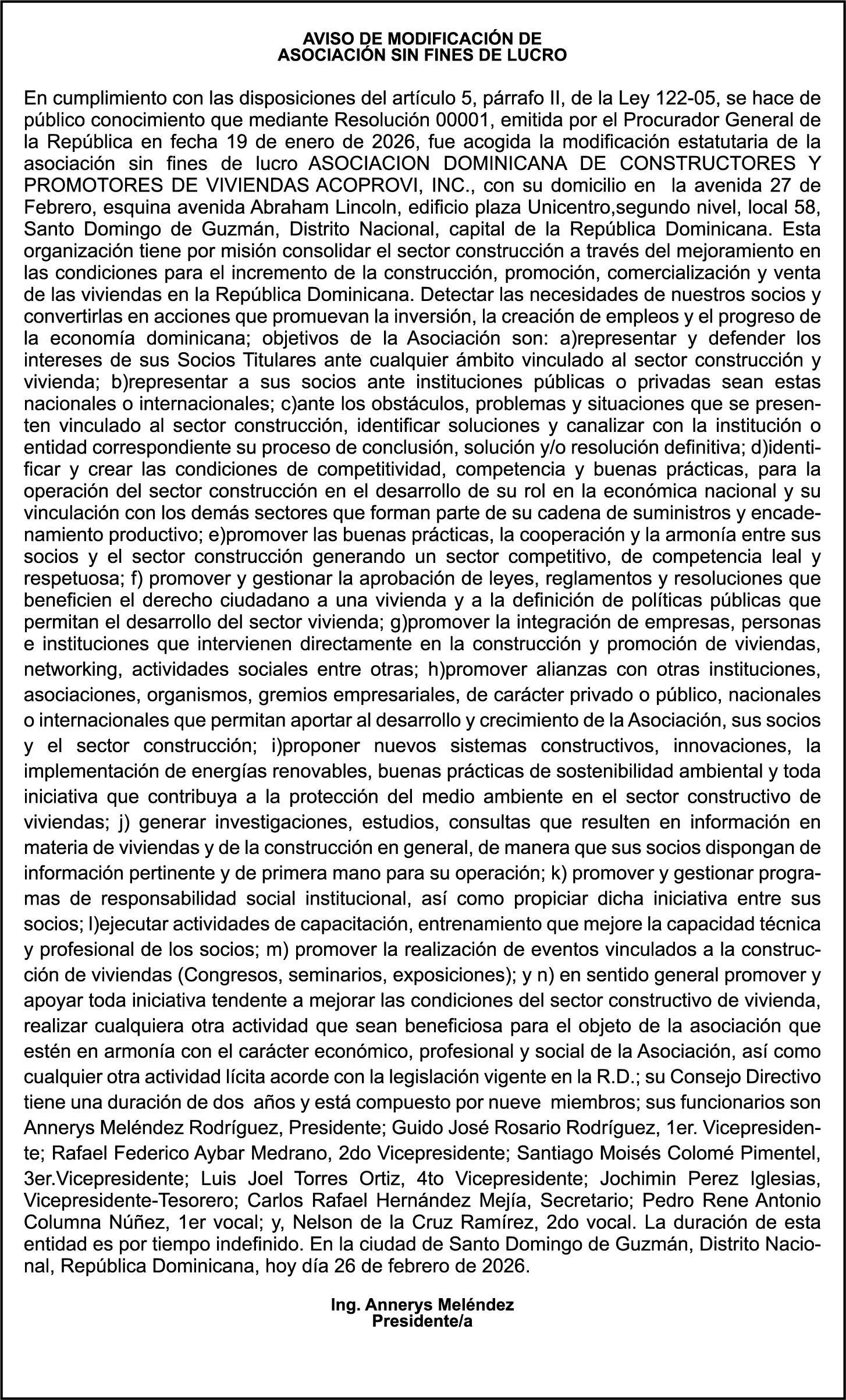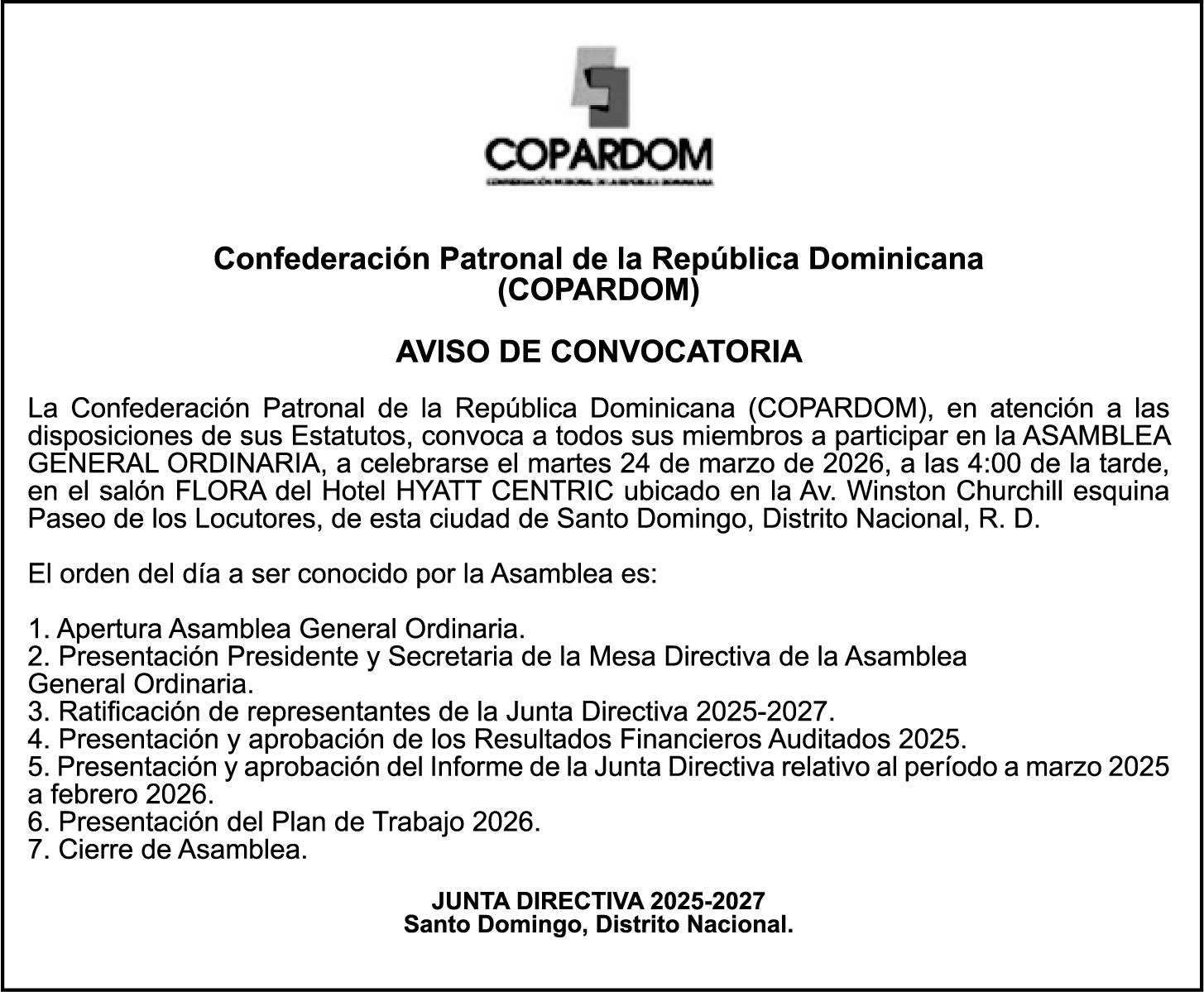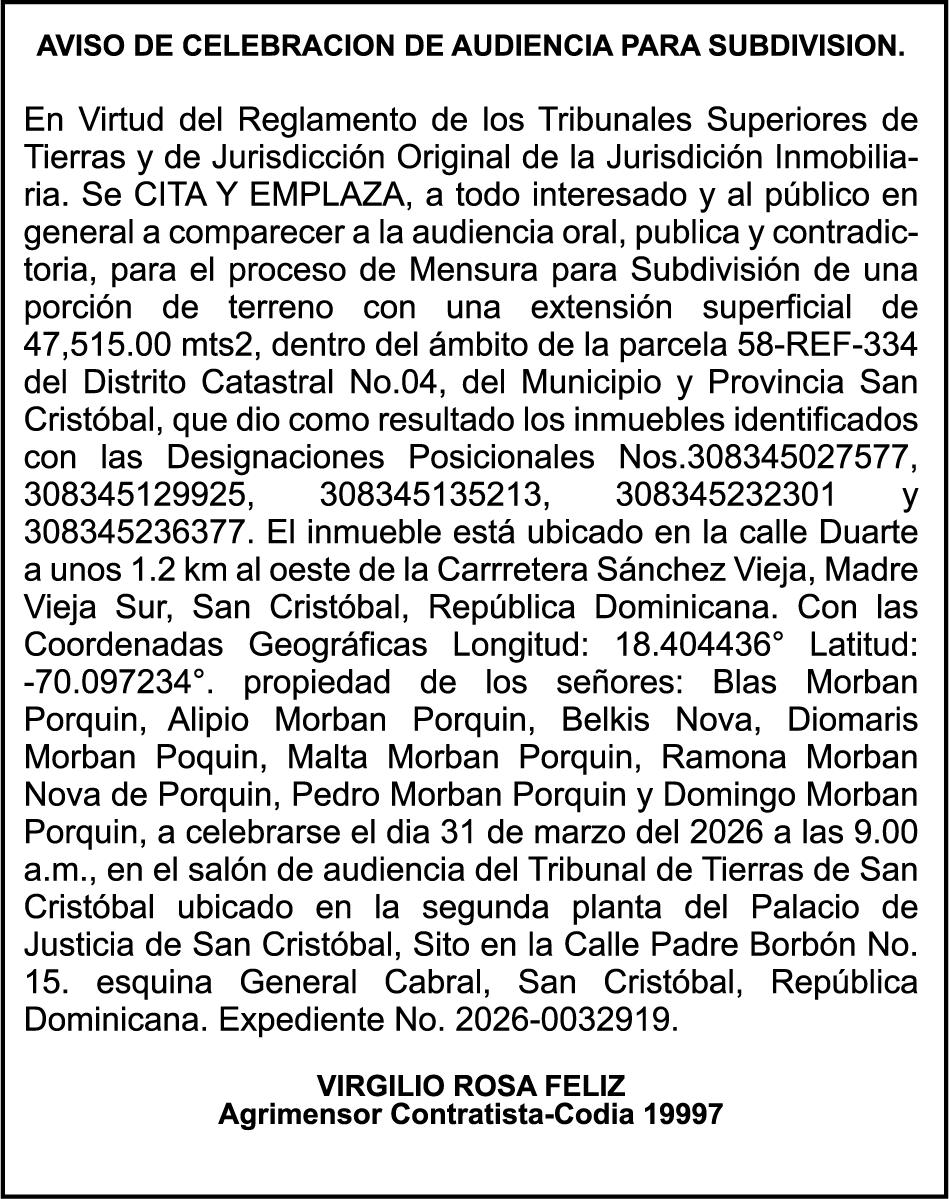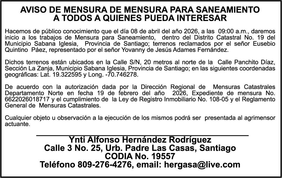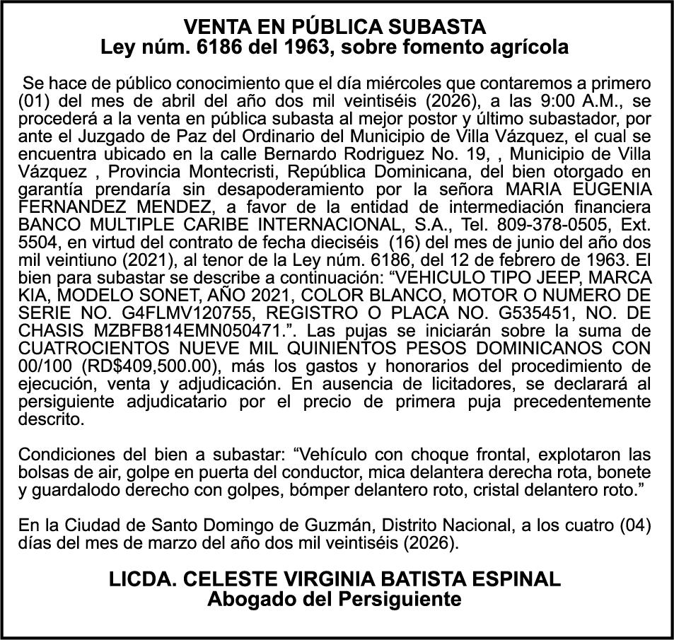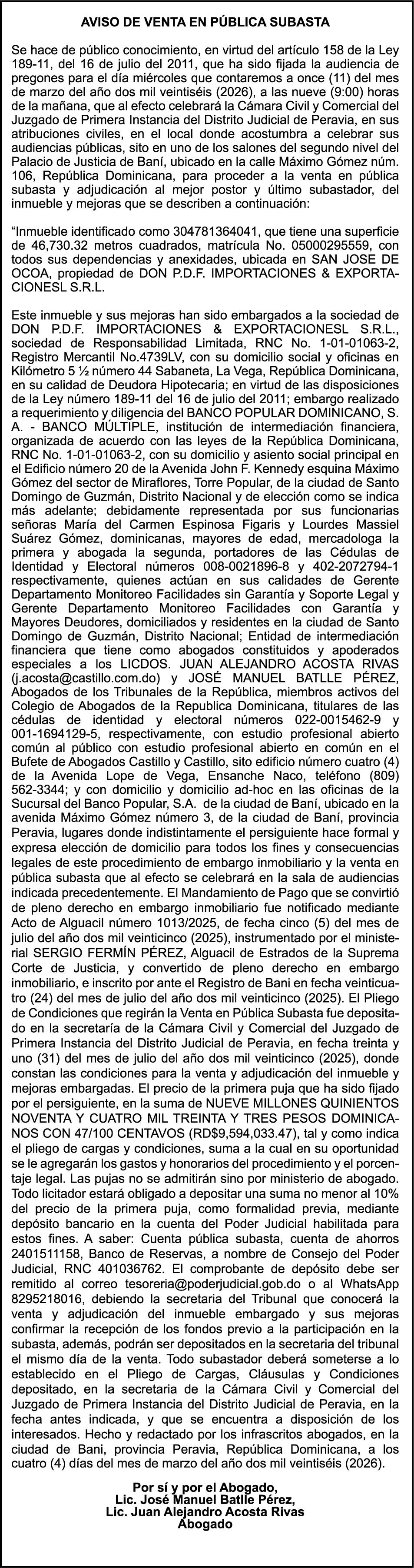 SE hace de público conocimiento la pérdida del Certificado Financiero número 847846078 emitido por Banco Popular Dominicano, S. A. Banco Múltiple, a nombre de APOLINAR RINCON FELIZ, portador de la Cédula de Identidad y Electoral número 001-1318691-0 certificado número 847846078 expedido el 13 de marzo de 2025 por el monto de (USD$15,144.23) más intereses generados a la fecha.
