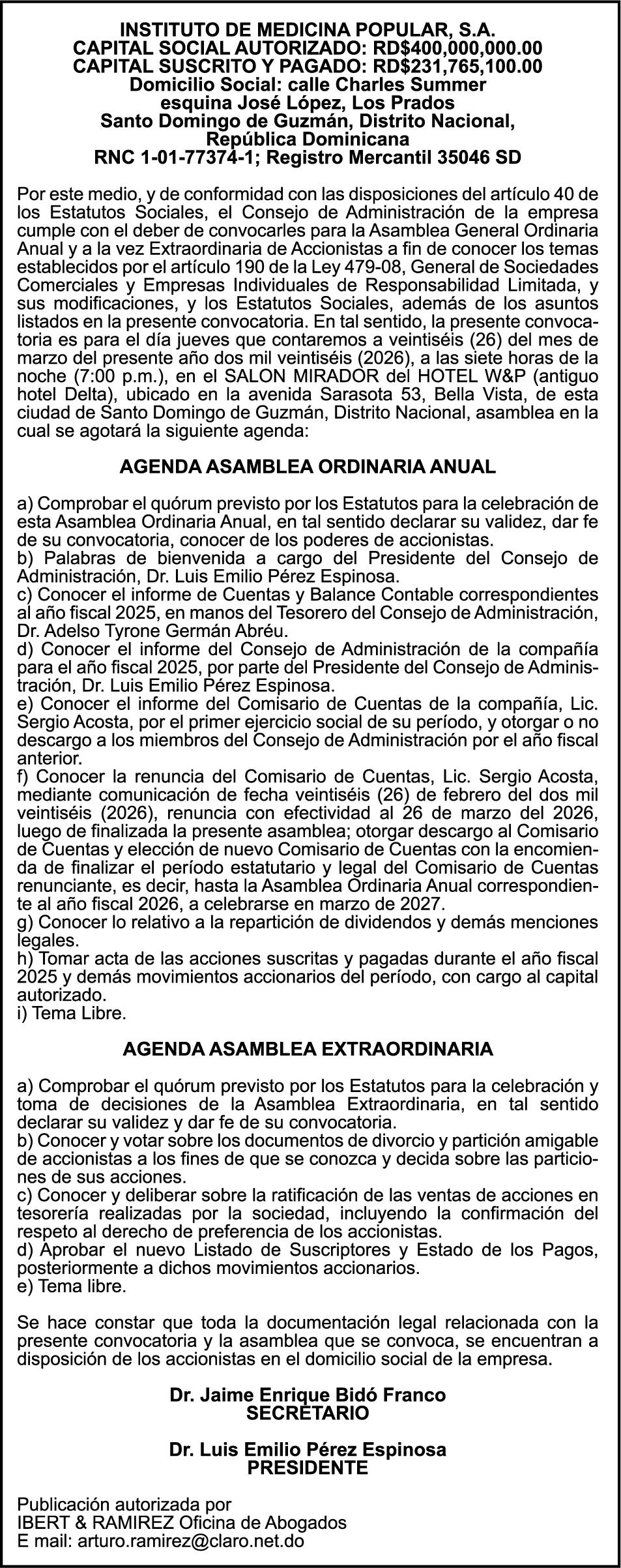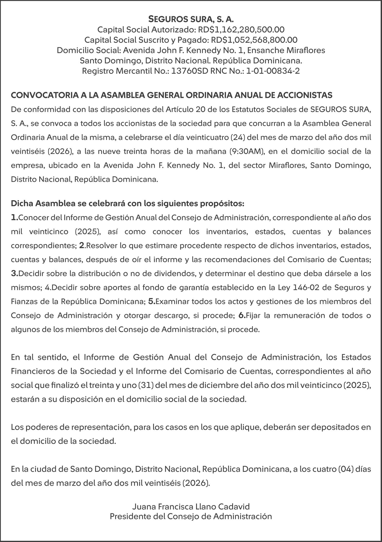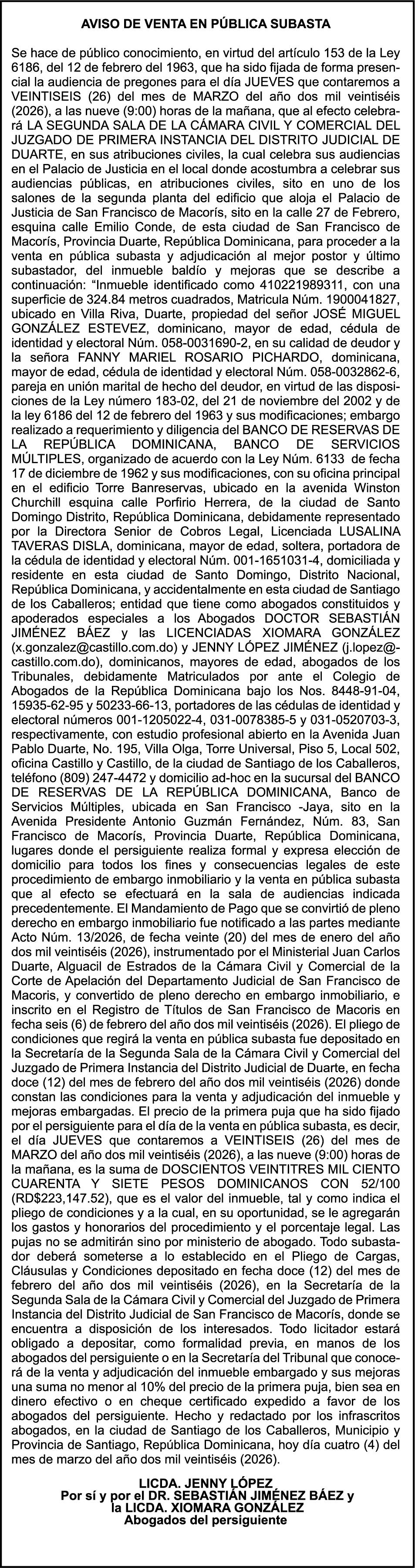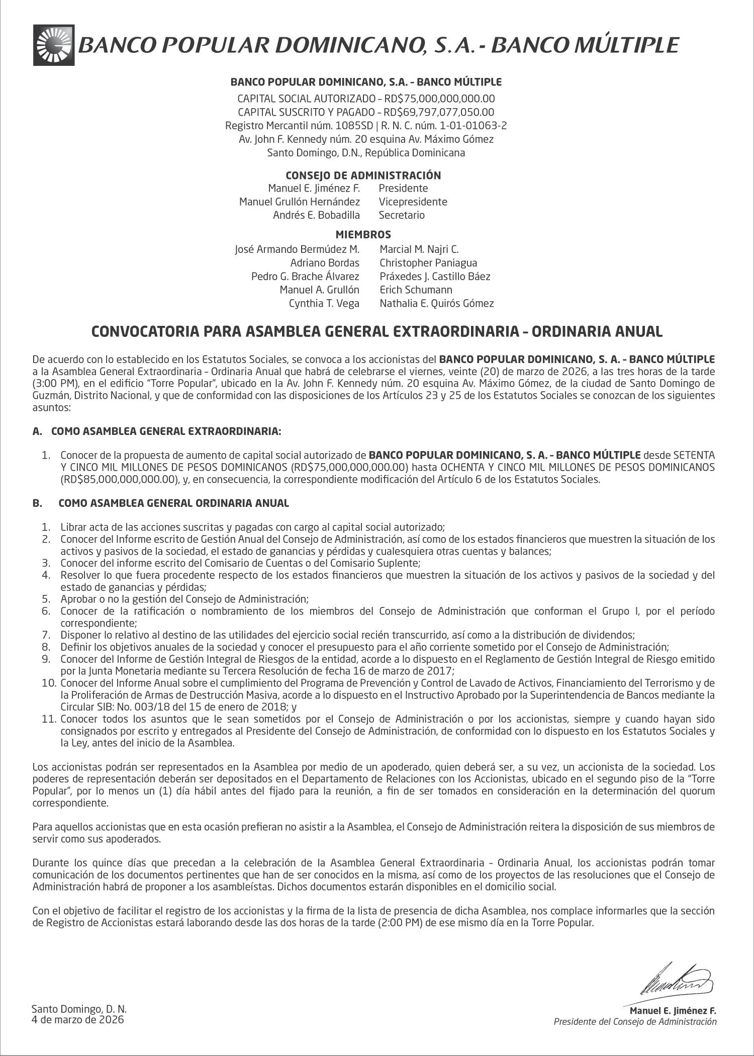 SE hace de público conocimiento la pérdida del Certificado Financiero número 847846078 emitido por Banco Popular Dominicano, S. A. Banco Múltiple, a nombre de APOLINAR RINCON FELIZ, portador de la Cédula de Identidad y Electoral número 001-1318691-0 certificado número 847846078 expedido el 13 de marzo de 2025 por el monto de (USD$15,144.23) más intereses generados a la fecha.