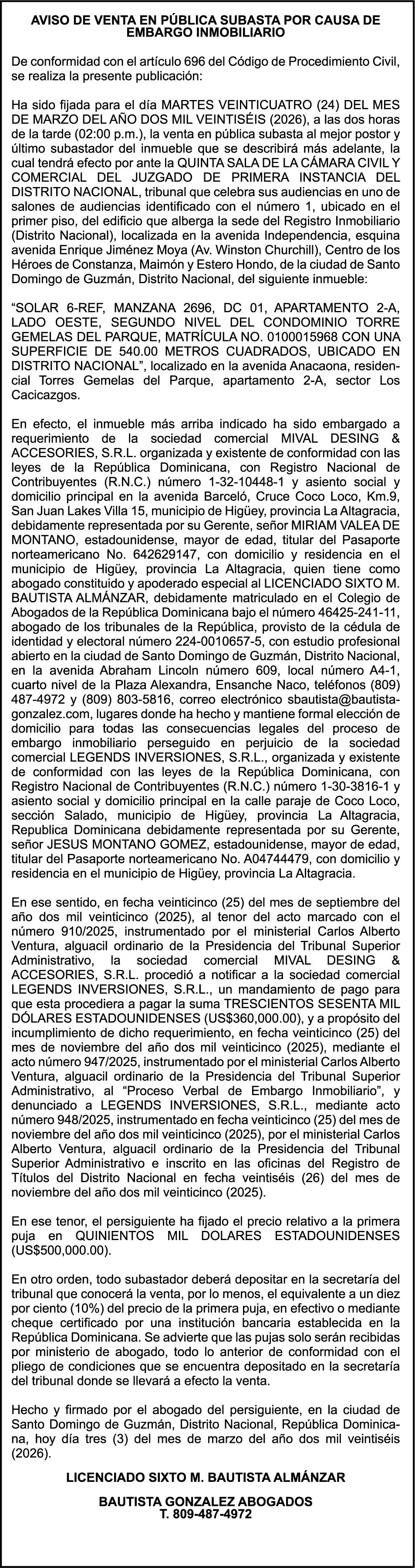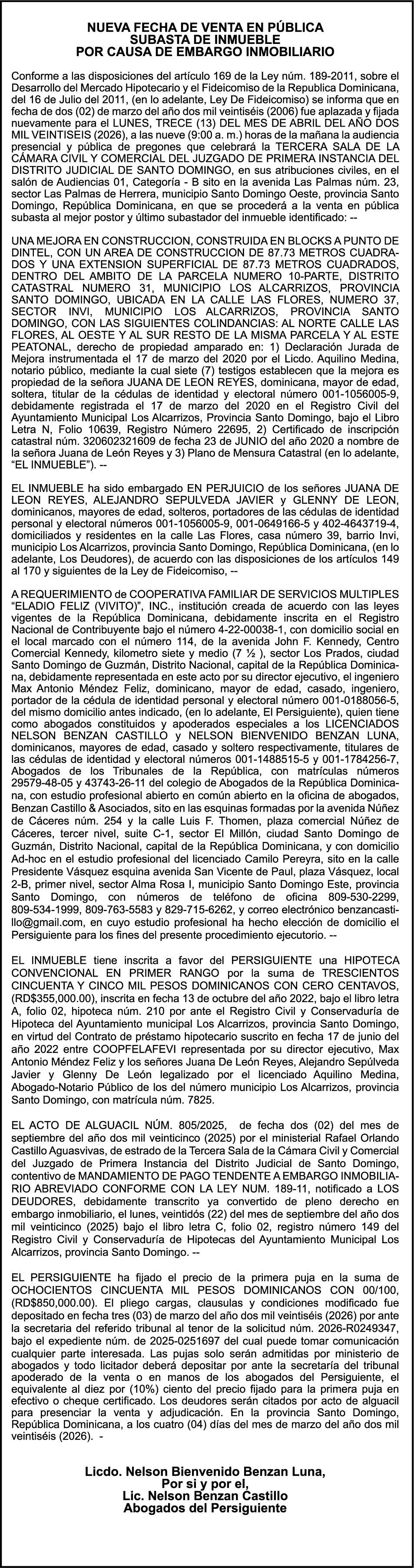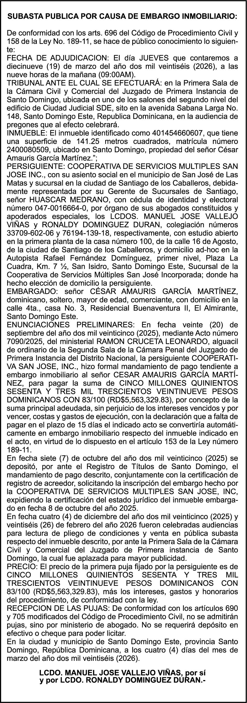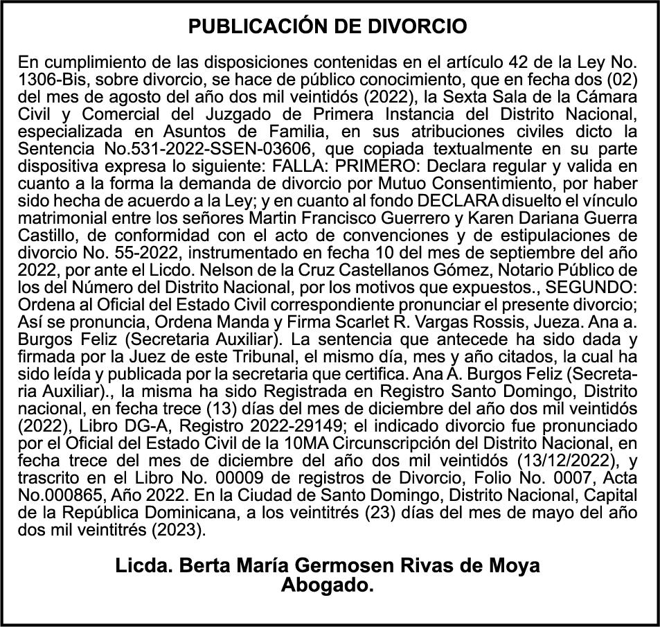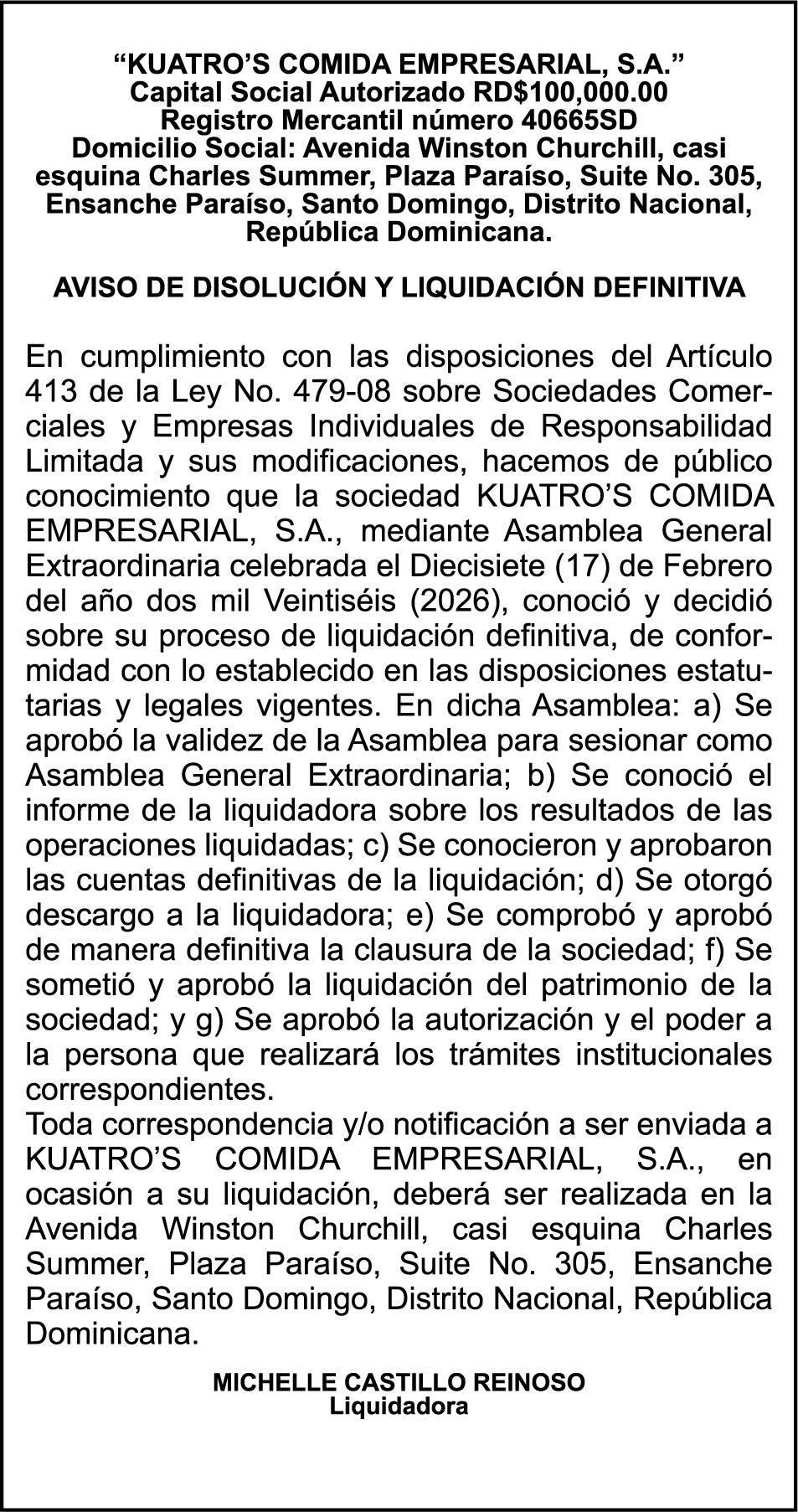SE hace de público conocimiento la pérdida del Certificado Financiero número 847846078 emitido por Banco Popular Dominicano, S. A. Banco Múltiple, a nombre de APOLINAR RINCON FELIZ, portador de la Cédula de Identidad y Electoral número 001-1318691-0 certificado número 847846078 expedido el 13 de marzo de 2025 por el monto de (USD$15,144.23) más intereses generados a la fecha.