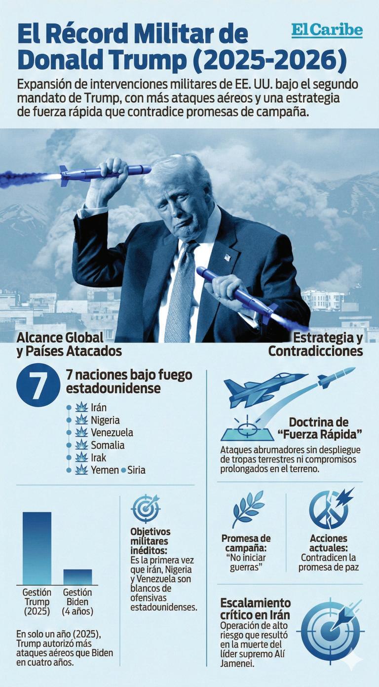 Desde 2025 el presidente ha autorizado ataques militares en siete países, incluidos territorios nunca antes bombardeados por los Estados Unidos