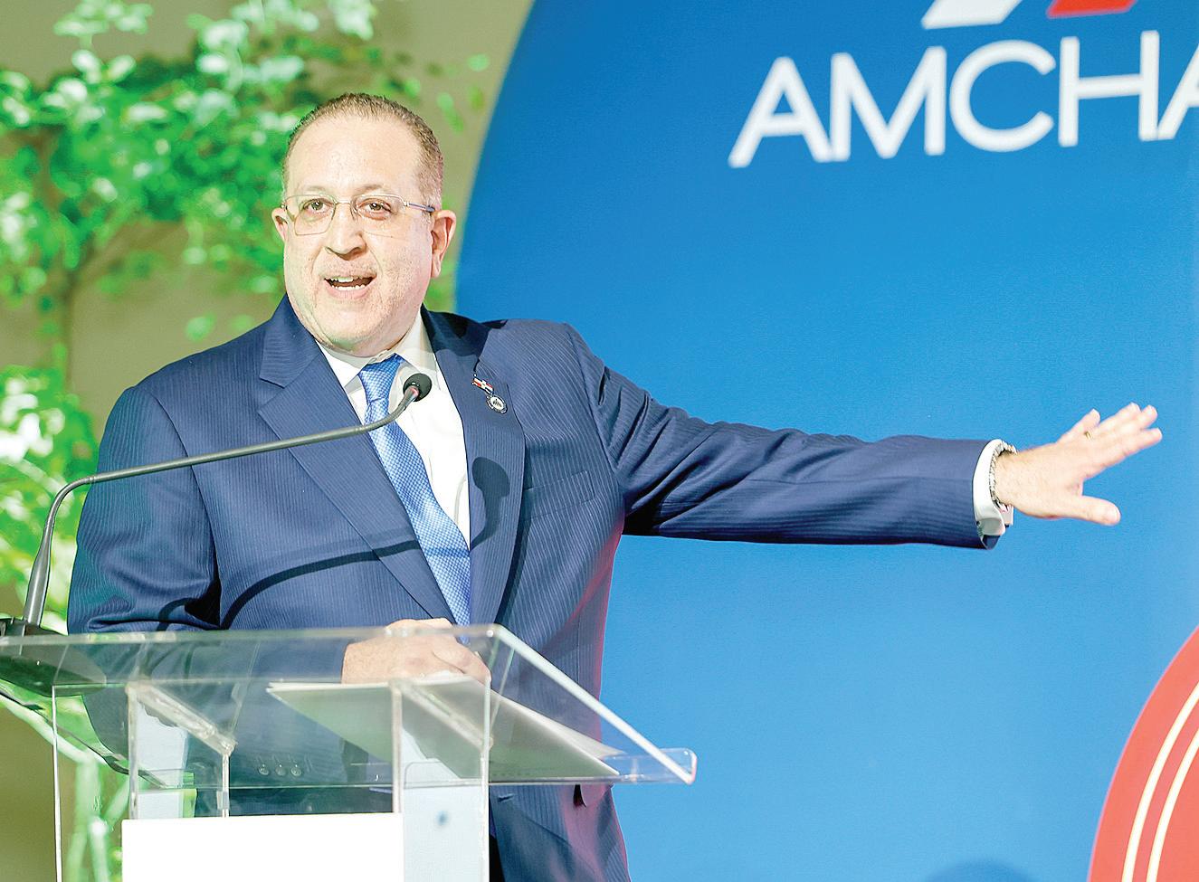 El ministro de Hacienda fue el orador invitado en el Almuerzo de la Cámara Americana de Comercio en el que planteó aumento de la inversión pública y corrección de trabas burocráticas a la inversión privada. P.15