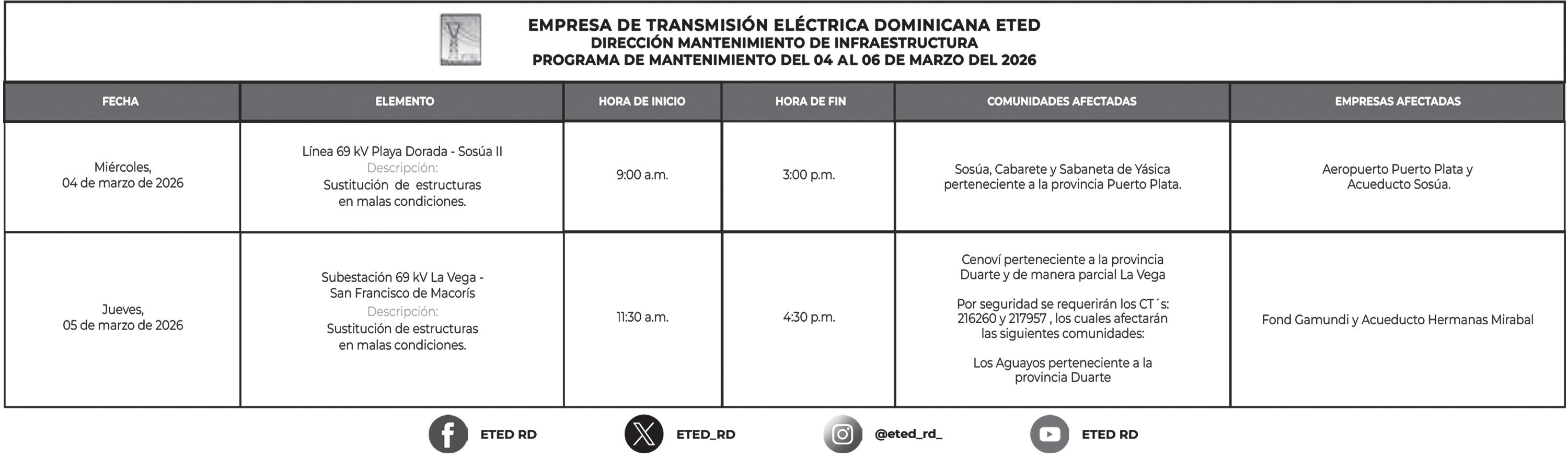 Edeeste informó que durante el año 2025 destinó RD$842,183,798.24 al reemplazo de materiales eléctricos dañados a causa de manipulaciones ilegales, sabotajes y conexiones irregulares.