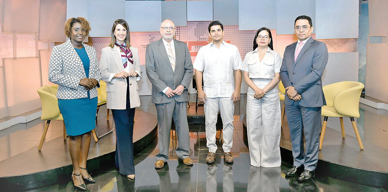 Hogla Enecia Pérez, Katherine Hernández, Nelson Rodríguez, director elCaribe, Jhael Isa Tavárez, vicepresidente de la Empresa Metropolitana de Transporte (EMT), Yanesi Espinal y Federico Jovine.