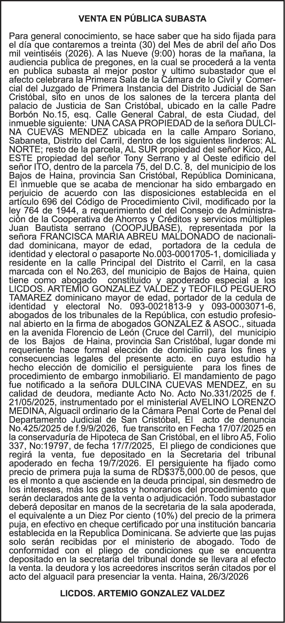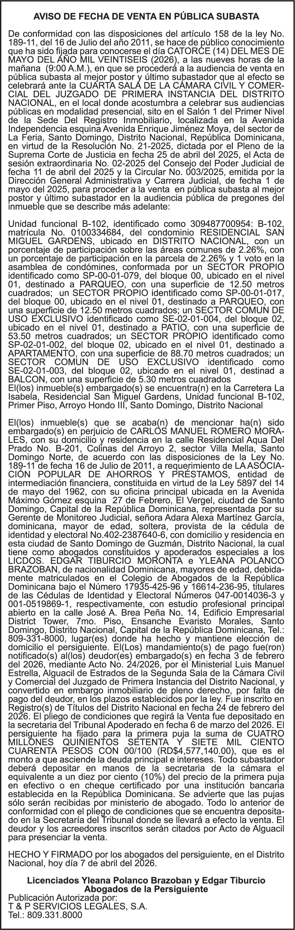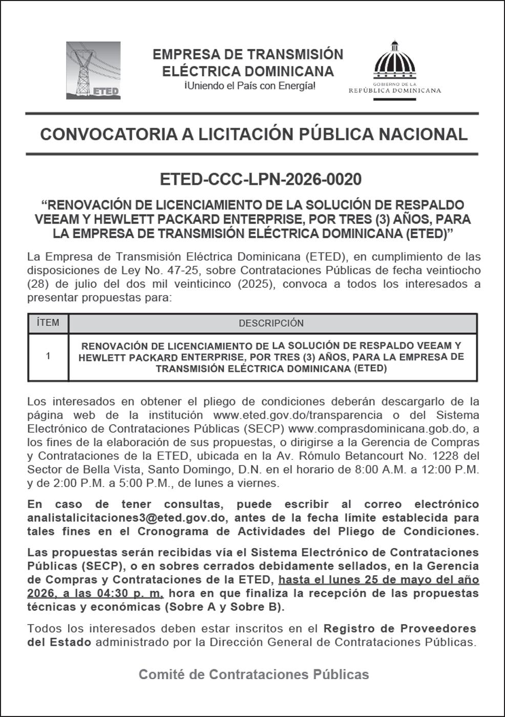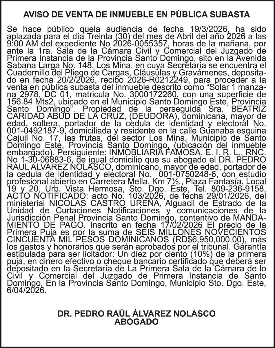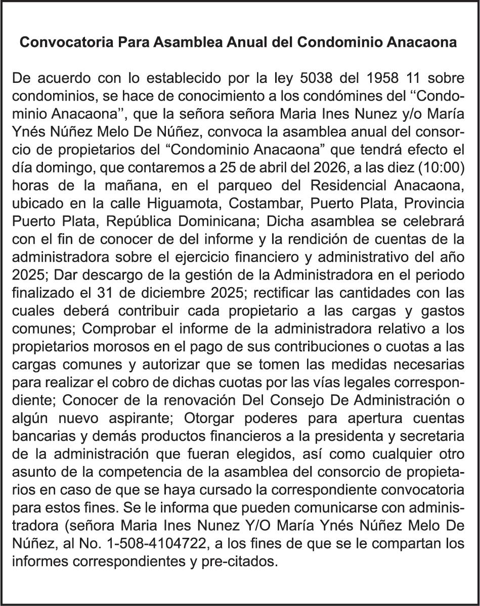 SE hace de público conocimiento la pérdida del Certificado Financiero número 848036166 emitido por Banco Popular Dominicano, S. A. Banco Múltiple, a nombre de WILFREDO HIDALGO UREÑA, portador de la Cédula de Identidad y Electoral número 001-0505604-8 , certificado número 848036166 expedido el 21 de marzo de 2025 por el monto de (USD$22,262.38) más intereses generados a la fecha.