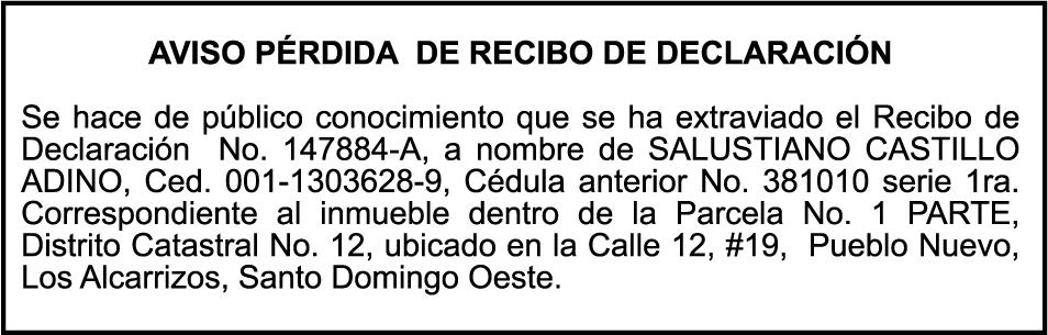 PERDIDA DE MATRICULA.Placa K0389362,Chasis HA022629956,Marca HONDA,Modelo HA02,Color AZUL,Año 1984, a nombre de RAFAEL ANTONIO RUBIO CAMACHO,Ced.054-0095475-5