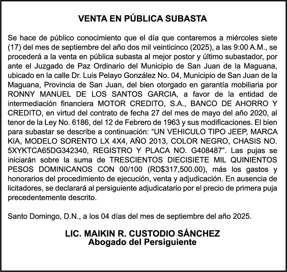 K2395899, Motocicleta BAJAJ, modelo PLATINA 100 ES, color negro, año 2023, chasis MD2A76AX6PWL48076, a nombre de EDDY ISAAC DE LA ROSA SENA, Ced. 40243083363.