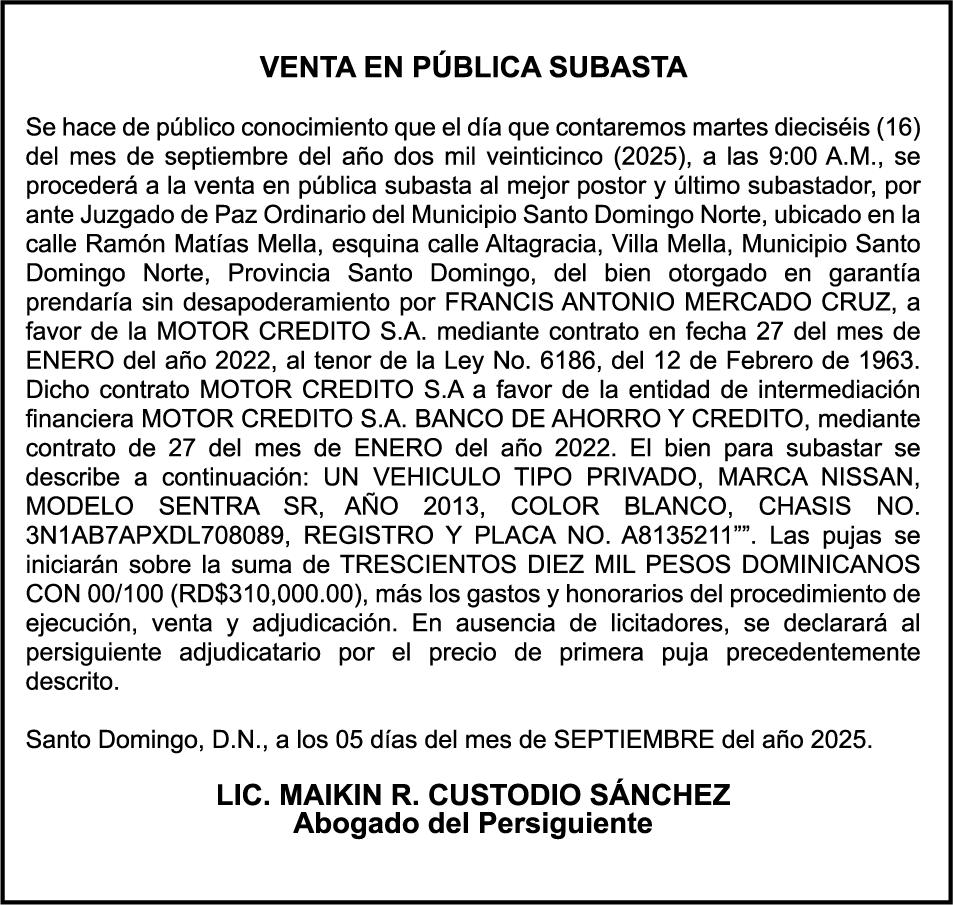 MITSUBISHI FUSO, modelo CANTER (FE83CCD6L), color blanco, año 2025, placa S024714, chasis FE83CCA66137, a nombre de CONSTRUCTORA MONTEBIANCO SRL, RNC 131474535.