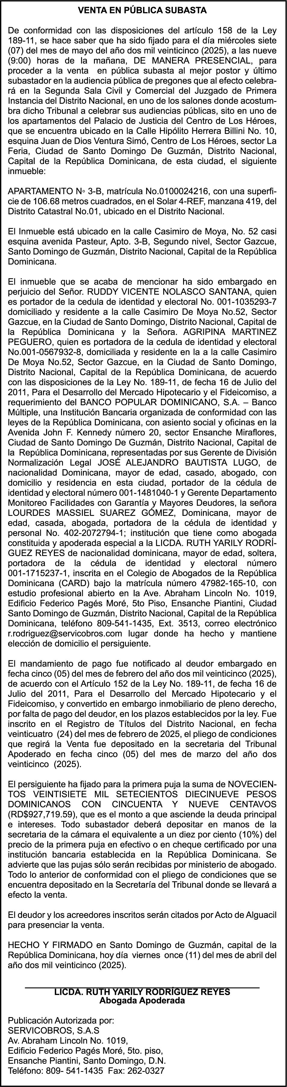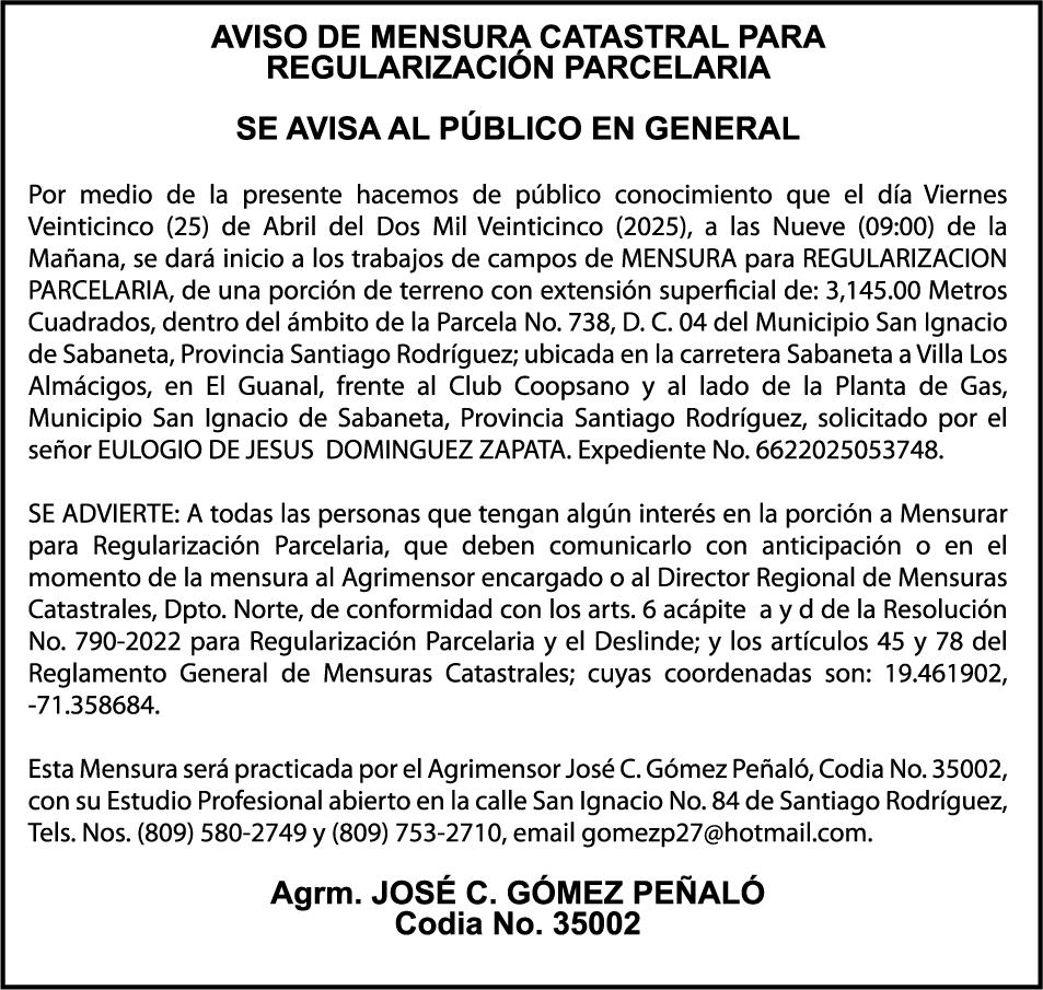 SE hace de público conocimiento la pérdida del Certificado Financiero número 836454769 emitido por Banco Popular Dominicano, S. A. Banco Múltiple, a nombre de CARLOS YSMAEL CONTRERAS ESMURDOC, portador de la Cédula de Identidad y Electoral número 001-0138768-6, certificado número 836454769 expedido en 29 de septiembre de 2023 por el monto de (US$78,012.52) más intereses generados a la fecha.