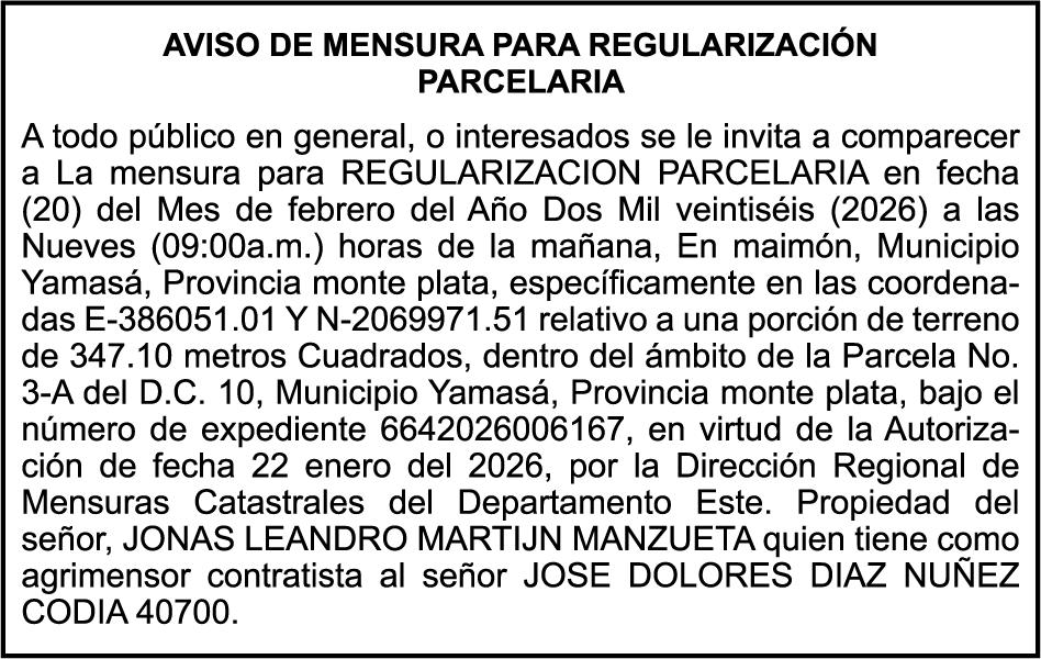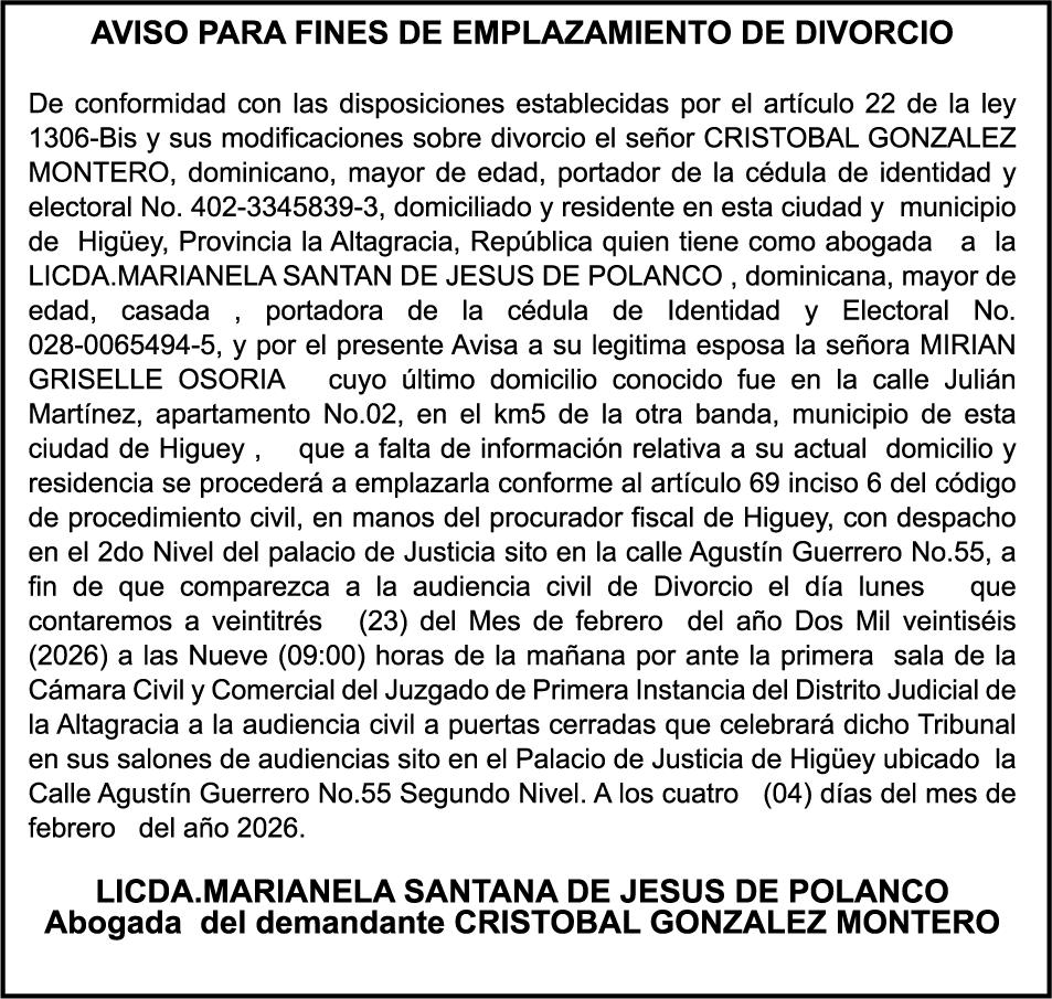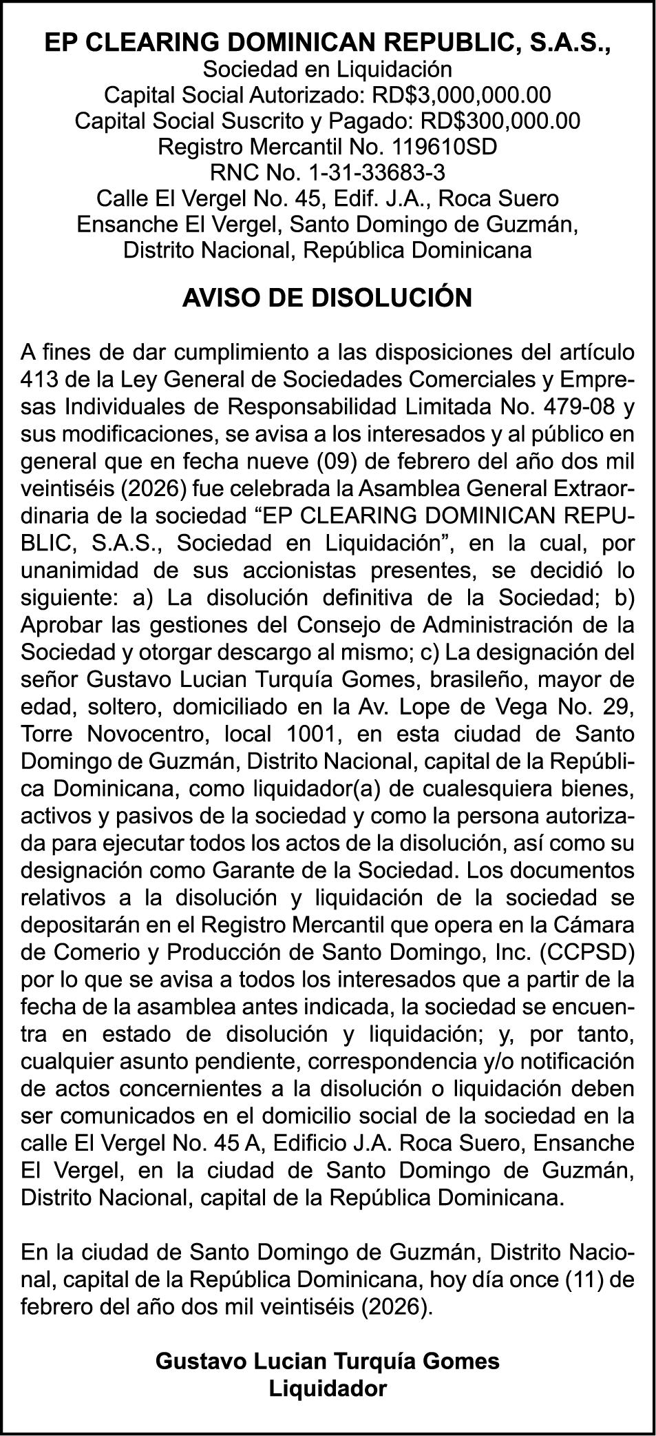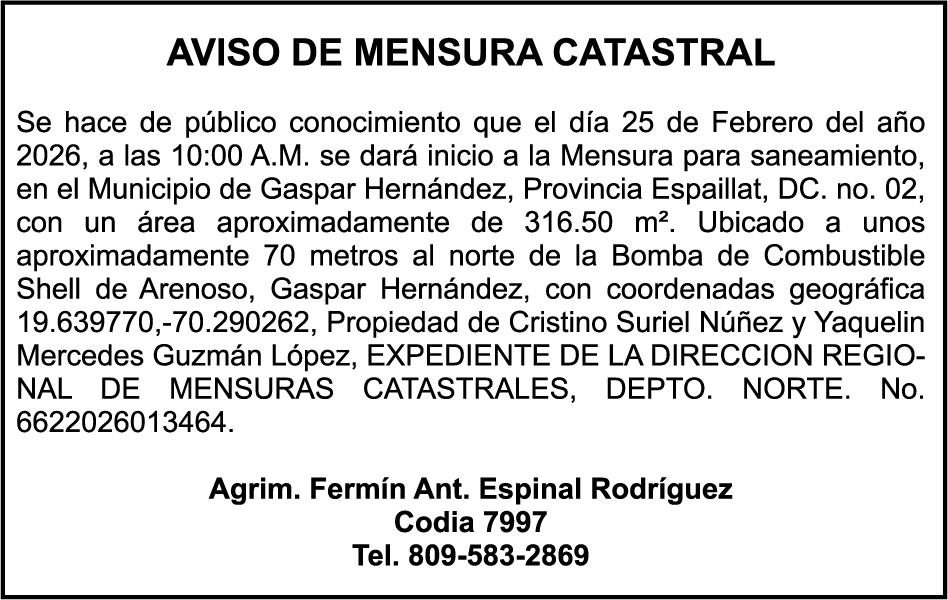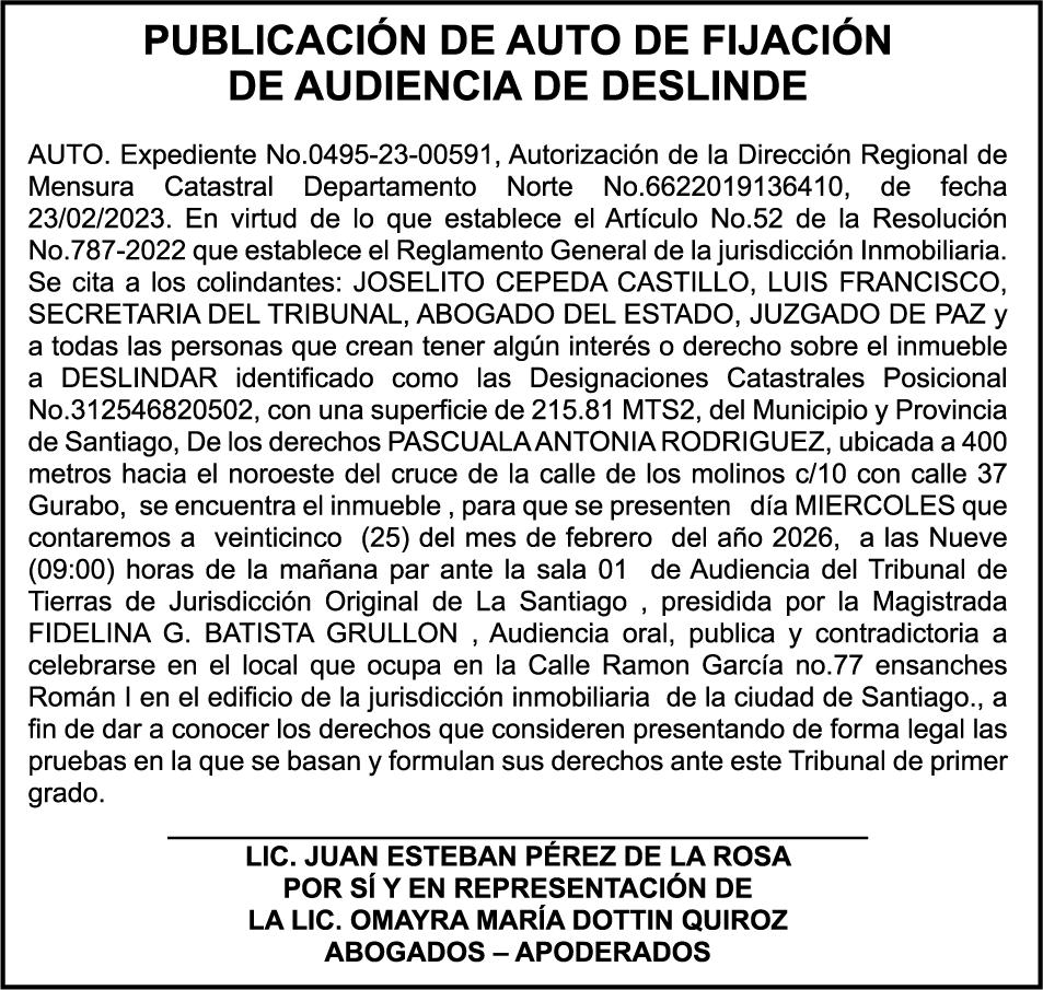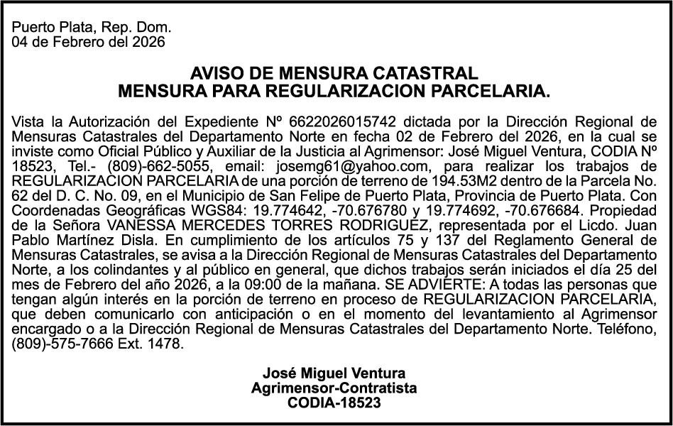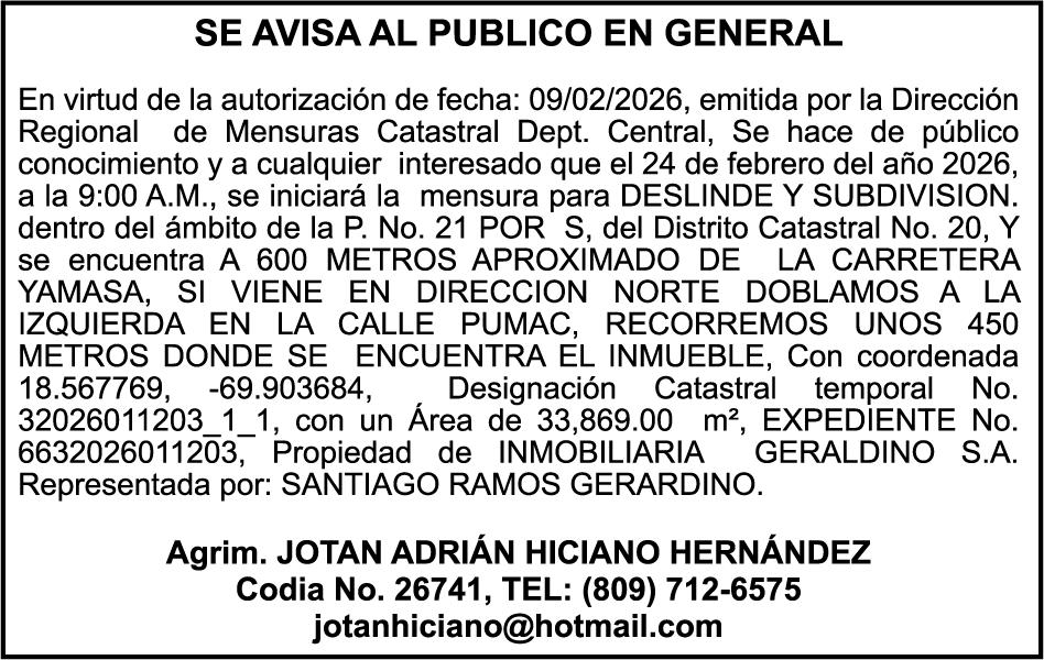 SE hace de público conocimiento la pérdida del Certificado Financiero número 850937046 emitido por Banco Popular Dominicano, S. A. Banco Múltiple, a nombre de ISIDRO ALBERTO SANTANA NUÑEZ, portador de la Cédula de Identidad y Electoral número 001-0102786-0, certificado número 850937046 expedido el 4 de agosto de 2025 por el monto de (RD$6,201,945.37) más intereses generados a la fecha.