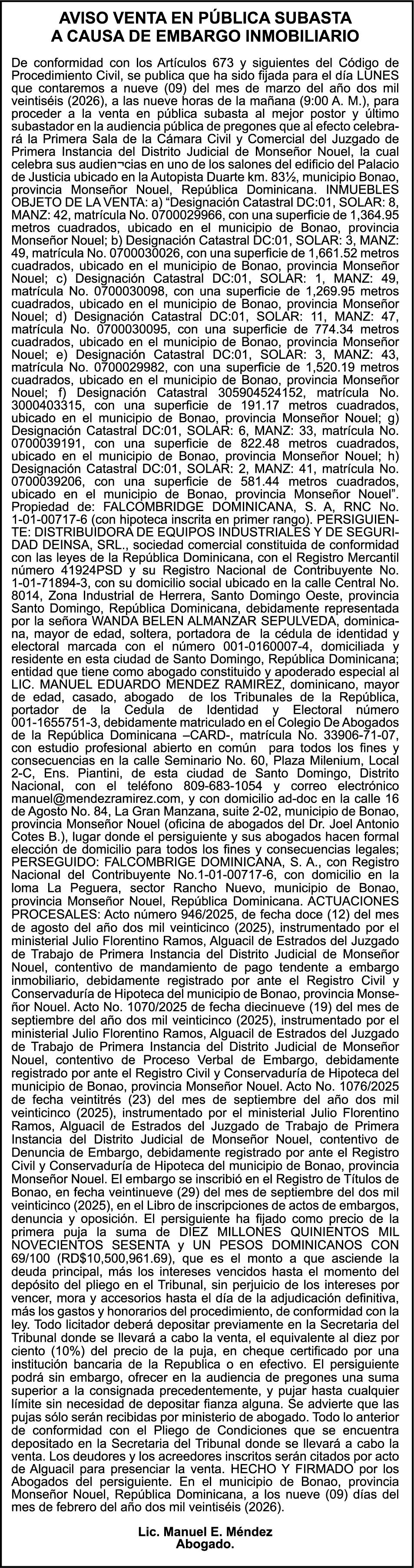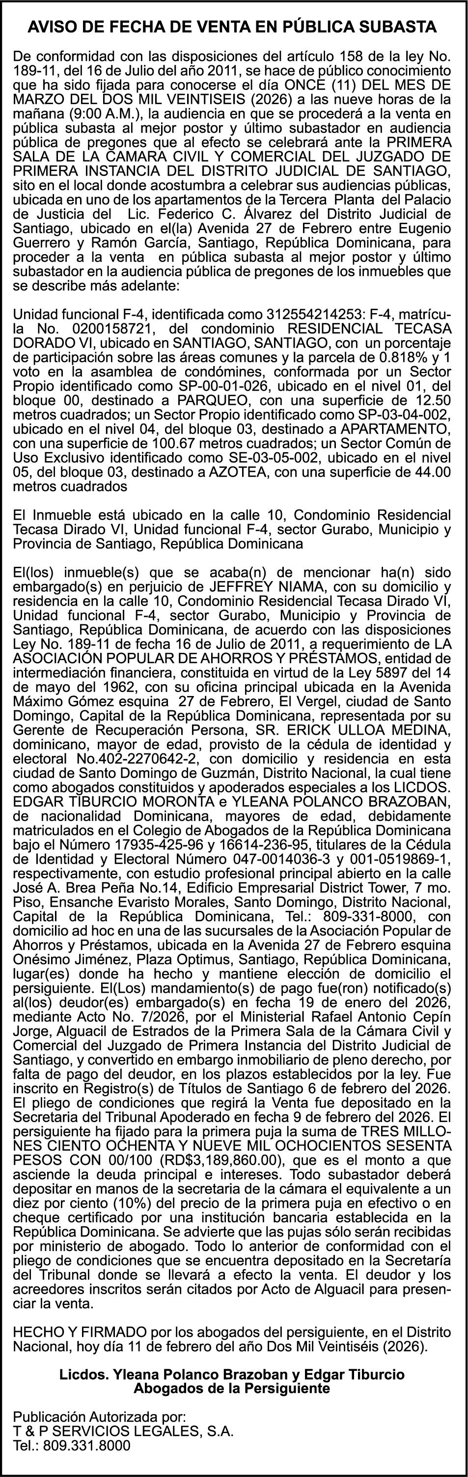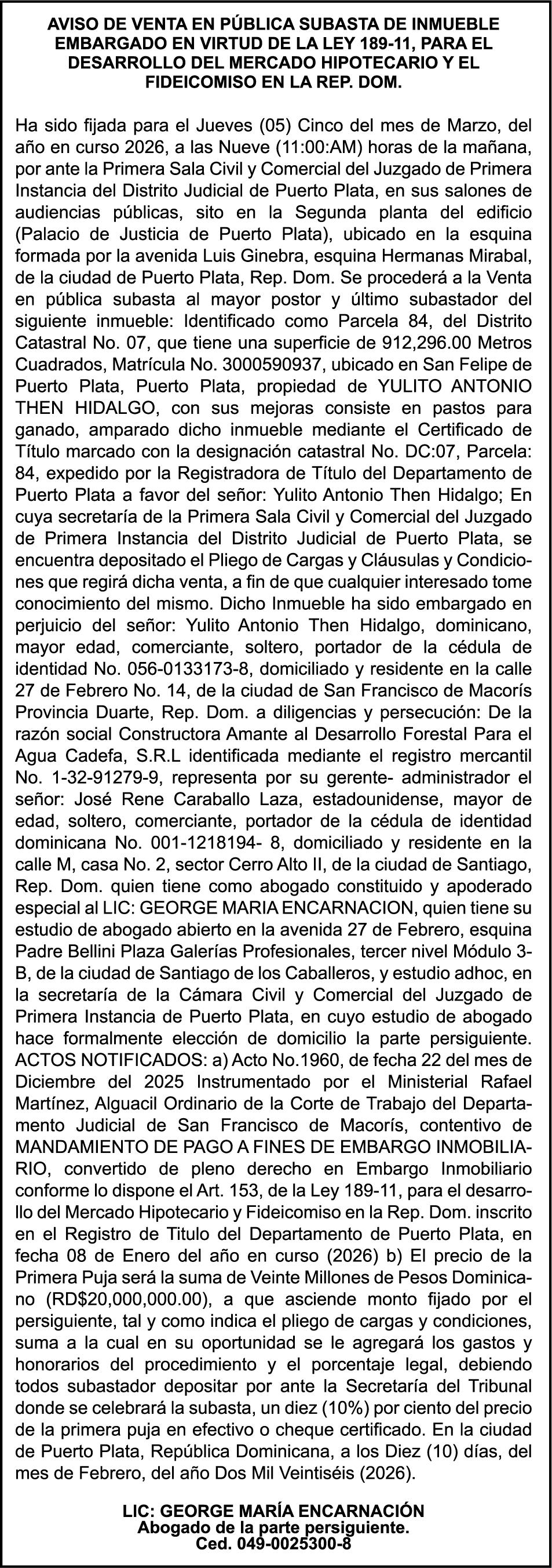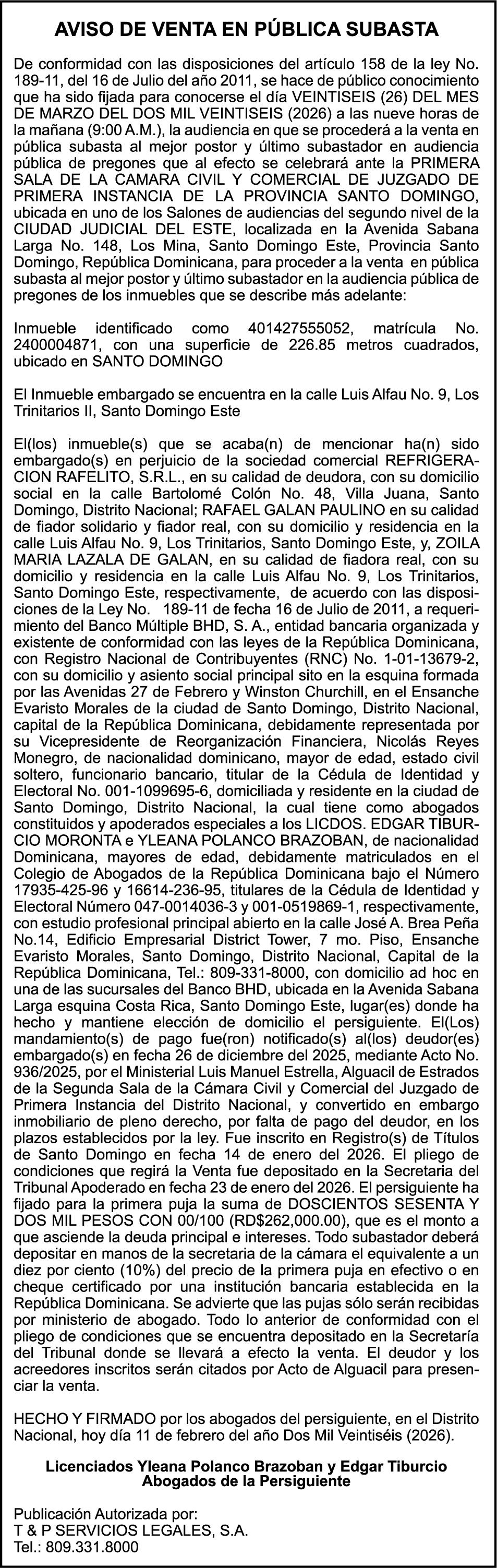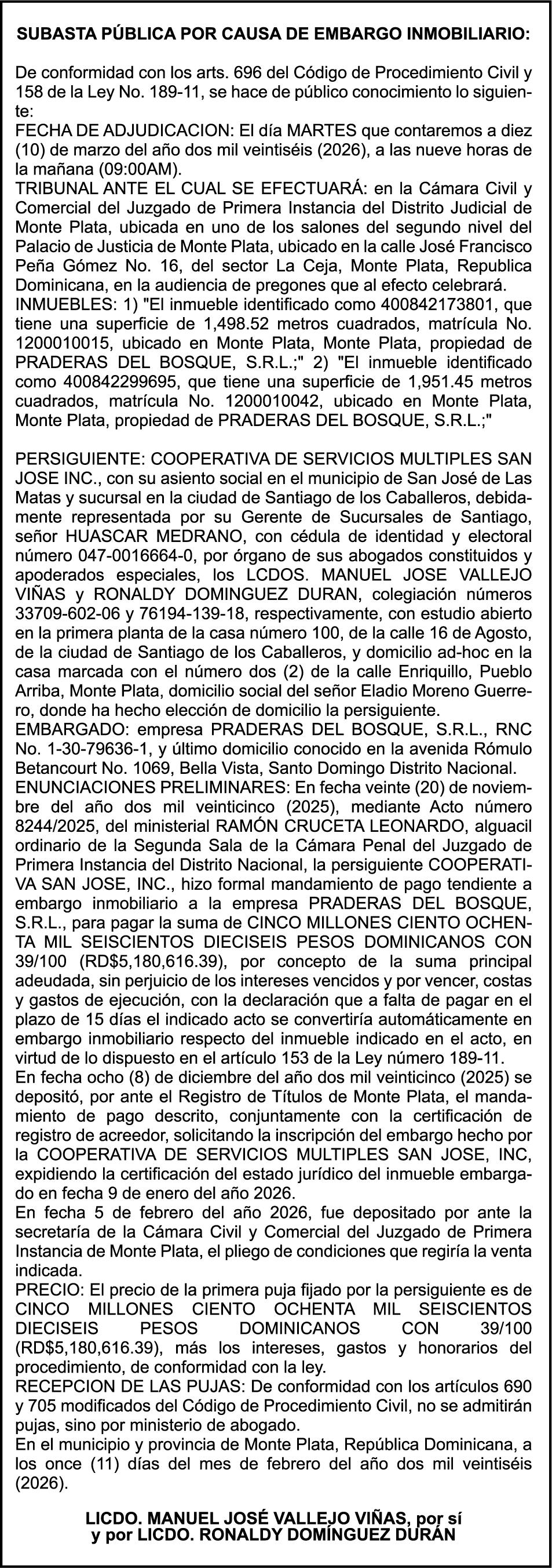 SE hace de público conocimiento la pérdida del Certificado Financiero número 850937046 emitido por Banco Popular Dominicano, S. A. Banco Múltiple, a nombre de ISIDRO ALBERTO SANTANA NUÑEZ, portador de la Cédula de Identidad y Electoral número 001-0102786-0, certificado número 850937046 expedido el 4 de agosto de 2025 por el monto de (RD$6,201,945.37) más intereses generados a la fecha.
