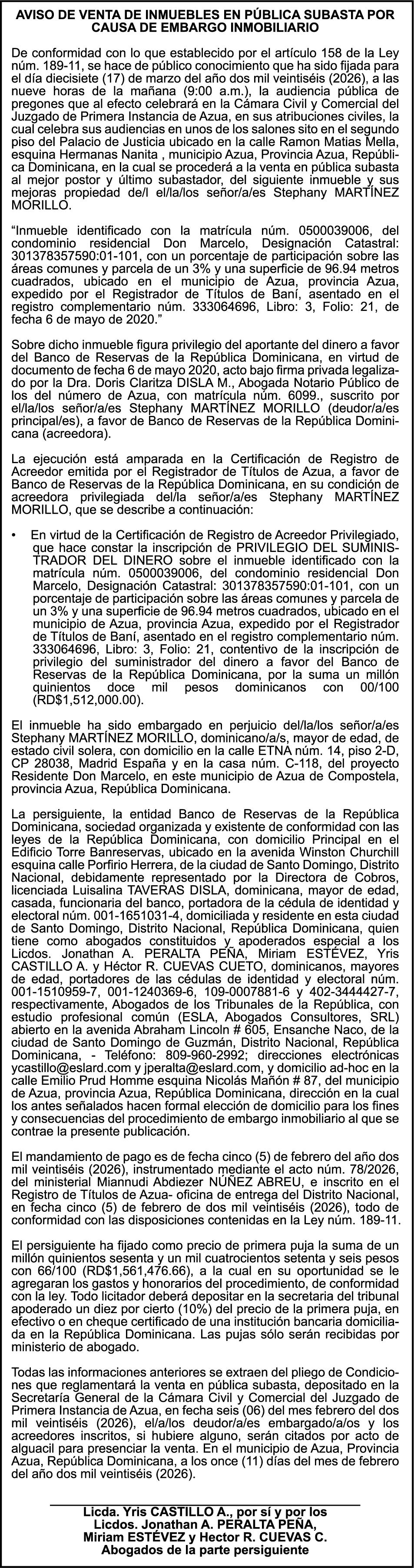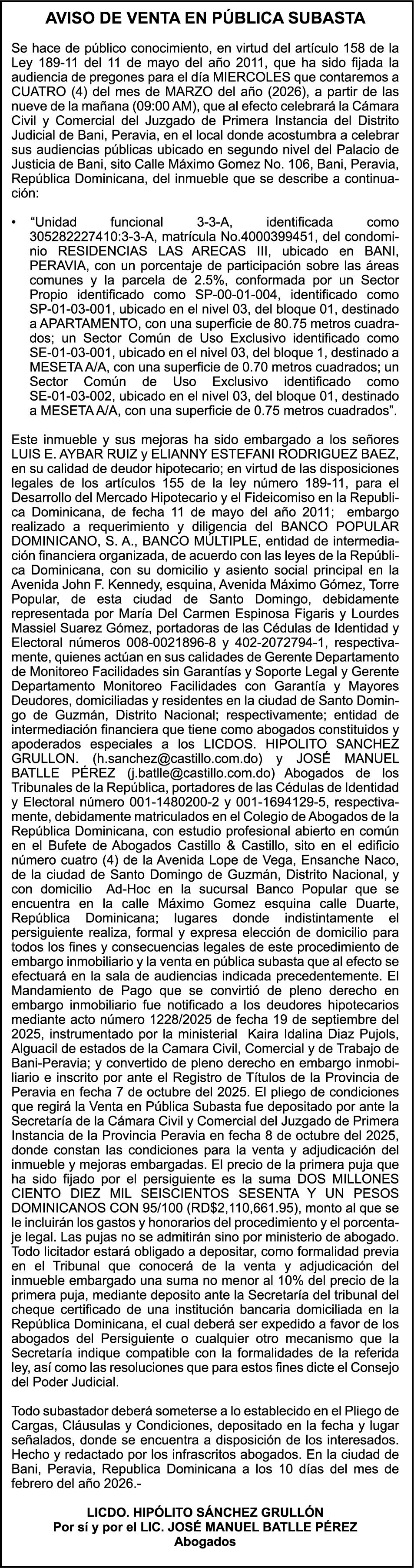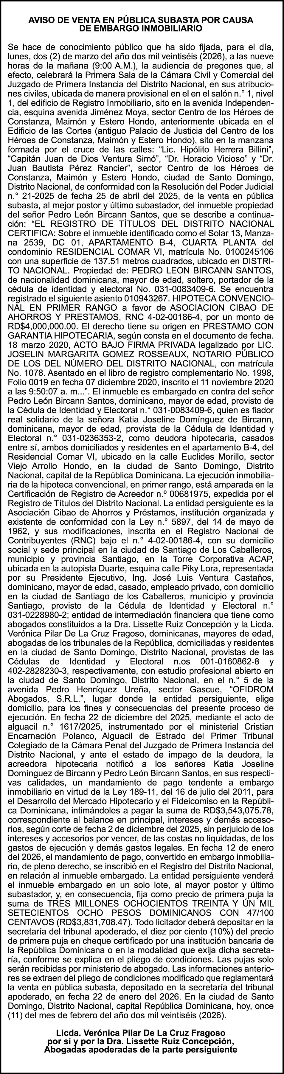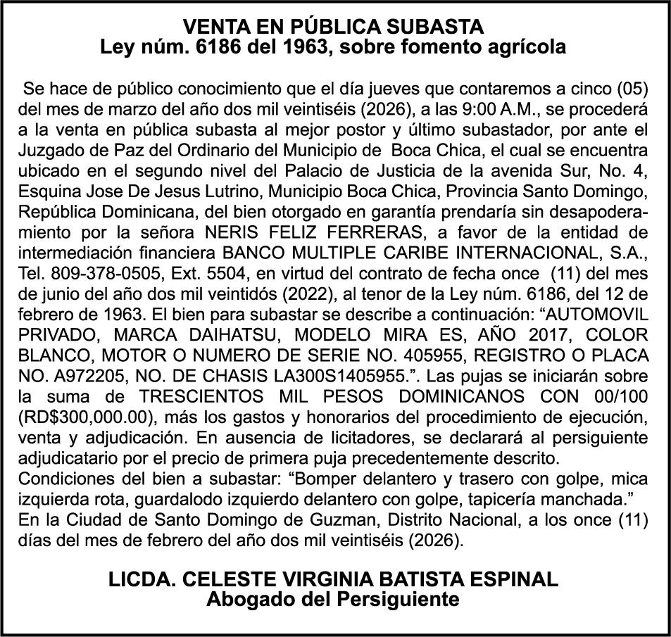 SE hace de público conocimiento la pérdida del Certificado Financiero número 852060383 emitido por Banco Popular Dominicano, S. A. Banco Múltiple, a nombre de BEATRIZ VALDEZ SUERO, portadora de la Cédula de Identidad y Electoral número 001-1382069-0, certificado número 852060383 expedido en fecha 30 de septiembre de 2025 por el monto de (RD$512,663.61) más intereses generados a la fecha.