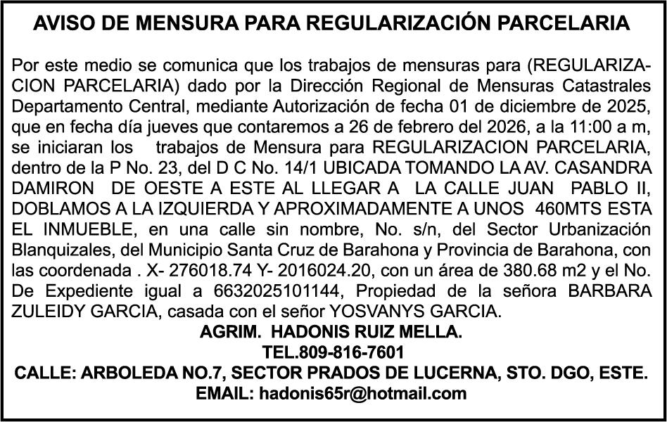 PERDIDA DE PLACA No. G792473, JEEP HYUNDAI,MODELO PALISADE AWD Color AZUL, Año 2026, Chasis KMHRH811DTU034259, a nombre de TENEDORA DESCALIA SRL PERDIDA DE PLACA No. K1994171, Motocicleta BAJAJ, moodelo PLATINA 100 ES, color NEGRO, año 2021, chasis MD2A76AY3MWC48699, a nombre de MODESTO CRUZ DELGADO, Ced. 00109526723.