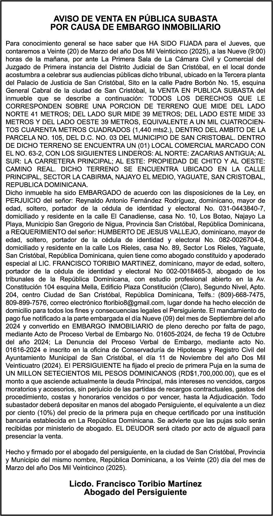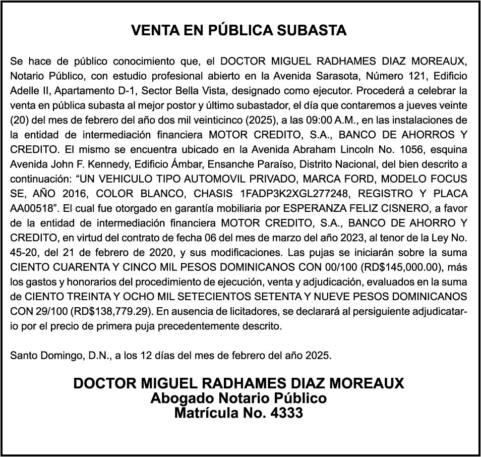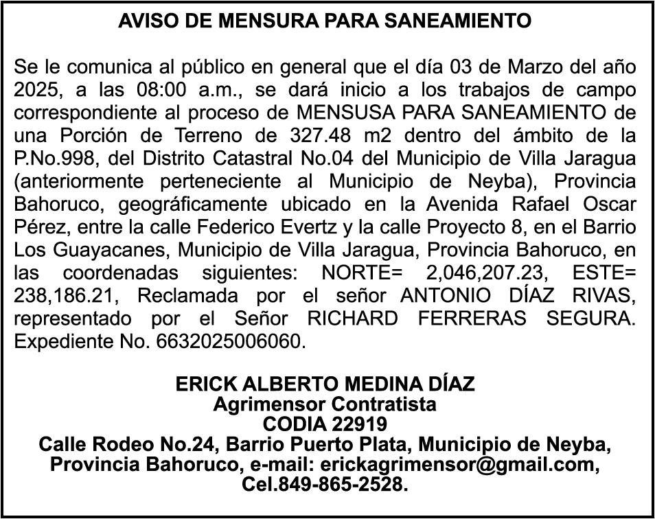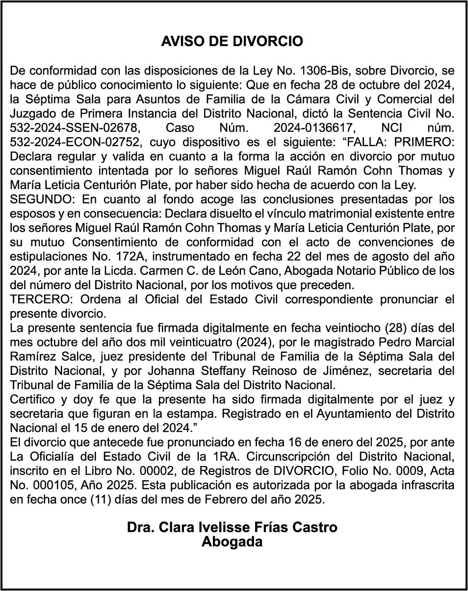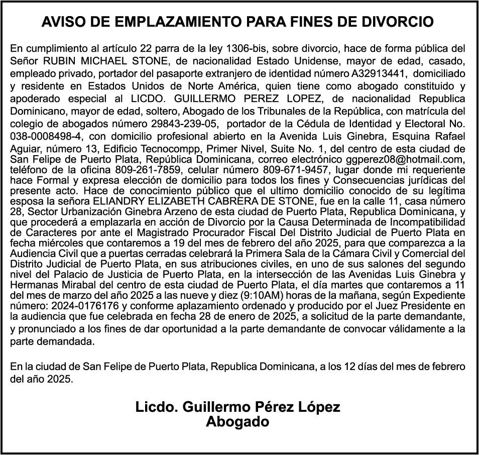 SE hace de público conocimiento la pérdida del Certificado Financiero número 844512798 emitido por Banco Popular Dominicano, S. A., a nombre de RADHAMES PANIAGUA DE LOS SANTOS, portador de la Cédula de Identidad y Electoral número 0011204481-3, certificado número 844512798 expedido en fecha 3 de octubre del 2024 por el monto de (RD$74,533.65), más intereses generados a la fecha.