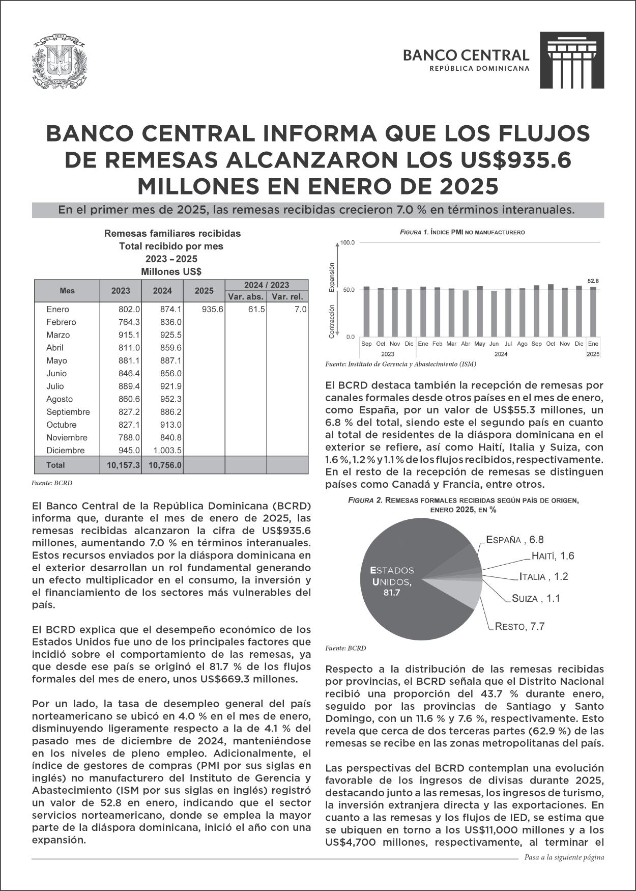 DIVISAS P.19 ma en les REMESAS INICIAN CON BUEN RITMO: US$935.6 MM EN EL MES DE ENERO