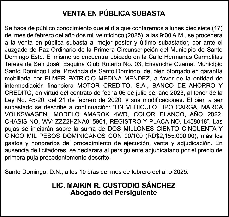 PERDIDA DE PLACA: NO.L493741, Chasis MP2TFS87JKT300060, Marca MAZDA, Modelo BT50,Color BLANCO, AÑO 2024, a nombre de CADENA DE NOTICIA TELEVISION SA, RNC 101766532