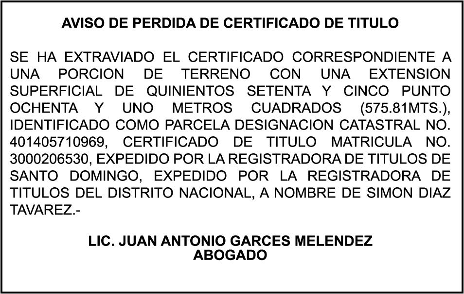 SE hace de público conocimiento la pérdida del Certificado Financiero número 808118293 emitido por Banco Popular Dominicano, S. A., a nombre de CONSEJO DE GOBERNADORES DE LOS CLUBES DE LEONES DISTRITO MULTIPLE R., (RNC 430-050318), certificado número 808118293 expedido en fecha 4 de junio del 2018 por el monto de (RD$200,209.00), más intereses generados a la fecha.