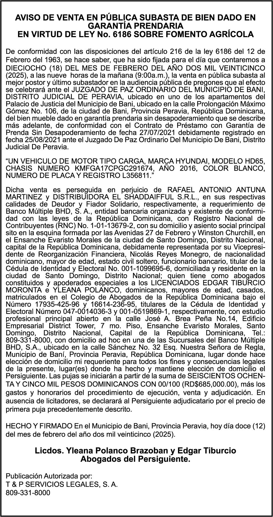 PERDIDA DE PLACA No. L222332, Veh. CARGA DAIHATSU, Modelo V119LWY, Color ROJO, Año 1994, Chasis V11903328, a nombre de ANIBAL ALEJANDRO LAUREANO DOMINGUEZ.