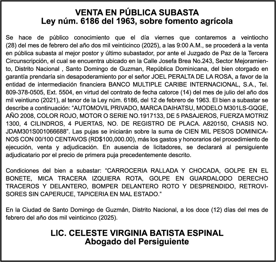 PERDIDA DE PLACA No. L253178, Veh. CARGA DAIHATSU, Modelo HIJET, Color BLANCO, Año 2002, Chasis S210P0003542, a nombre de SANTANA ROSA JOAQUIN.