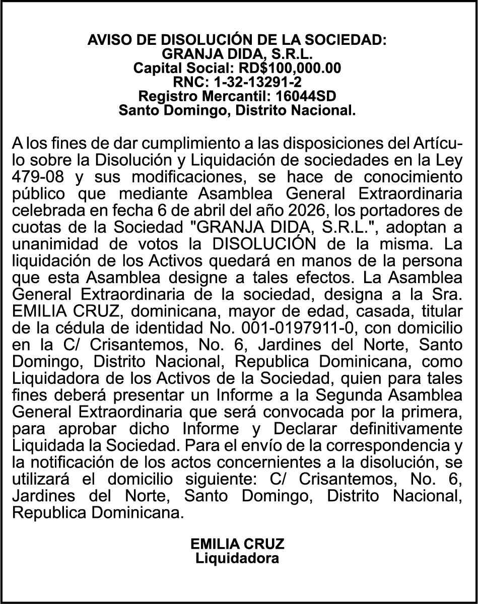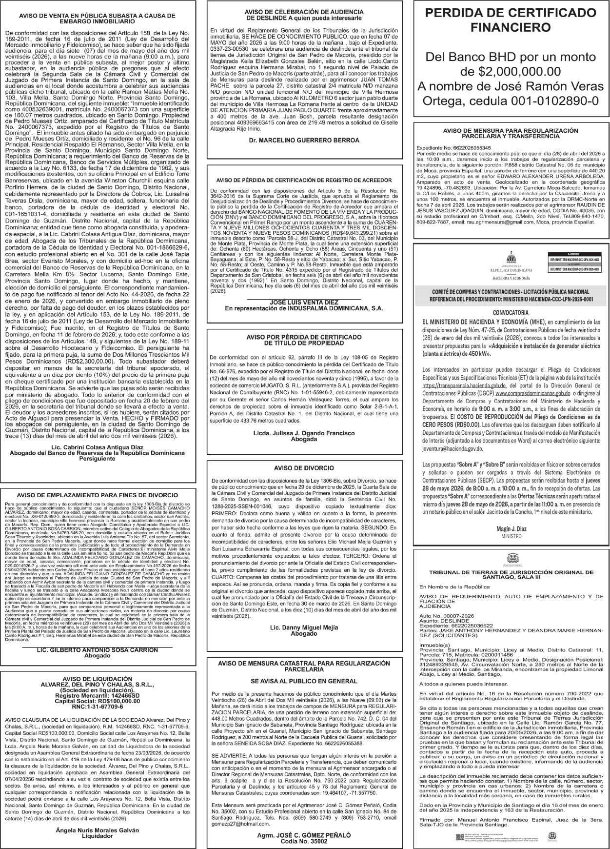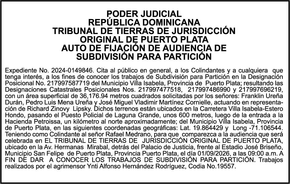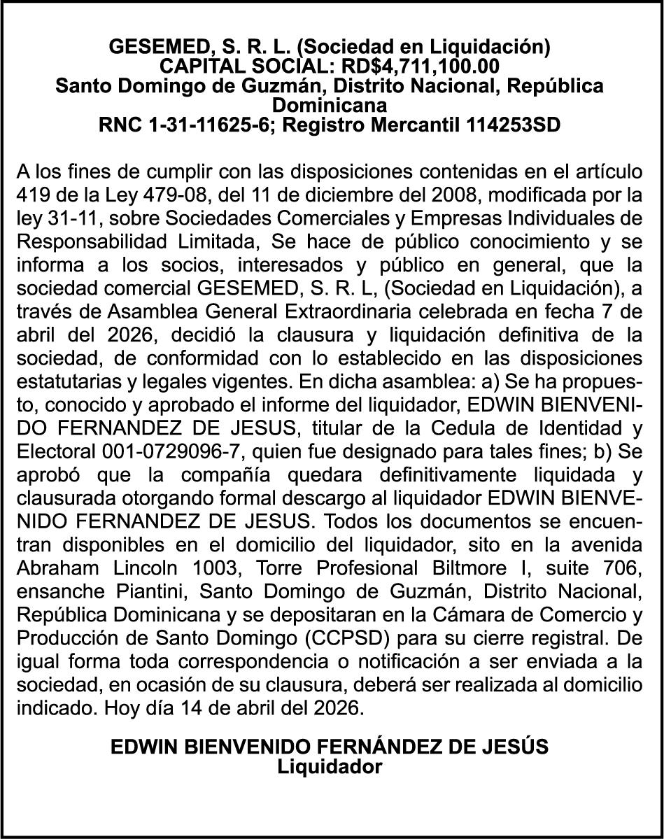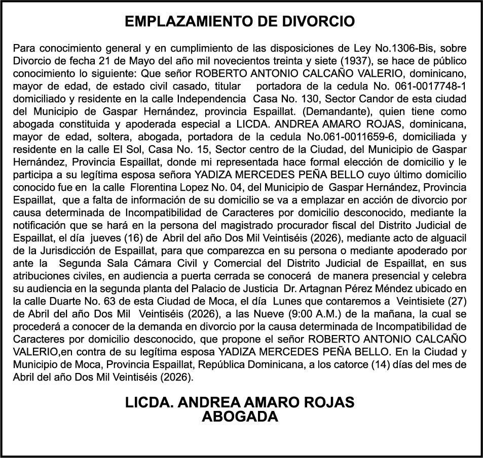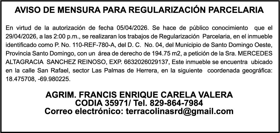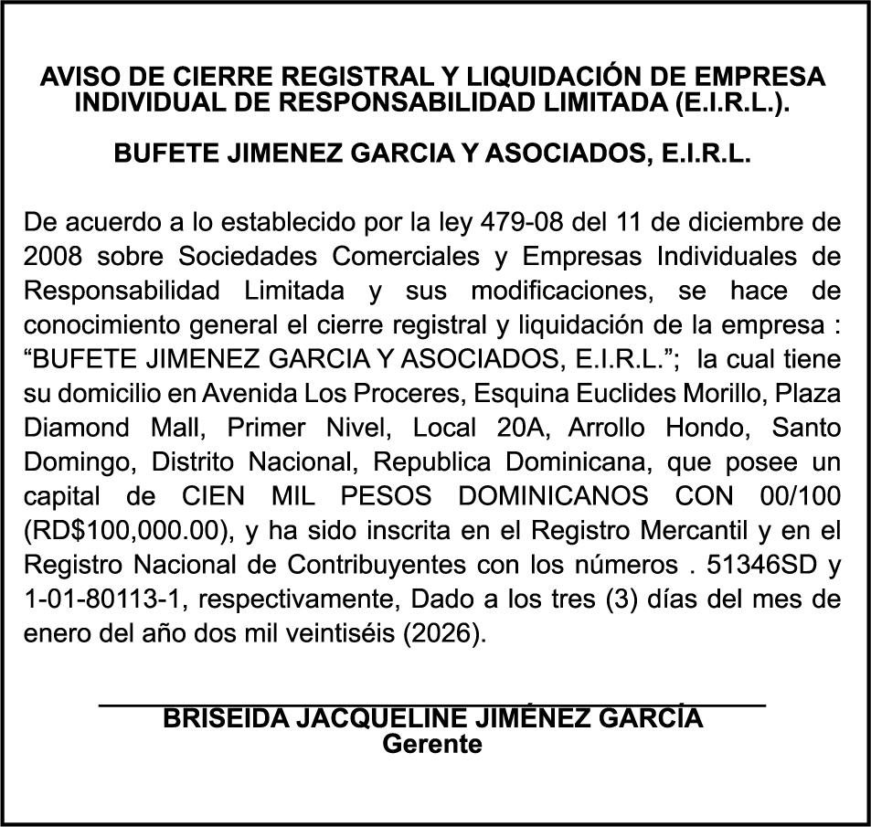 SE HACE de público conocimiento la pérdida del Certificado Financiero número 850227810 emitido por Banco Popular Dominicano, S. A. Banco Múltiple, a nombre de ALBIERIS MIGUEL GRULLON VALERIO, portador de la Cédula de Identidad y Electoral número 402-3855170-5, certificado número 850227810 expedido el 1 de julio de 2025 por el monto de (RD$52,157.22) más intereses generados a la fecha.