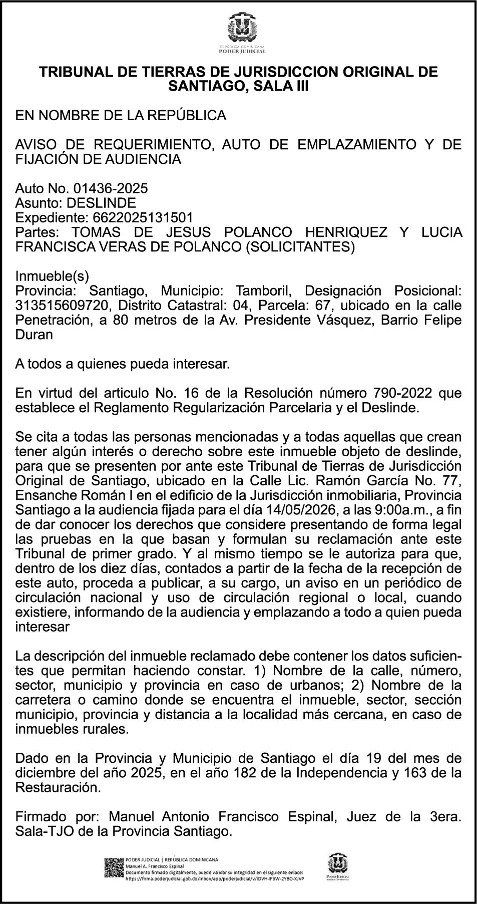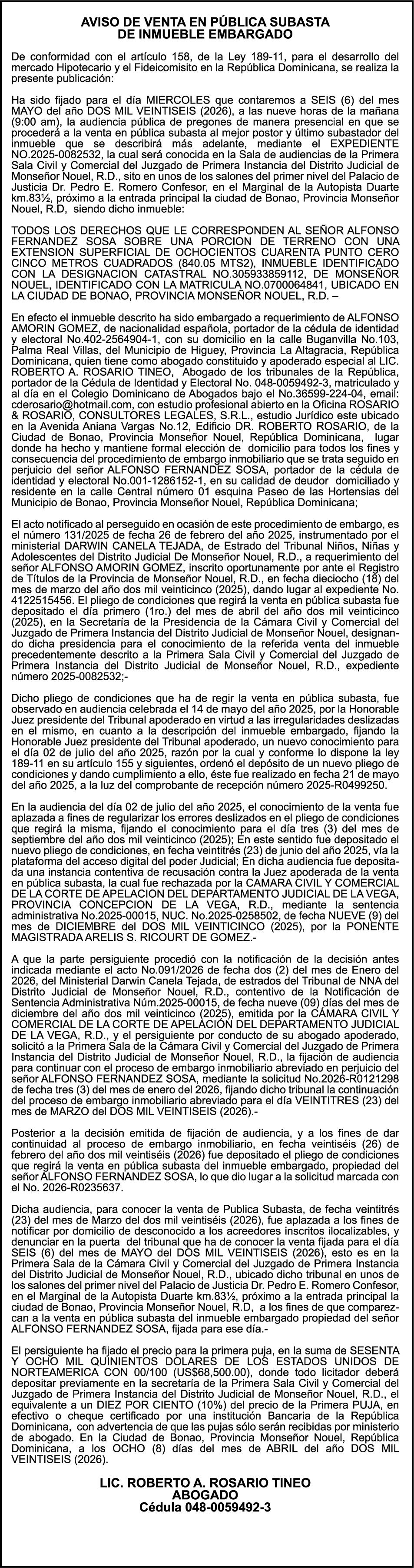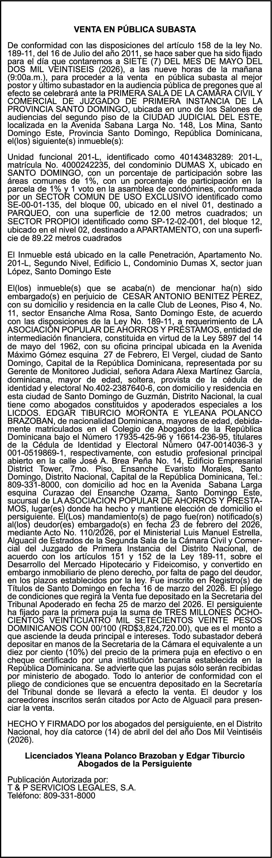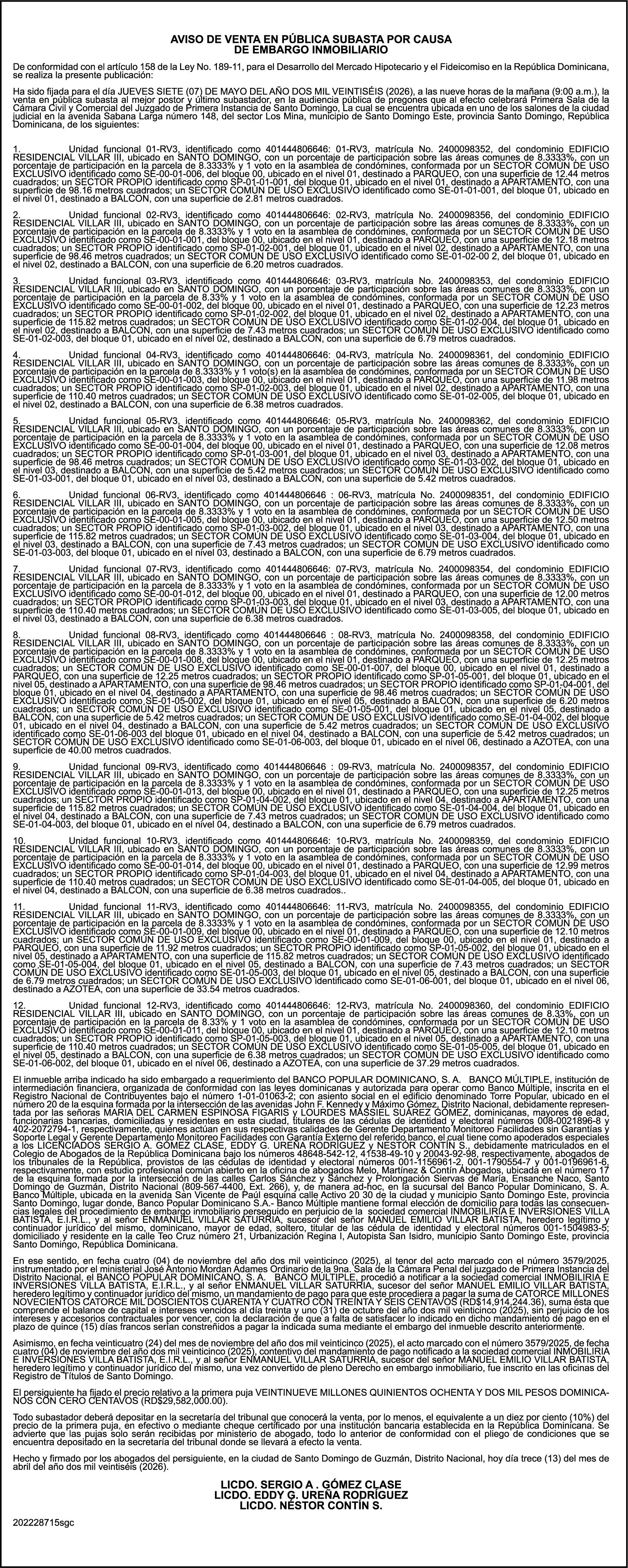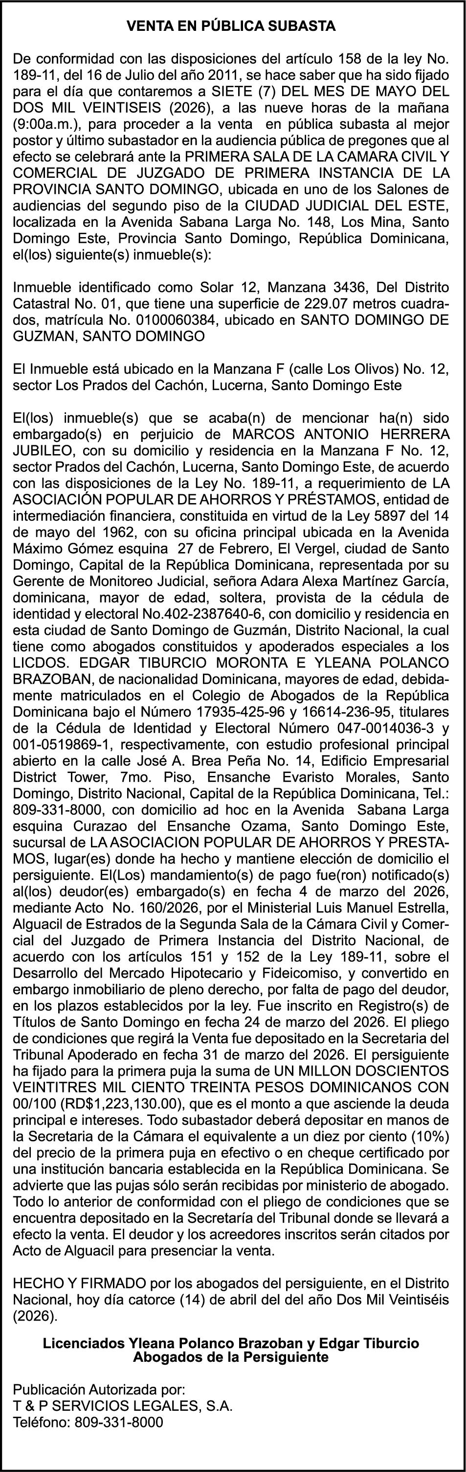 SE HACE de público conocimiento la pérdida del Certificado Financiero número 850227810 emitido por Banco Popular Dominicano, S. A. Banco Múltiple, a nombre de ALBIERIS MIGUEL GRULLON VALERIO, portador de la Cédula de Identidad y Electoral número 402-3855170-5, certificado número 850227810 expedido el 1 de julio de 2025 por el monto de (RD$52,157.22) más intereses generados a la fecha.
