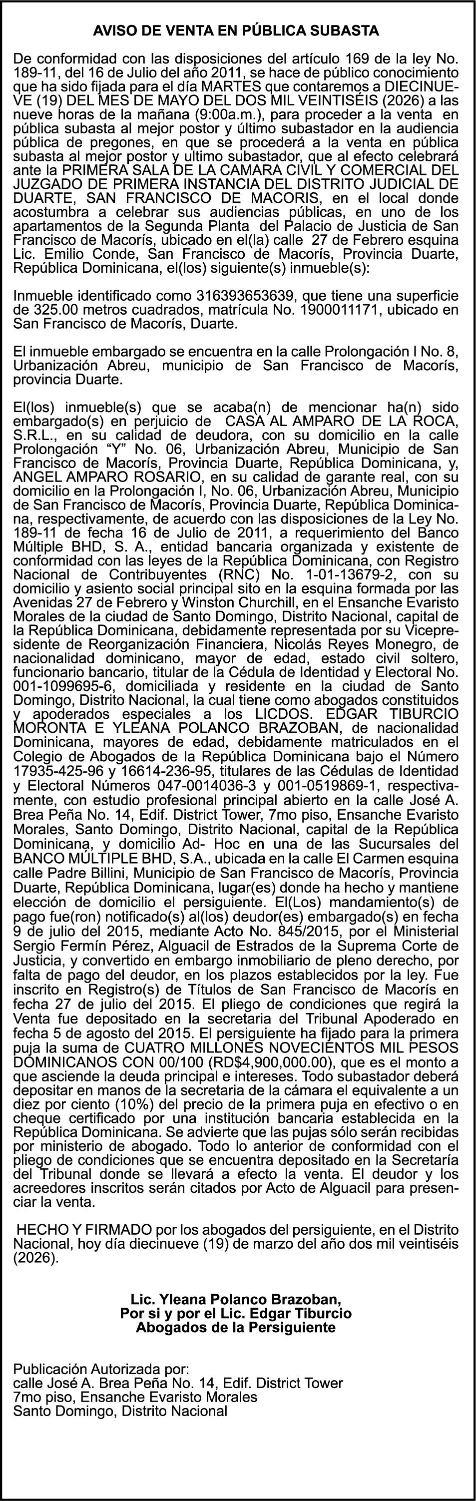 Sánchez, Puerto Plata y Espaillat, entre otras provincias.