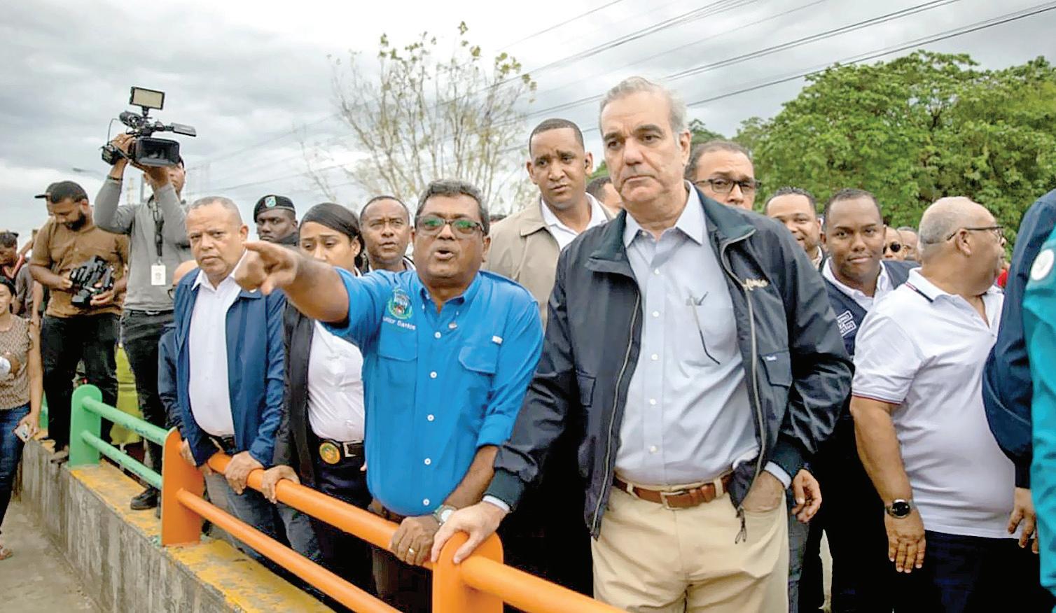 El presidente Luis Abinader supervisa las zonas afectadas por las intensas lluvias en Los Alcarrizos. F.