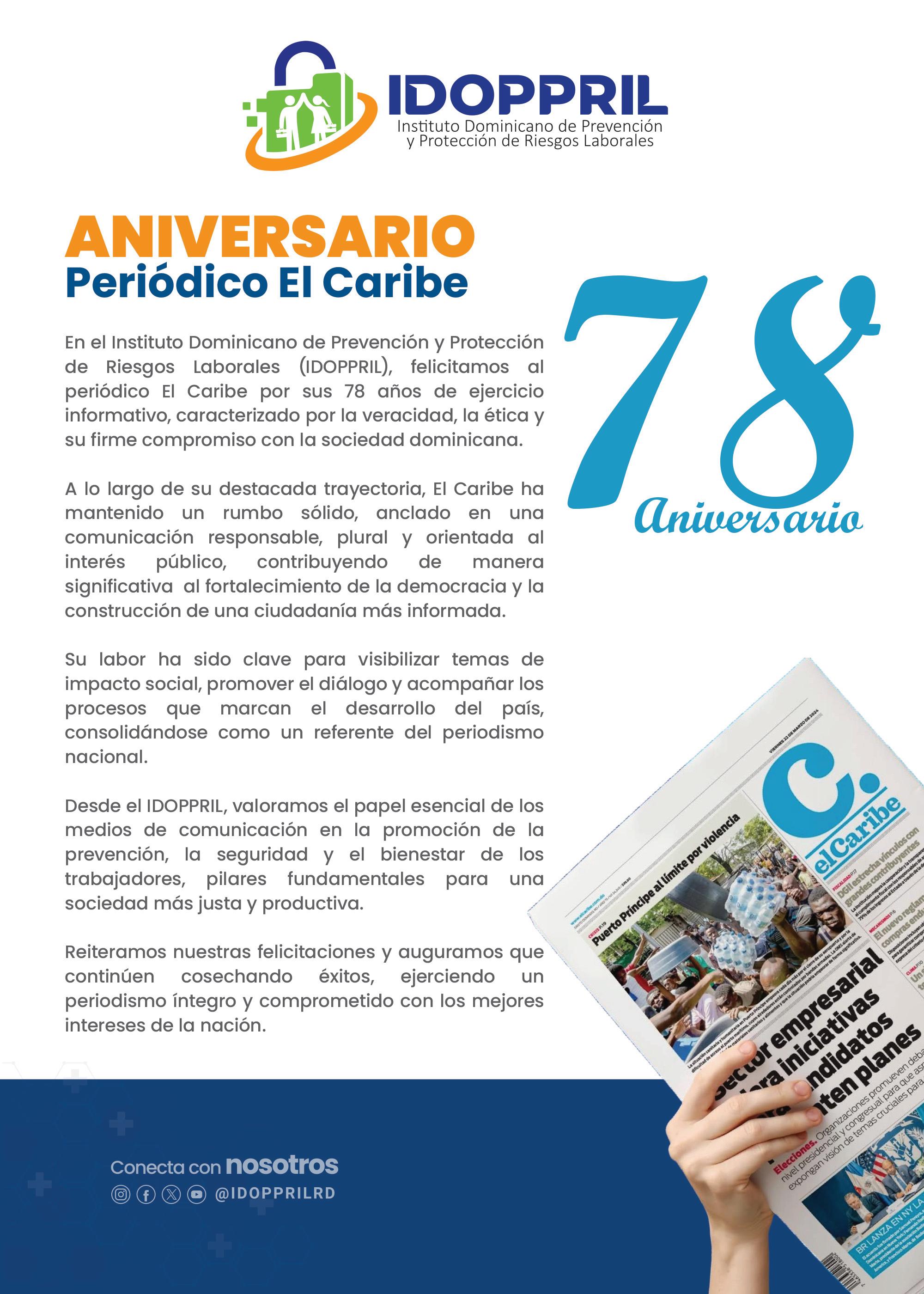 14 de abril de 1948. Stanley Ross fundó el periódico El Caribe, revolucionando la prensa dominicana. Surgió durante la dictadura de Trujillo, introduciendo tecnologías de impresión y un estilo periodístico moderno y se consolidó como una institución informativa clave. Hoy en día pertenece a Multimedios del Caribe.