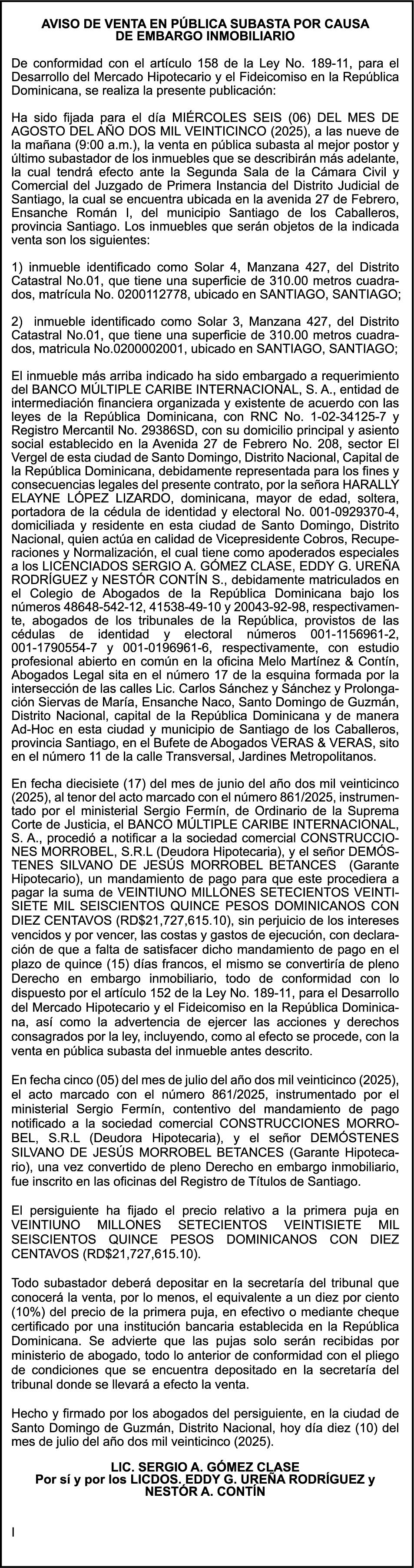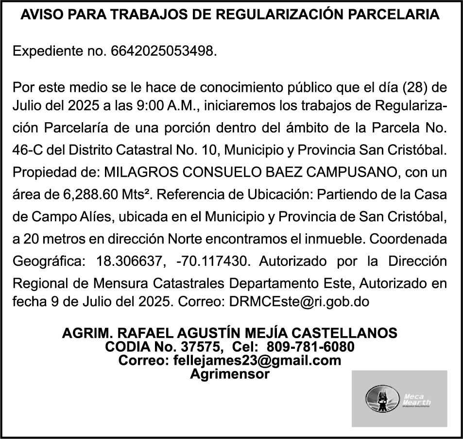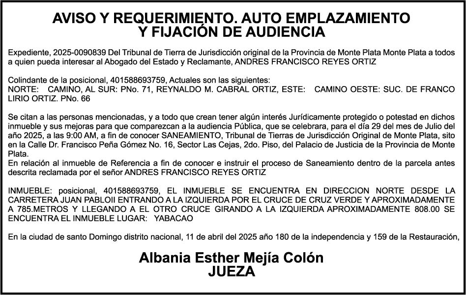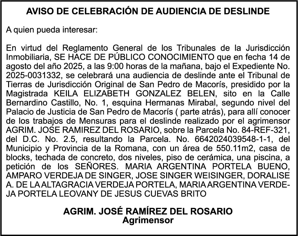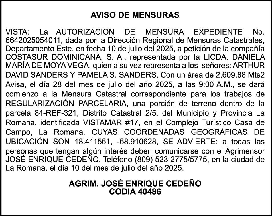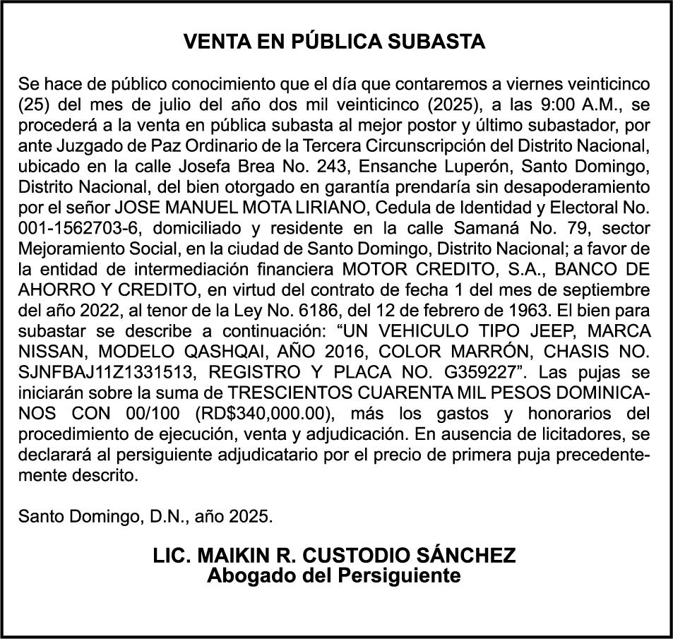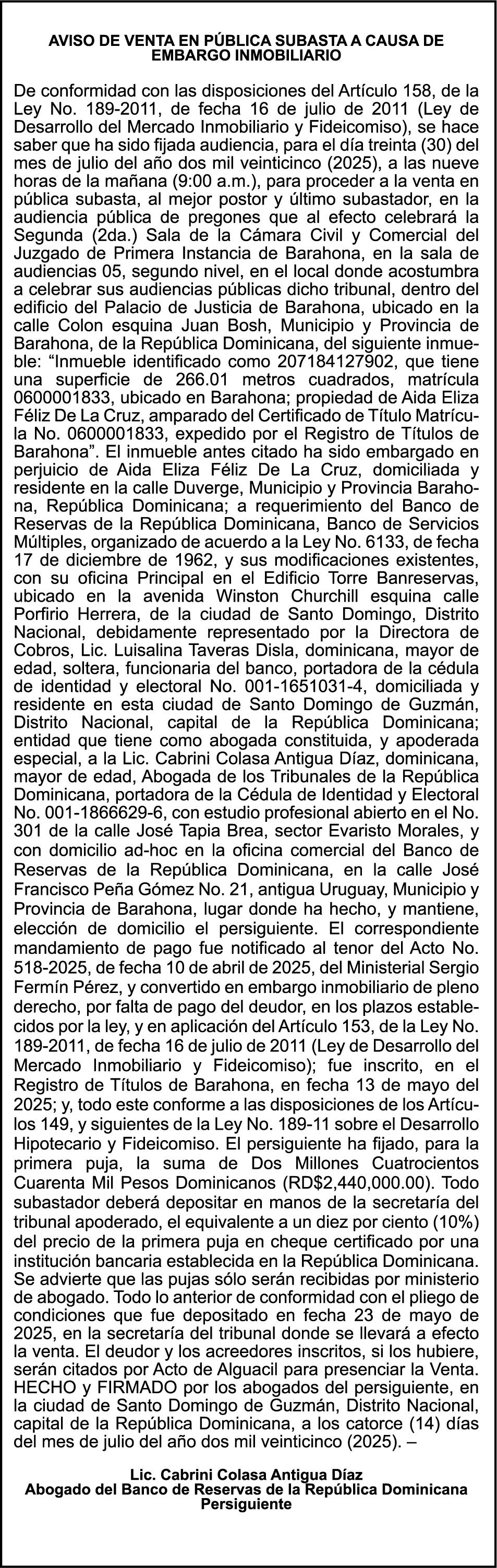 SE hace de público conocimiento la pérdida del Certificado Financiero número 846169670 emitido por Banco Popular Dominicano, S. A. Banco Múltiple, a nombre de LIA ALEXANDRA VILLAR HERNANDEZ, portadora de la Cédula de Identidad y Electoral número 402-1242480-4, certificado número 846169670 expedido en fecha 23 de diciembre de 2024 por el monto de (RD$294,630.45) más intereses generados a la fecha.
