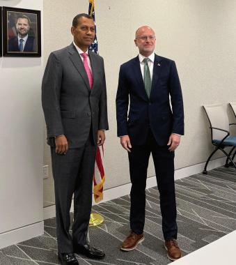 TECNOLOGÍA. El presidente del Indotel, Guido Gómez Mazara sostuvo en encuentro con Brendan Carr, presidente de la Comisión de Telecomunicaciones del gobierno estadounidense donde conversaron sobre el sector.