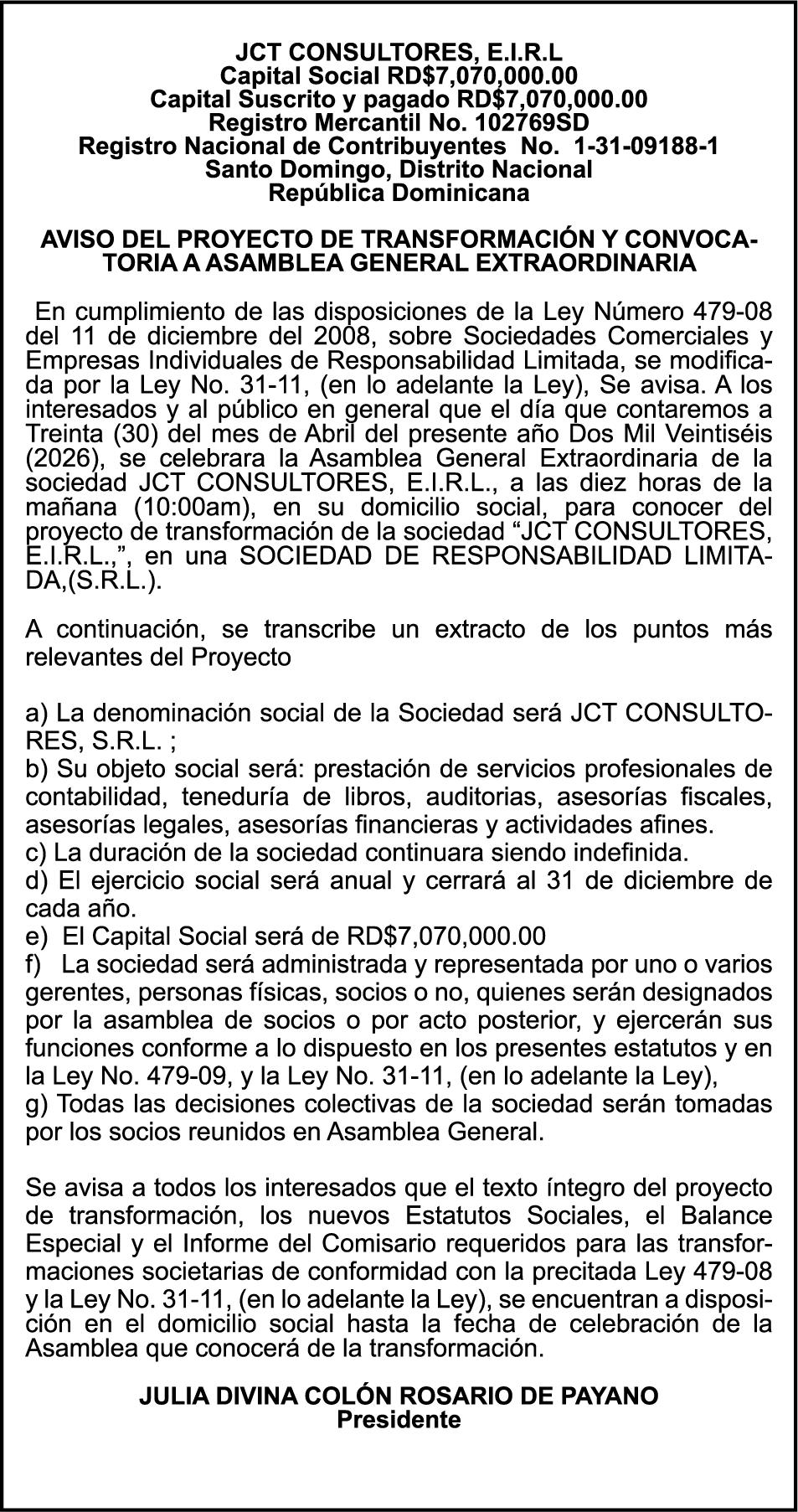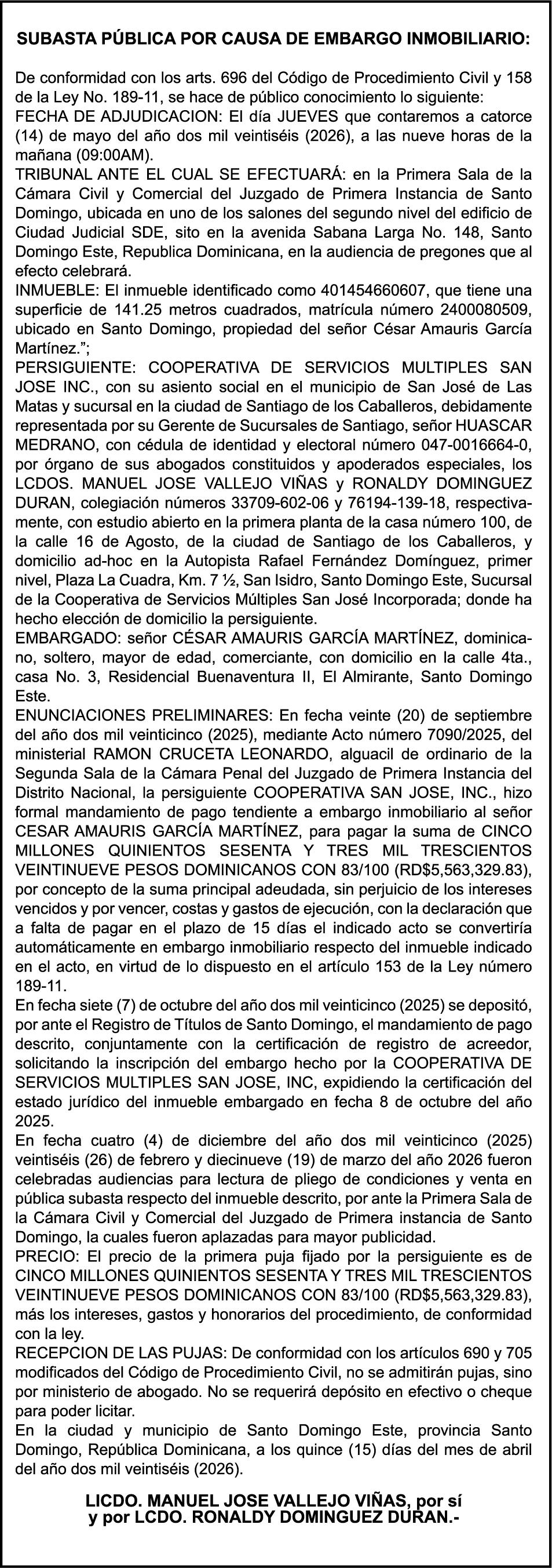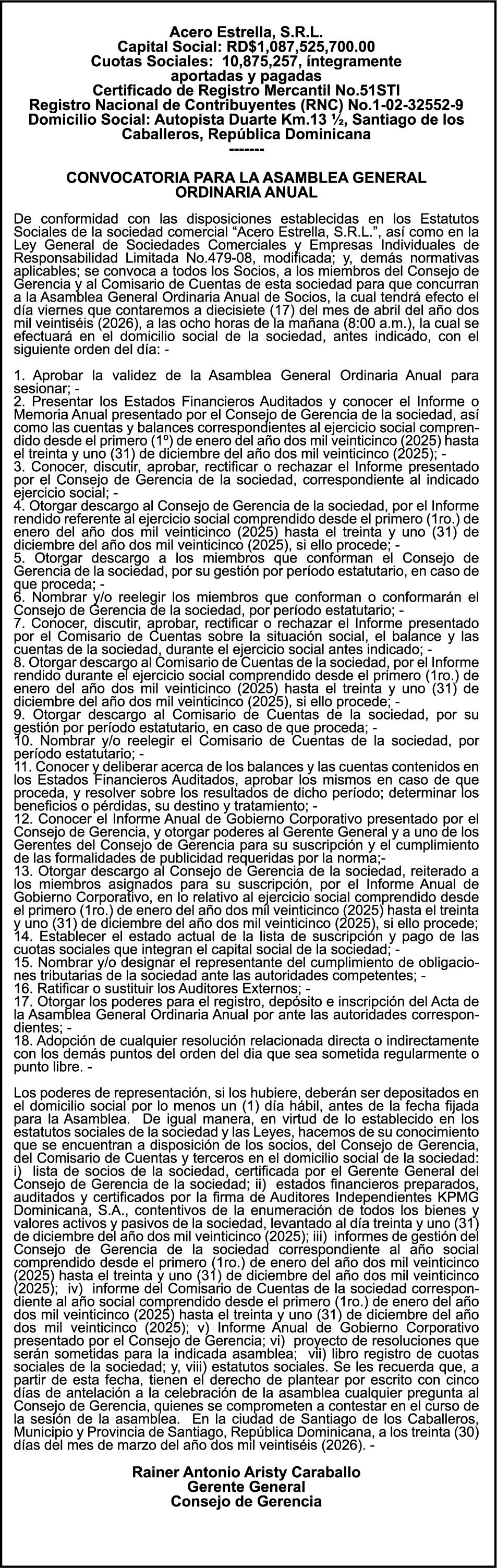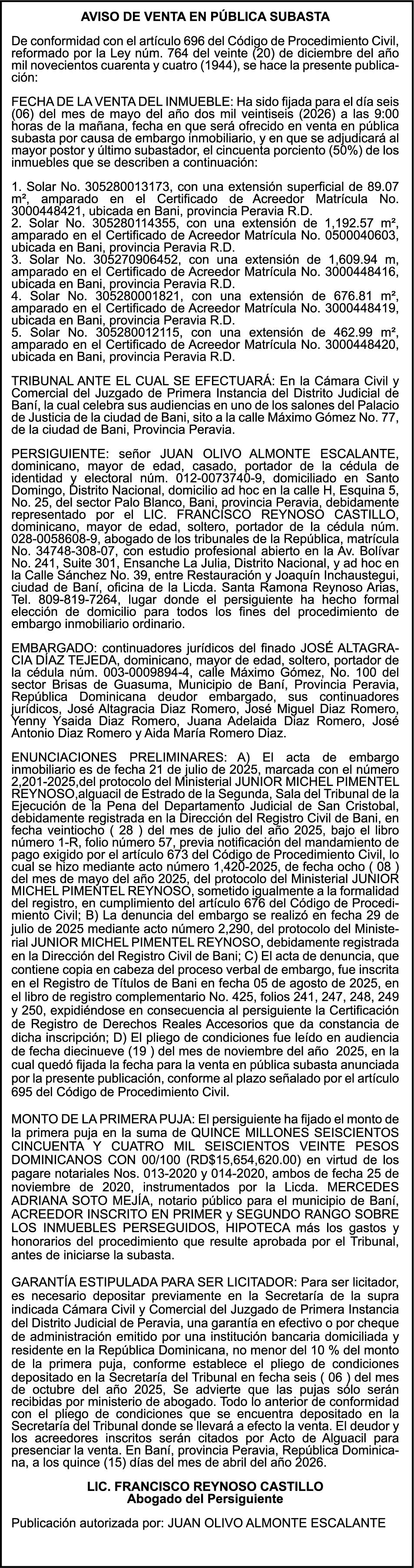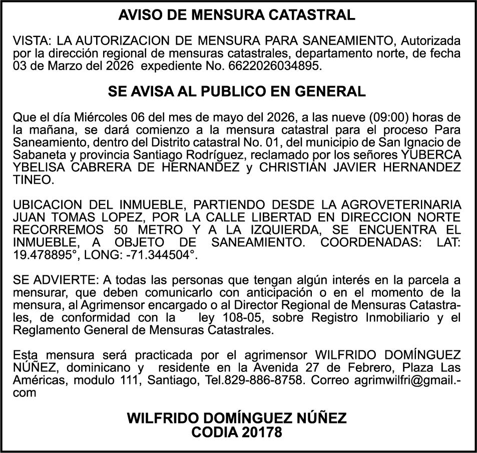 SE HACE de público conocimiento la pérdida del Certificado Financiero número 850227810 emitido por Banco Popular Dominicano, S. A. Banco Múltiple, a nombre de ALBIERIS MIGUEL GRULLON VALERIO, portador de la Cédula de Identidad y Electoral número 402-3855170-5, certificado número 850227810 expedido el 1 de julio de 2025 por el monto de (RD$52,157.22) más intereses generados a la fecha.