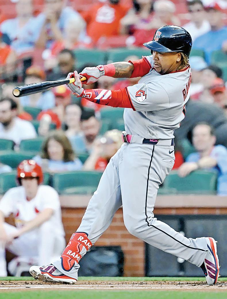 El dominicano José Ramírez conectó un jonrón en la primera entrada contra Michael McGreevy, el 288 de su carrera en las Grandes Ligas, para superar a Bernie Williams y Bobby Bonilla, quienes ocupaban en solitario el undécimo lugar entre los batea-