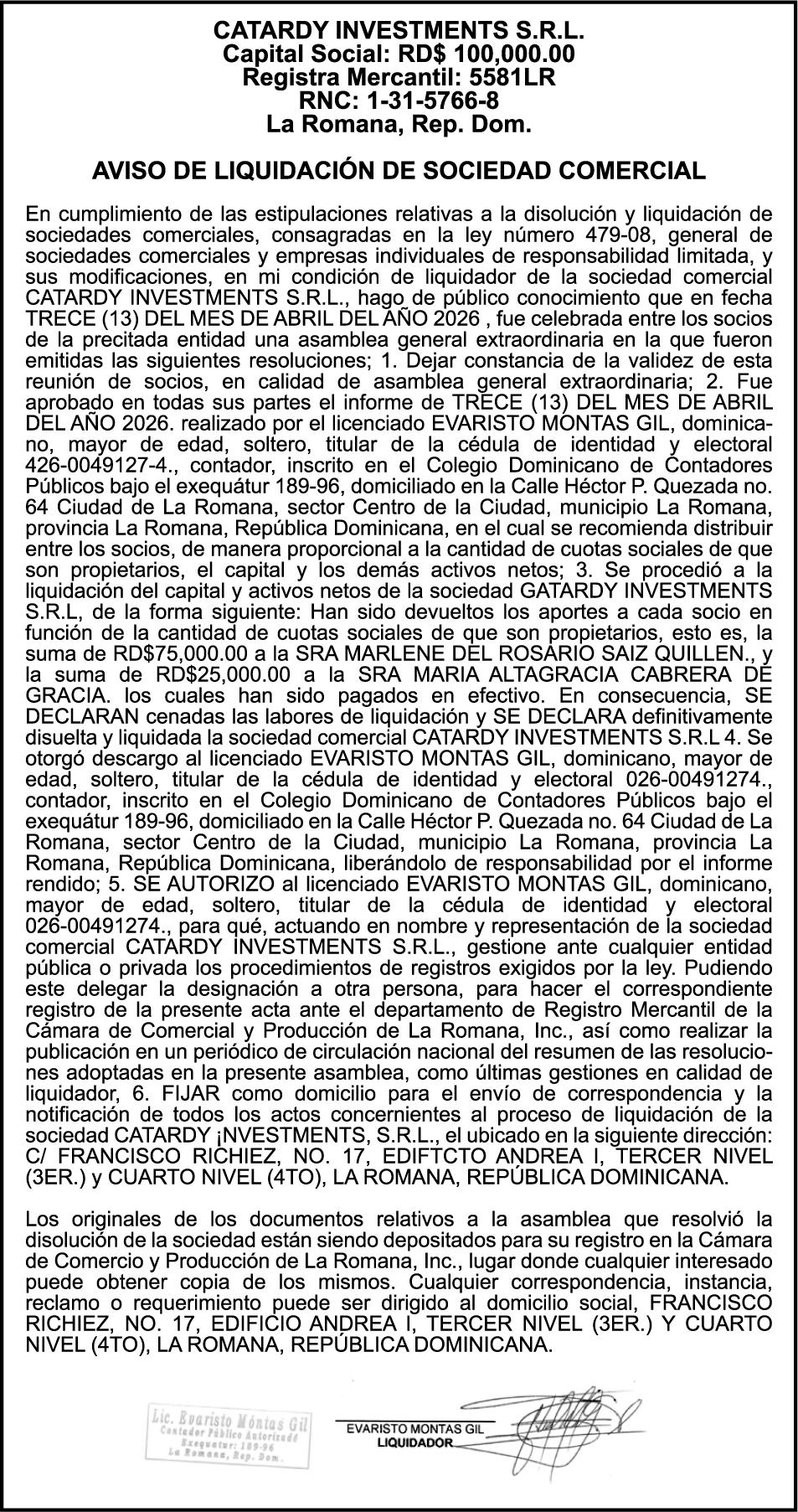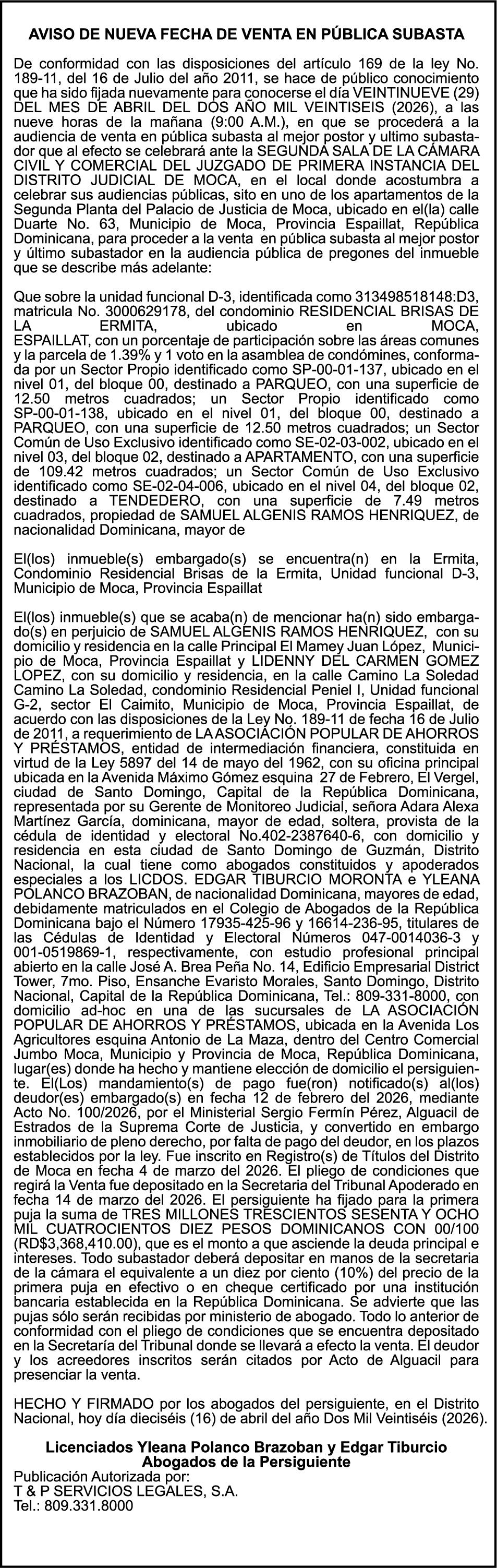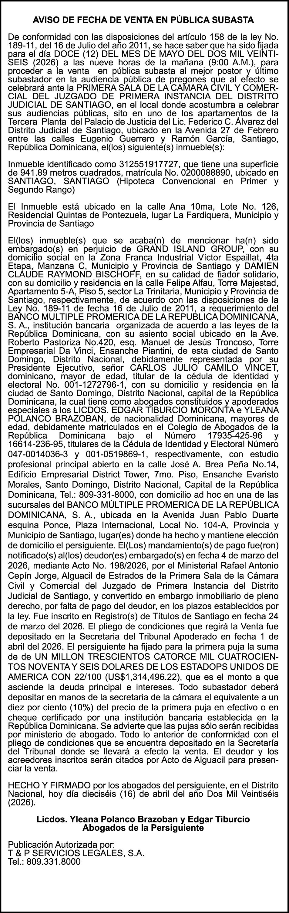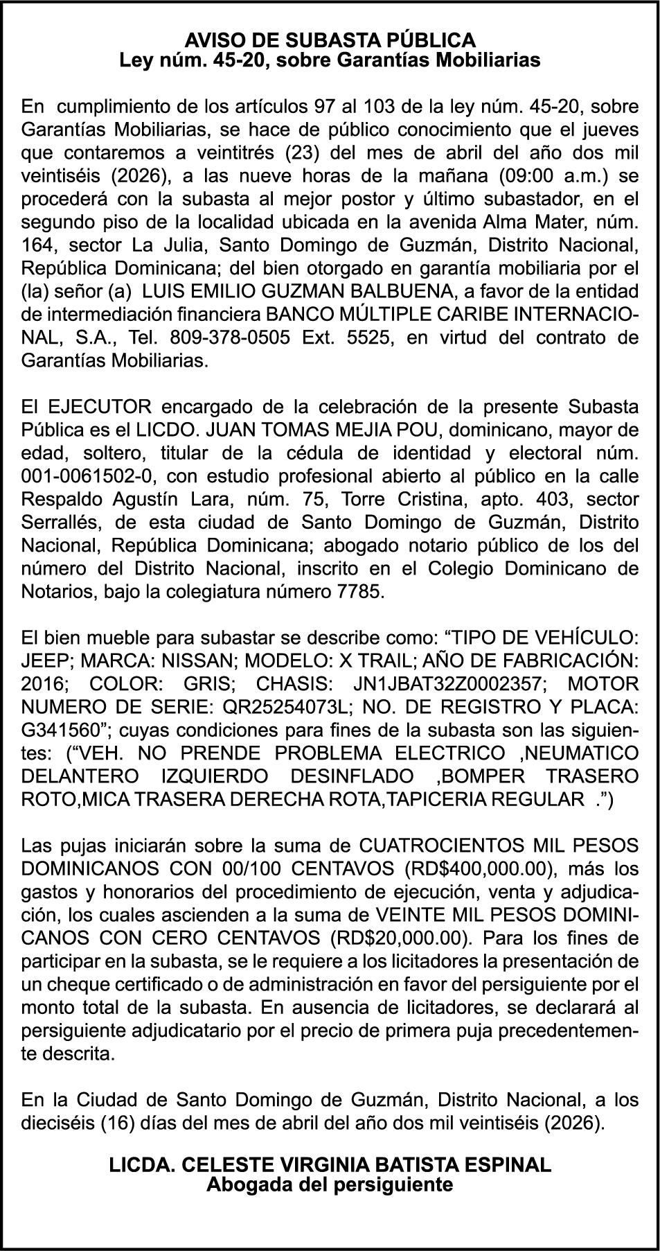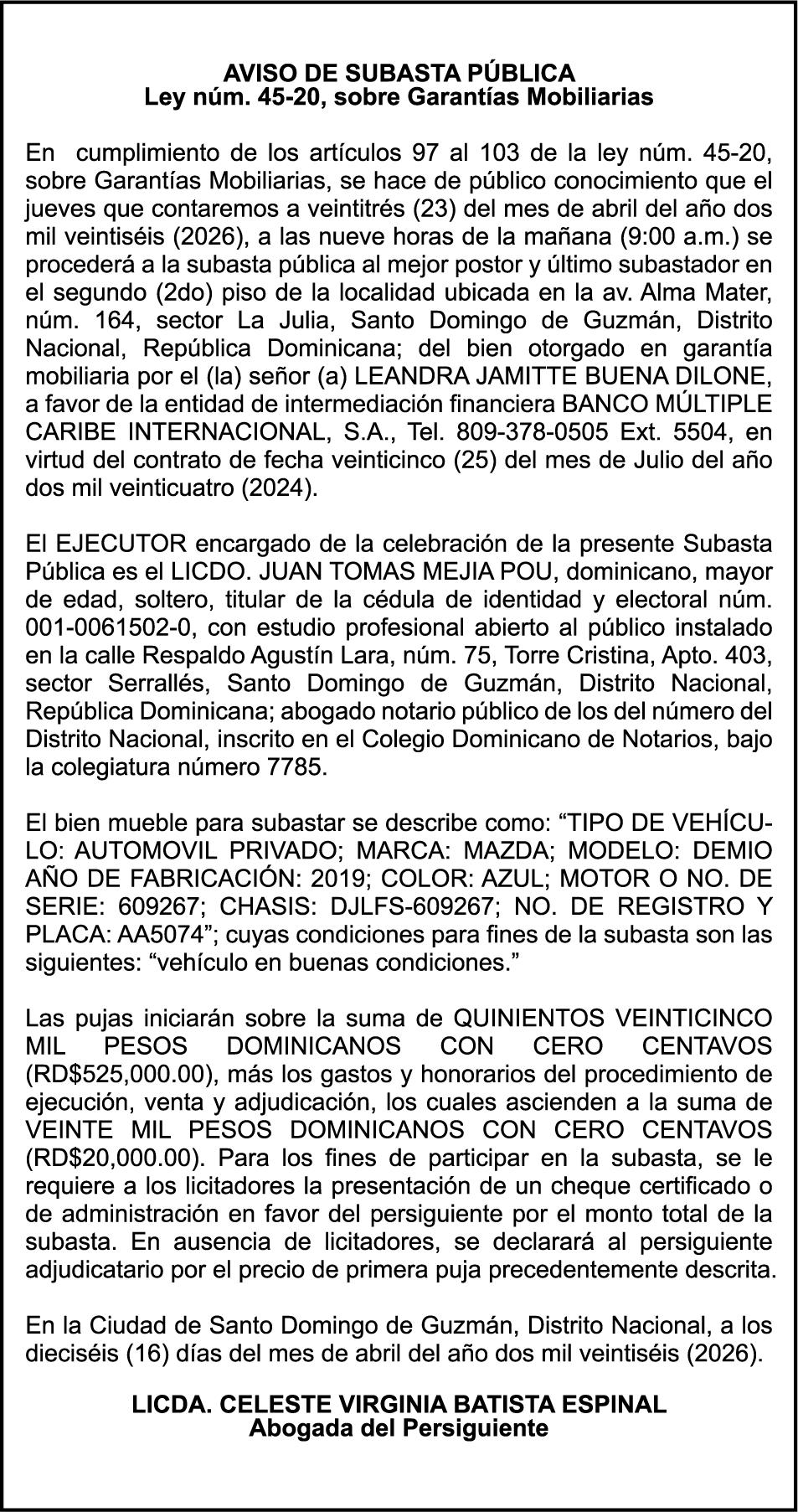 SE hace de público conocimiento la pérdida del Certificado Financiero número 851379784 emitido por Banco Popular Dominicano, S. A. Banco Múltiple, a nombre de JOSE TOMAS BETANCES CASTRO, portador de la Cédula de Identidad y Electoral número 001-1227605-0, certificado número 851379784 expedido el 26 de agosto de 2025 por el monto de (USD$57,000.00) más intereses generados a la fecha.
