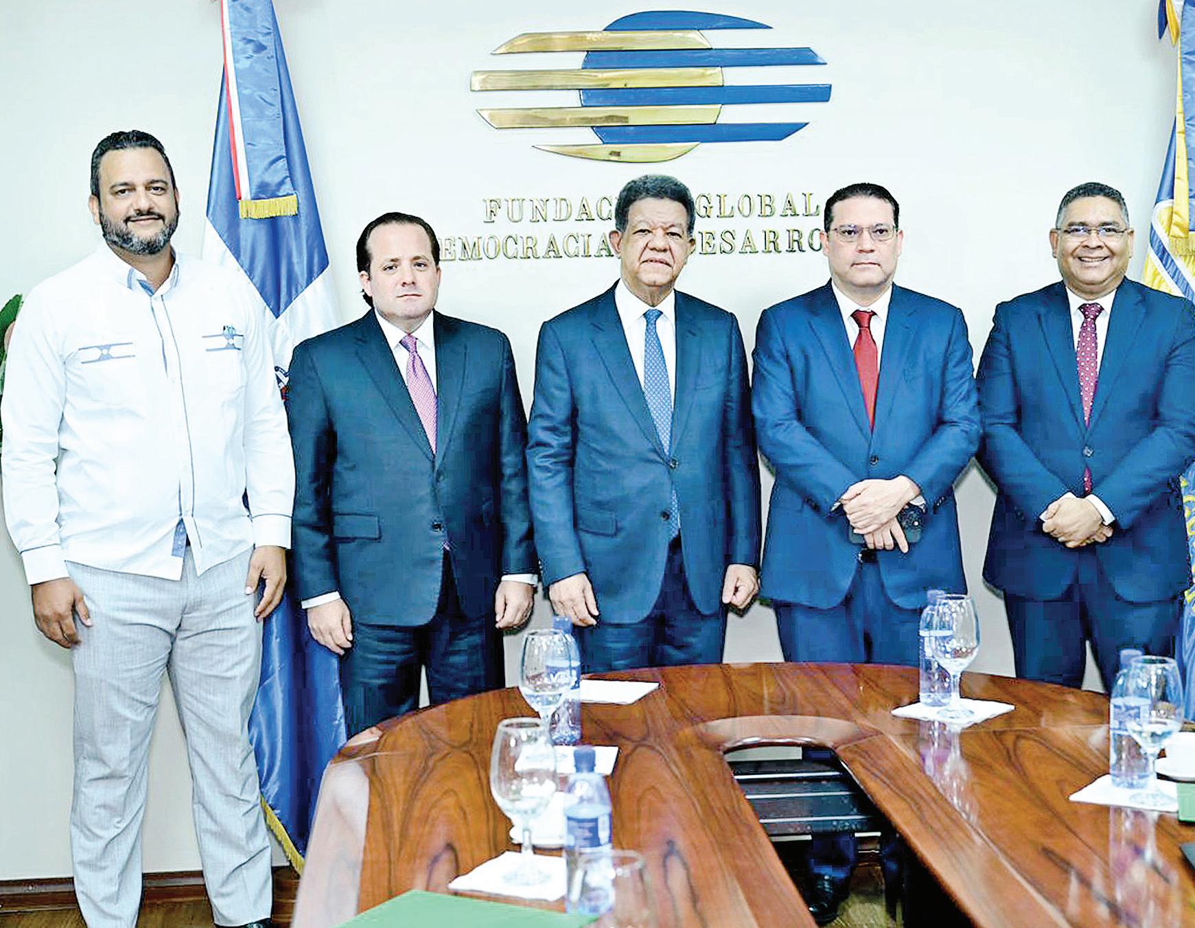 Los ministros de la Presidencia, José Ignacio Paliza, y de MICM, Eduardo Sanz Lovatón, y los viceministros Luis Madera, de Coordinación y Seguimiento de la Presidencia, y Alexis Cruz, de Economía, se reunieron ayer con Leonel en Funglode.