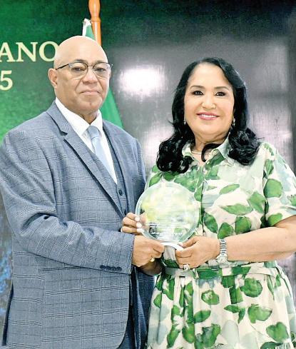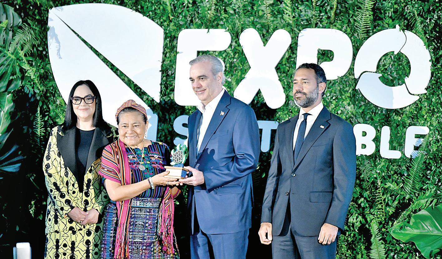 Tras exponer en Expo Sostenible, Rigoberta Menchú recibe reconocimiento de manos de presidente Luis Abinader y Codessd. D. POLANCO