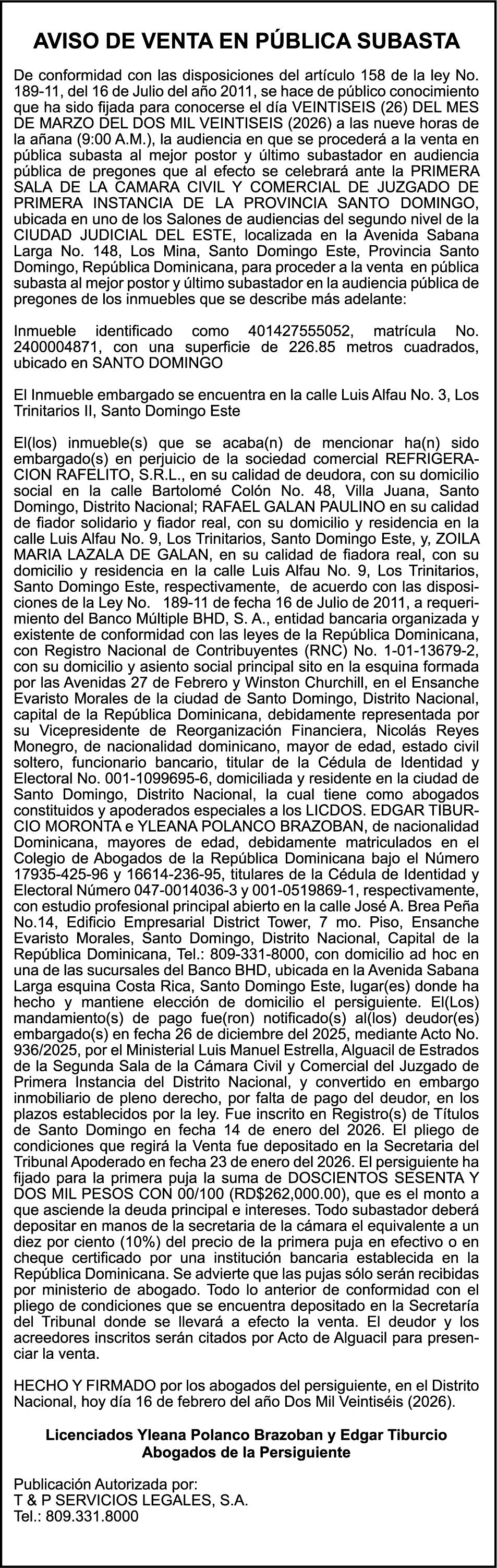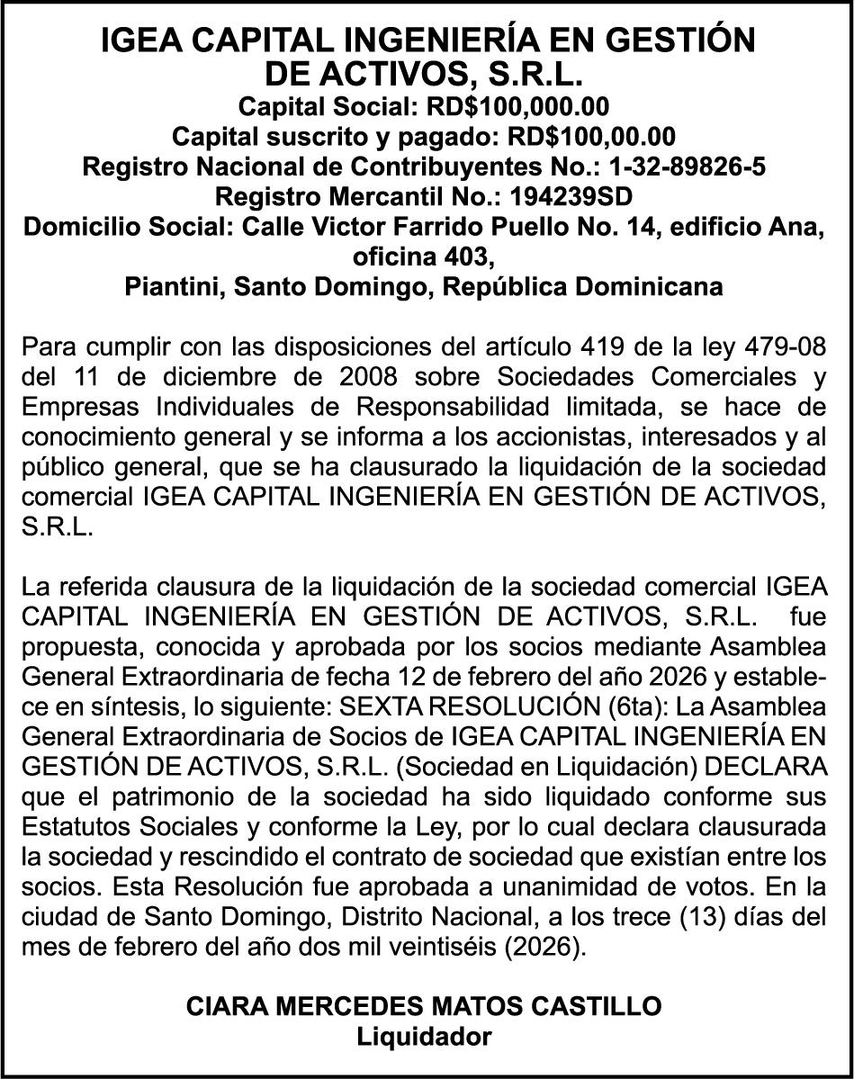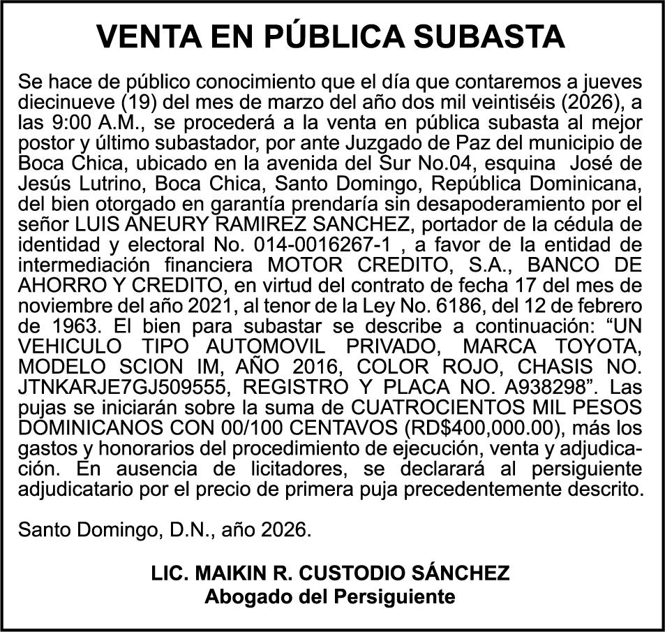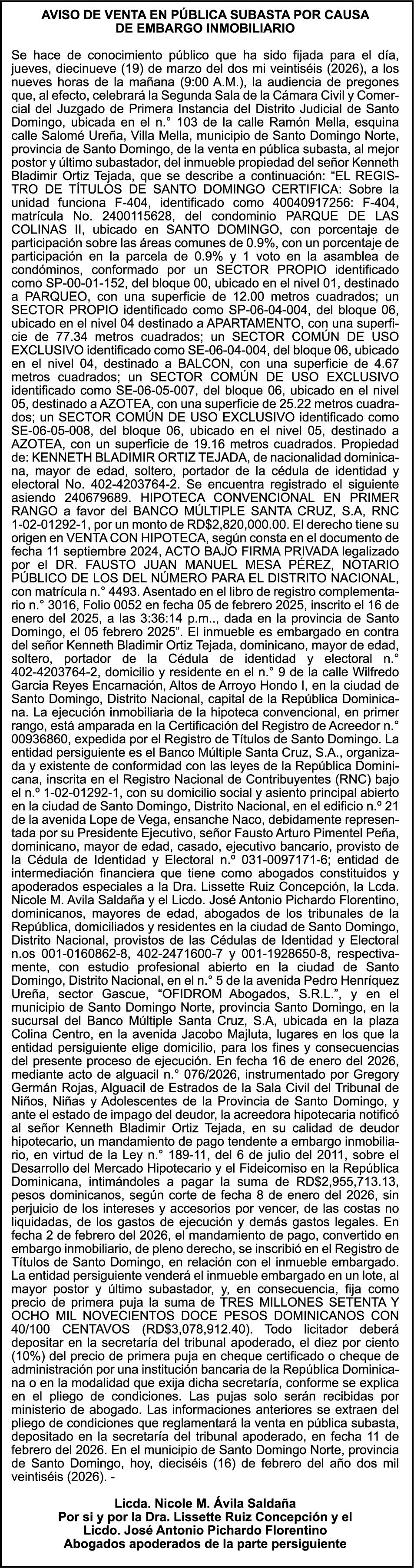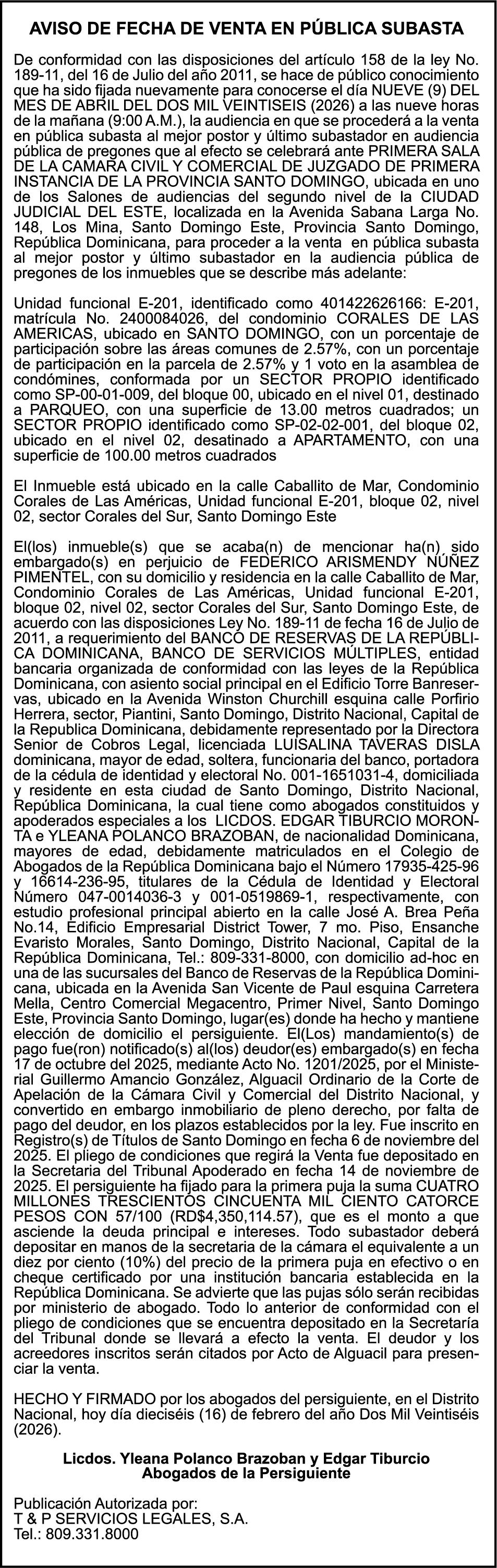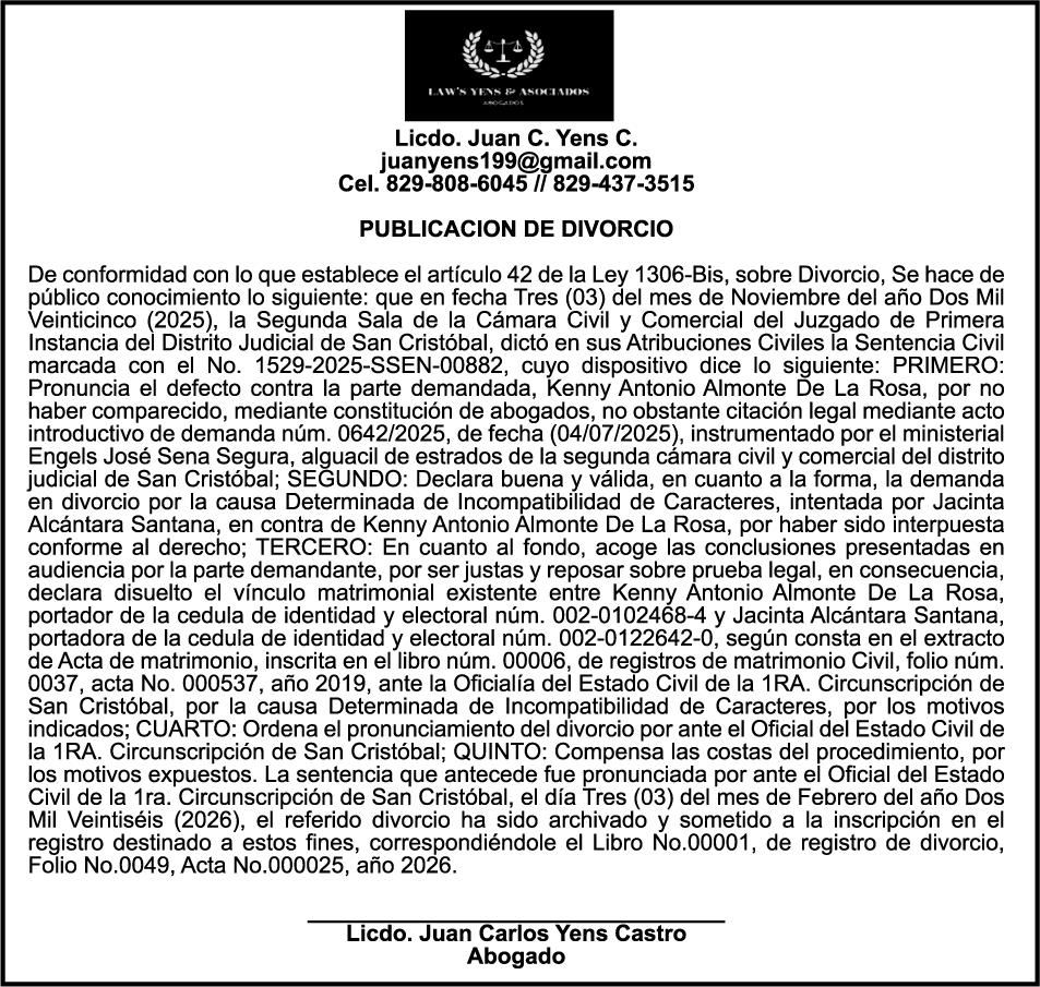 SE hace de público conocimiento la pérdida del Certificado Financiero número 830631198 emitido por Banco Popular Dominicano, S. A. Banco Múltiple, a nombre de BELKI MARIA RIVERA ALMONTE, portadora de la Cédula de Identidad y Electoral número 001-0359413-1, certificado número 830631198 expedido en fecha 10 de noviembre de 2022 por el monto de (RD$574,541.01) más intereses generados a la fecha.