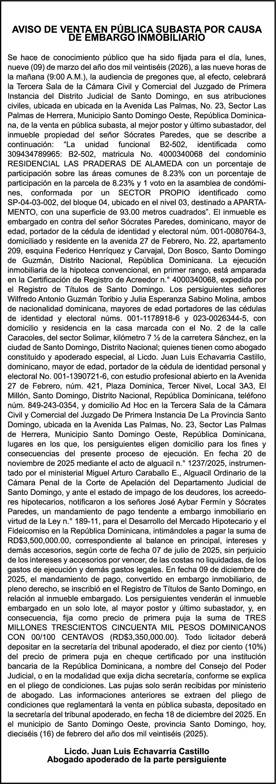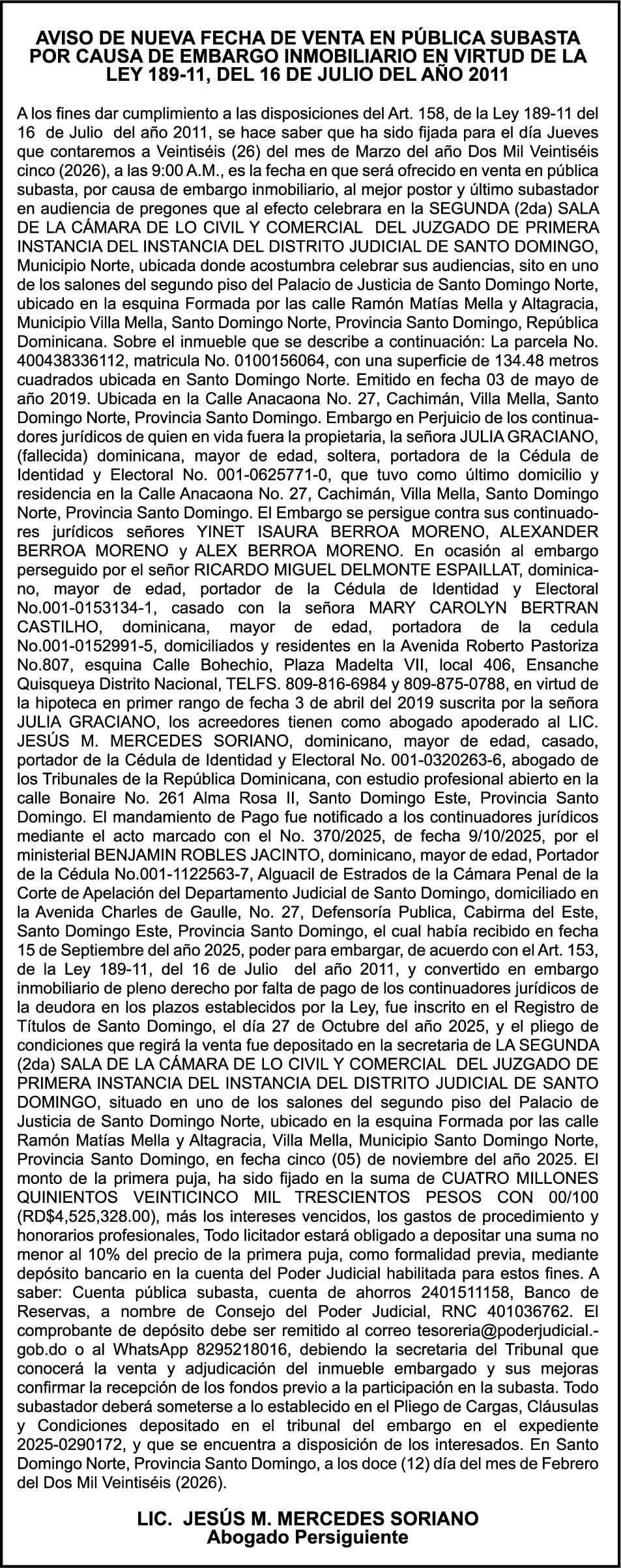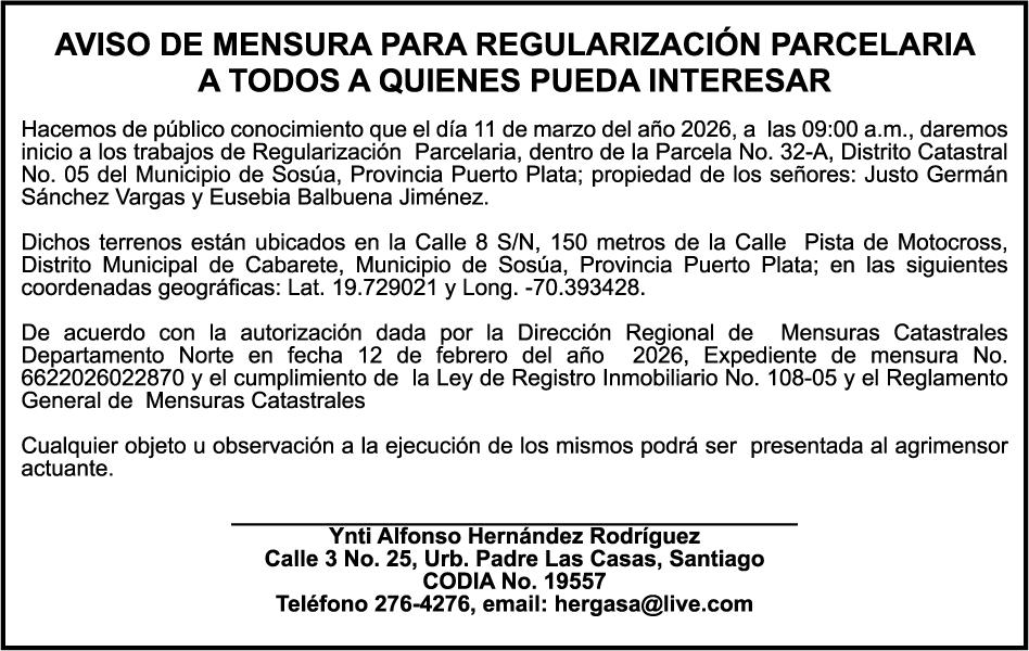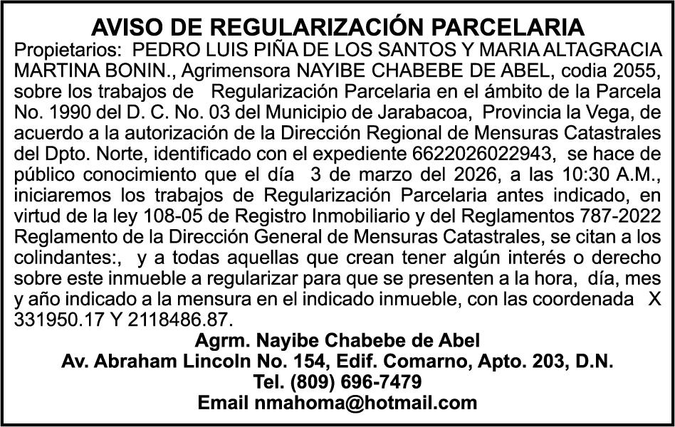 Delito. Yeni Berenice instruye indagatorias penales exhaustivas e inmediatas sobre ocupaciones ilegales y posibles fraudes inmobiliarios contra ese patrimonio. P.16