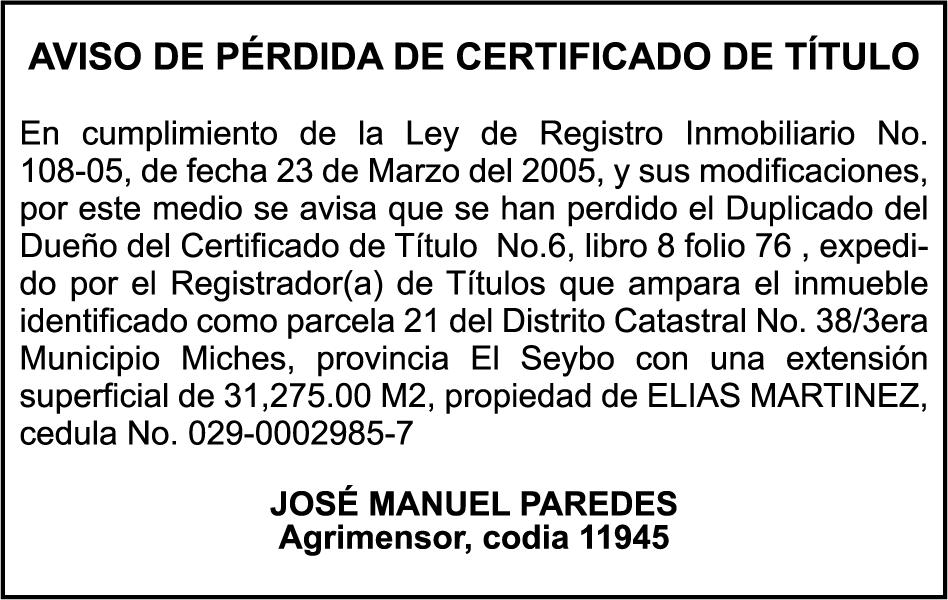 PERDIDA DE PLACA: NO.S021409, Chasis 1HTWXAHT46J204770,Marca INTERNATIONAL, modelo 7600,Color AZUL,Año 2006,a nombre de RAMON ANDRES MARTE PEGUERO, ced.041-0013992-4