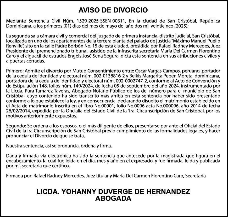 SE hace de público conocimiento la pérdida del Certificado Financiero número 848941100 emitido por Banco Popular Dominicano, S. A. Banco Múltiple, a nombre de ROSA UBIERA, portadora de la Cédula de Identidad y Electoral número 026-0070579-8, certificado número 848941100 expedido en fecha 2 de mayo de 2025 por el monto de (RD$600,000.00) más intereses generados a la fecha.