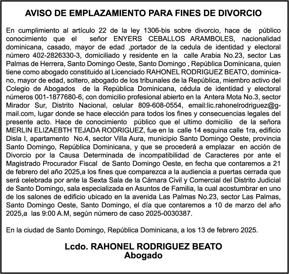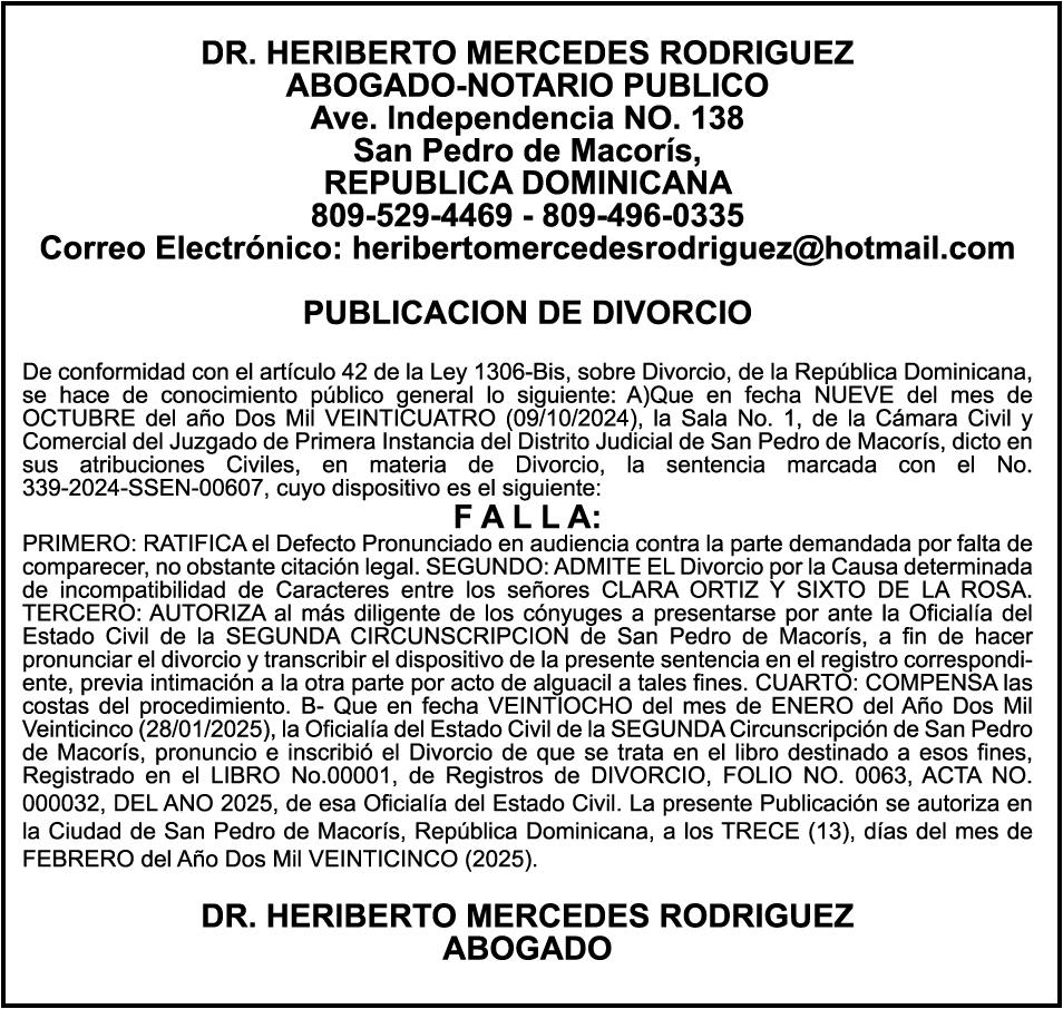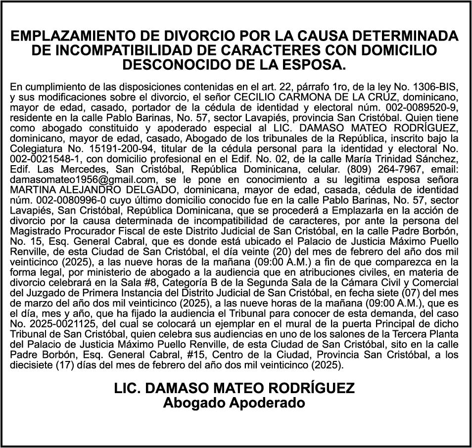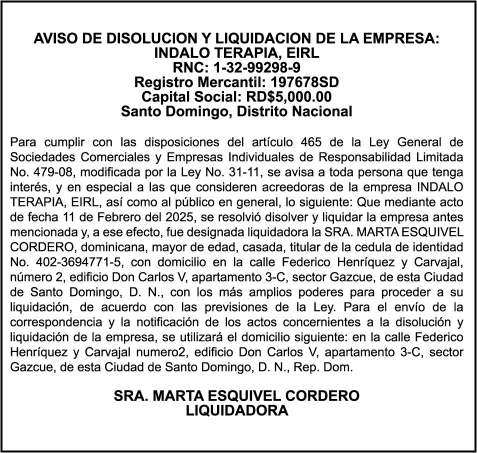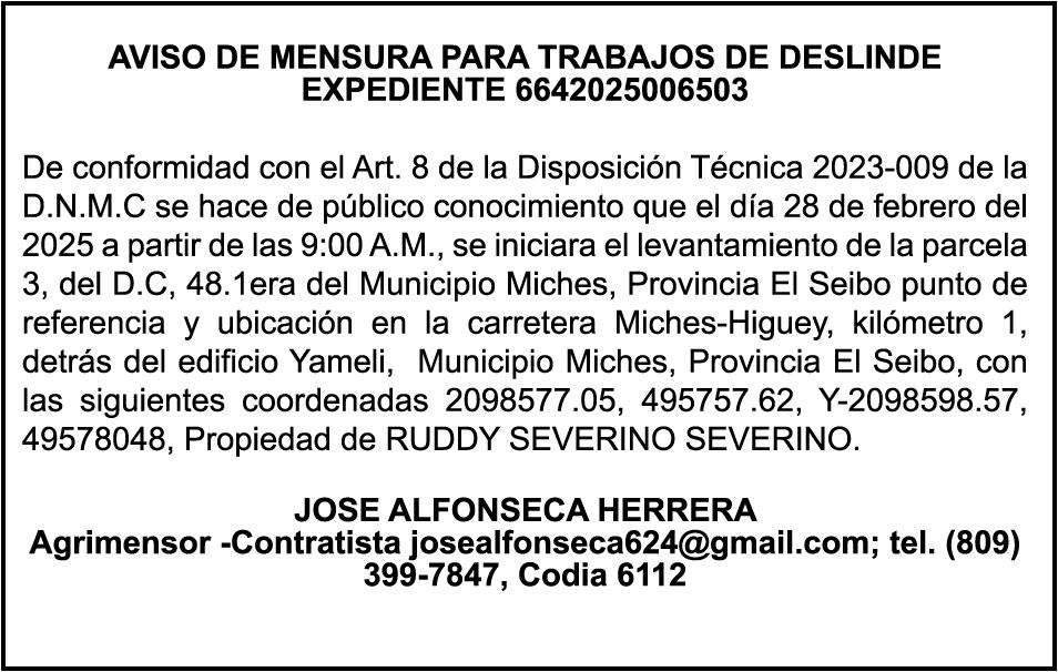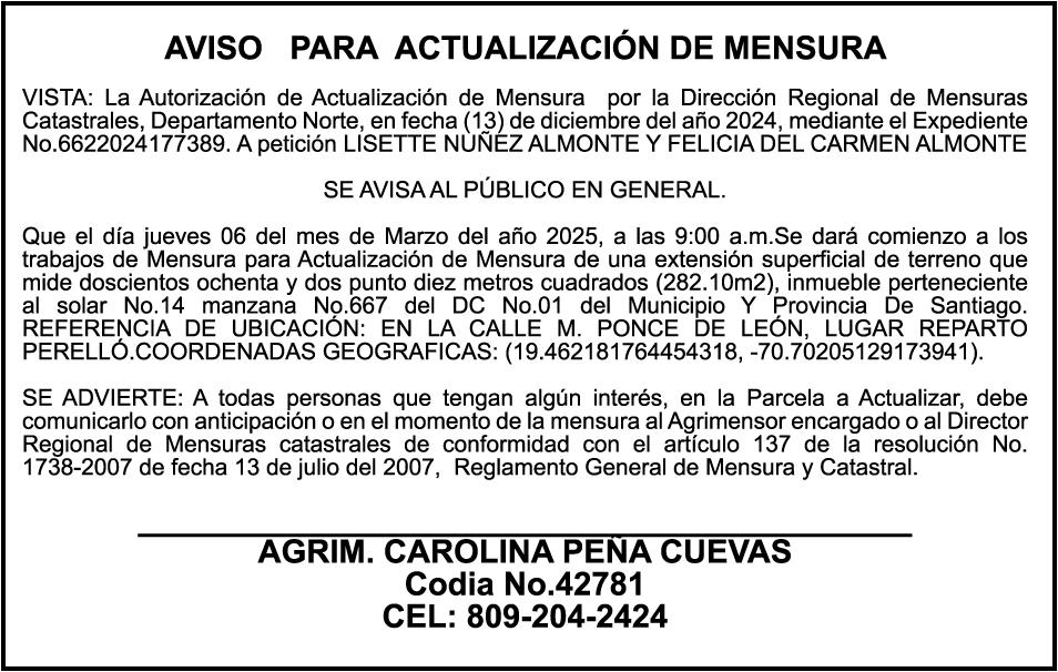 PERDIDA DE MATRICULA: Placa: L125259, Chasis: JAABL14S5H0713187, Marca: Isuzu, Color: Blanco, Año de fabricación: 1987, Nombre: Vicente Burdier Sánchez, Cédula: 048-0045349-2